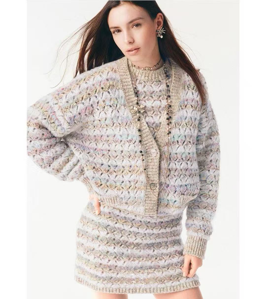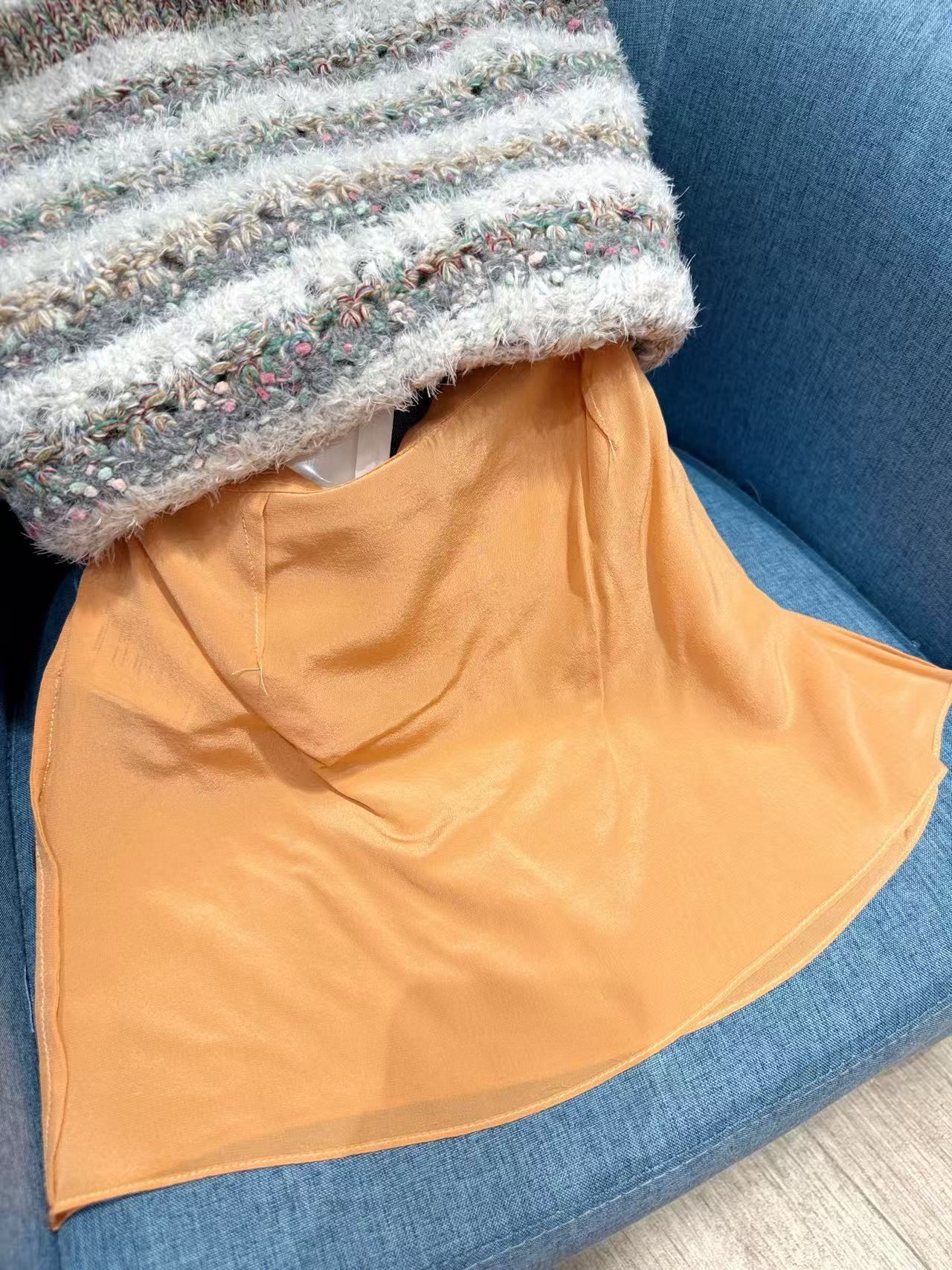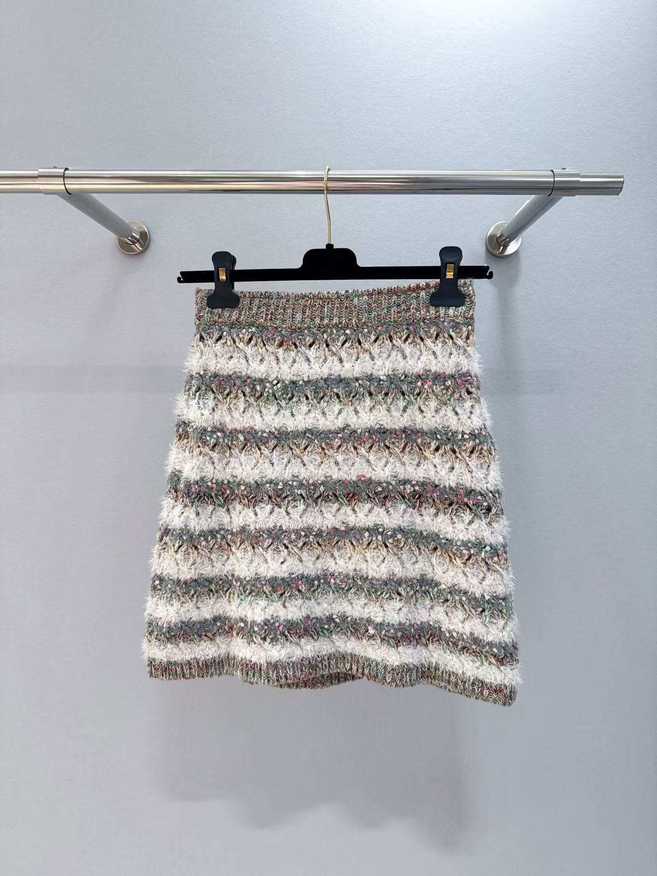 幻彩金紗羊絨半裙,可跟開衫組成套裝效果,整體氛圍高級又俏皮。