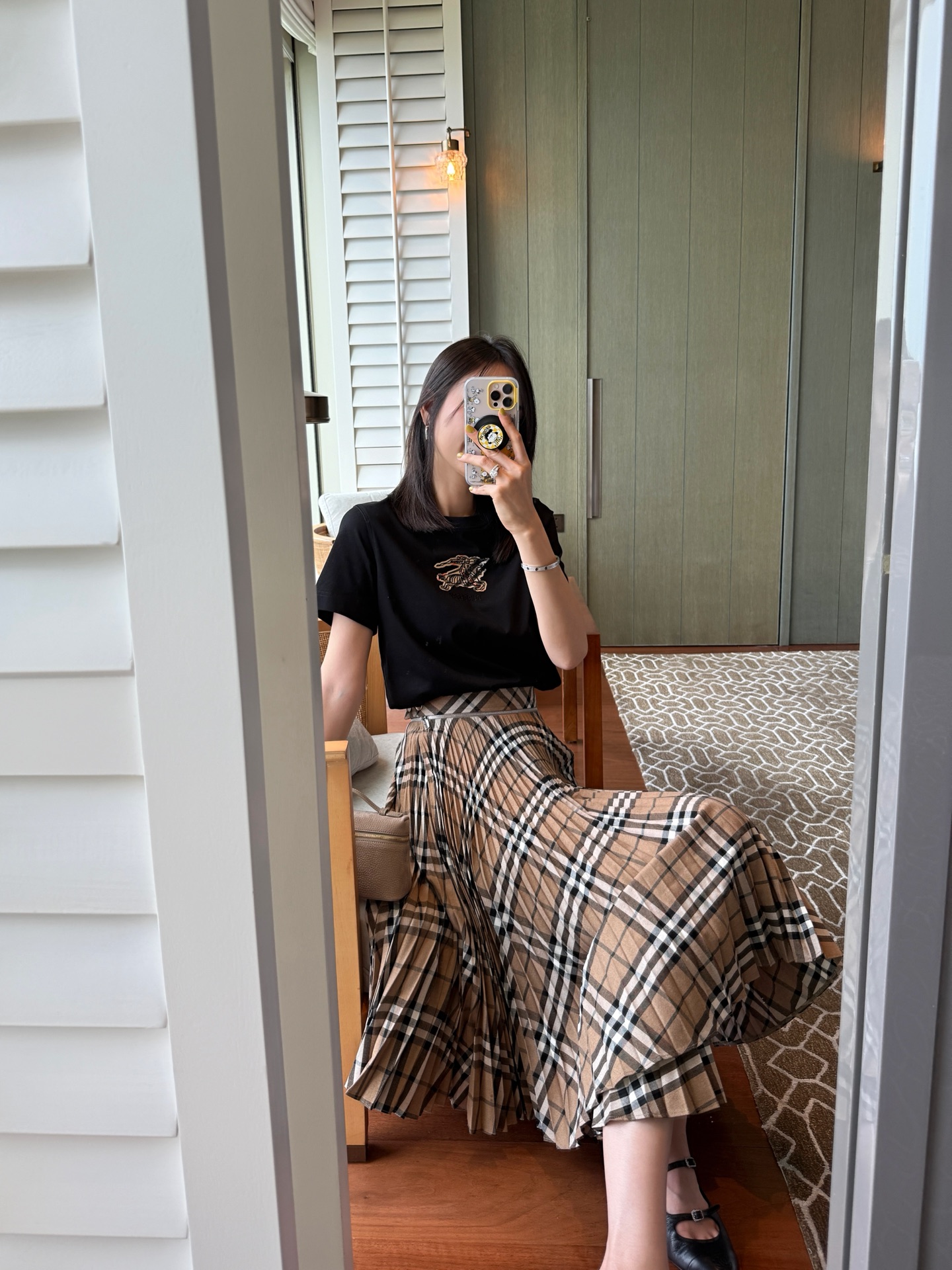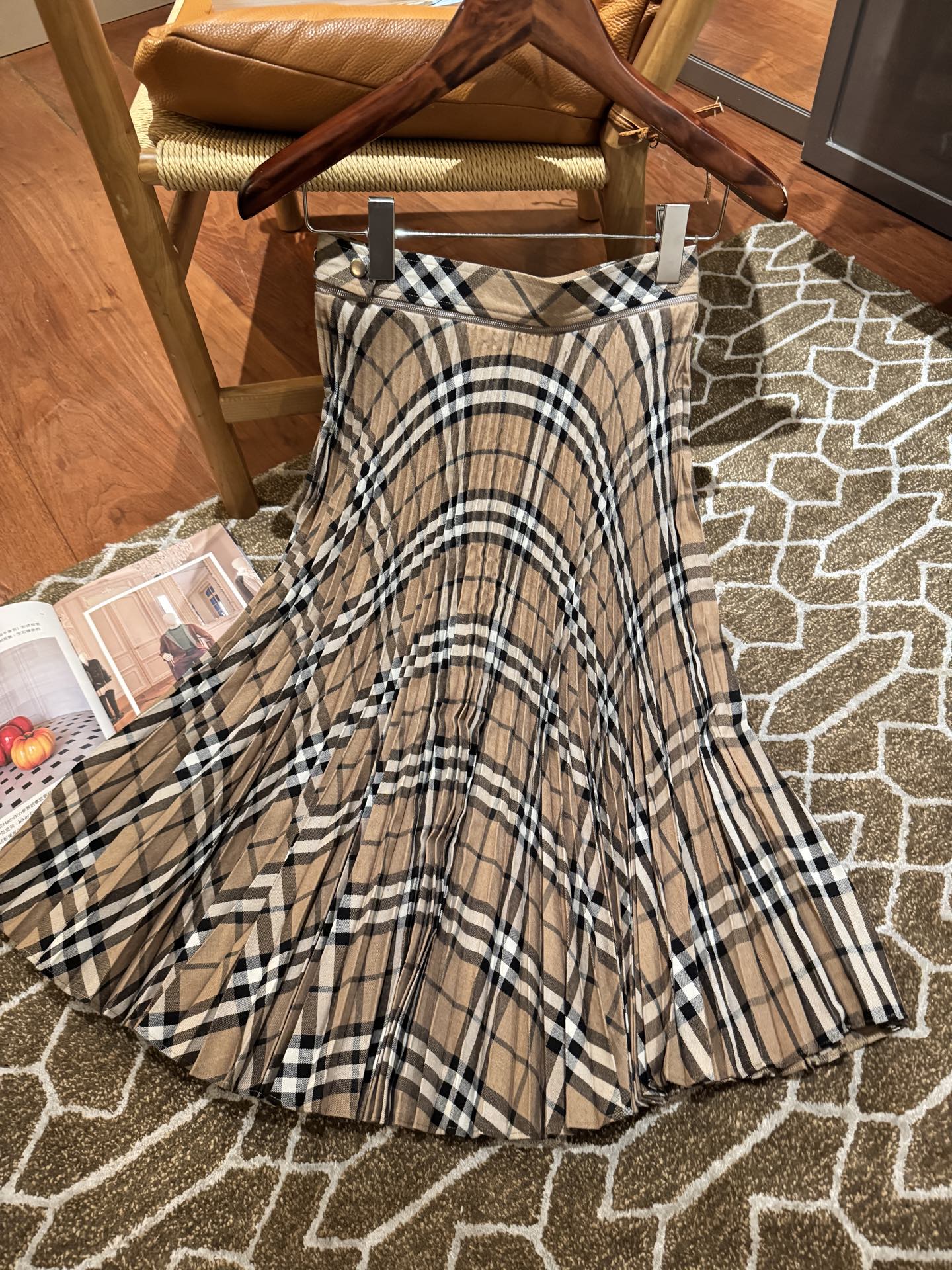 2025秋冬新品 BUR家 Vintage 復古斜格紋百摺裙