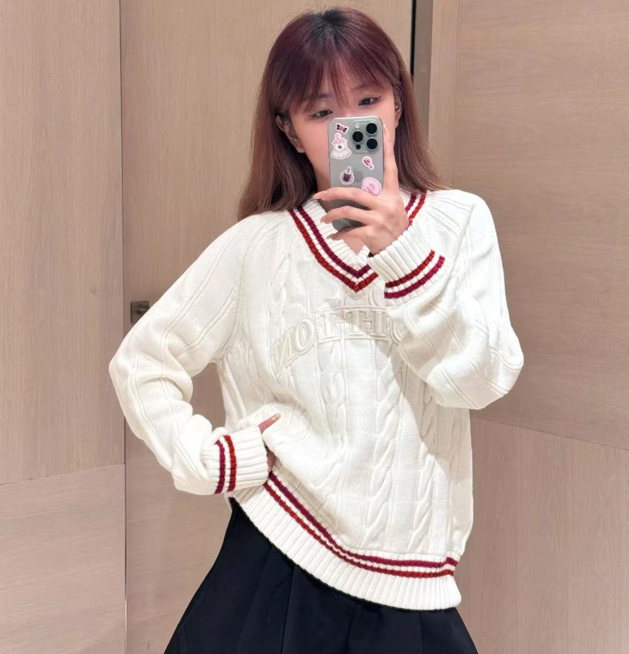 這件學院風絞花開衫的版型設計,完美詮釋了經典的學院風格,無論是搭配襯衫、T恤,或是內搭高領毛衣,都能輕鬆穿出那種知性又帶點慵懶的時髦感。