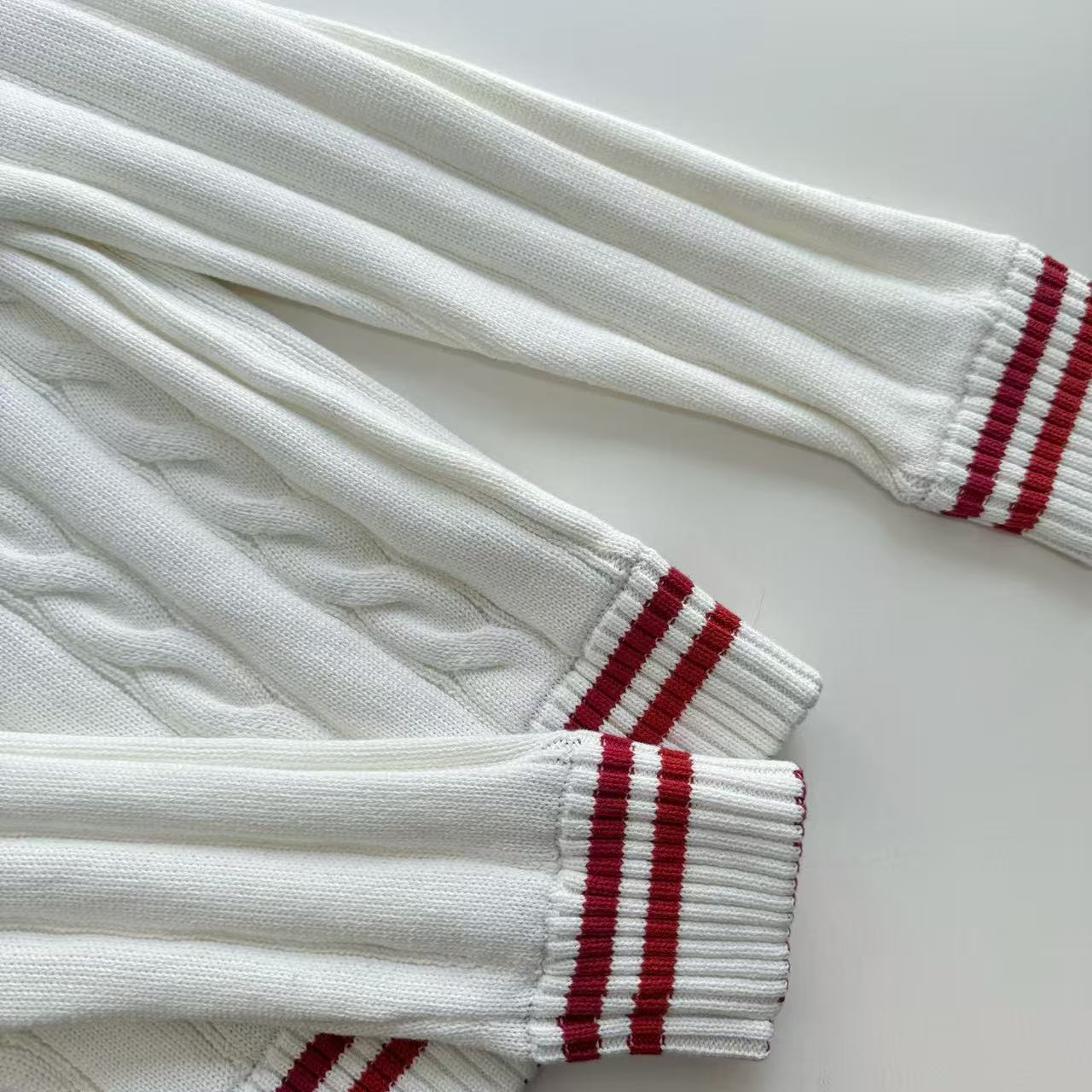 它採用了與「原版」完全相同的針路,透過高規格的5G電腦橫機,以經典的扭繩組織進行編織。這種絞花圖案不僅視覺上充滿立體感,也為開衫增添了濃厚的學院復古氛圍。光是織出單件衣服的布片,就需要耗費整整210分鐘,這可不是一般的快速量產能比擬的。