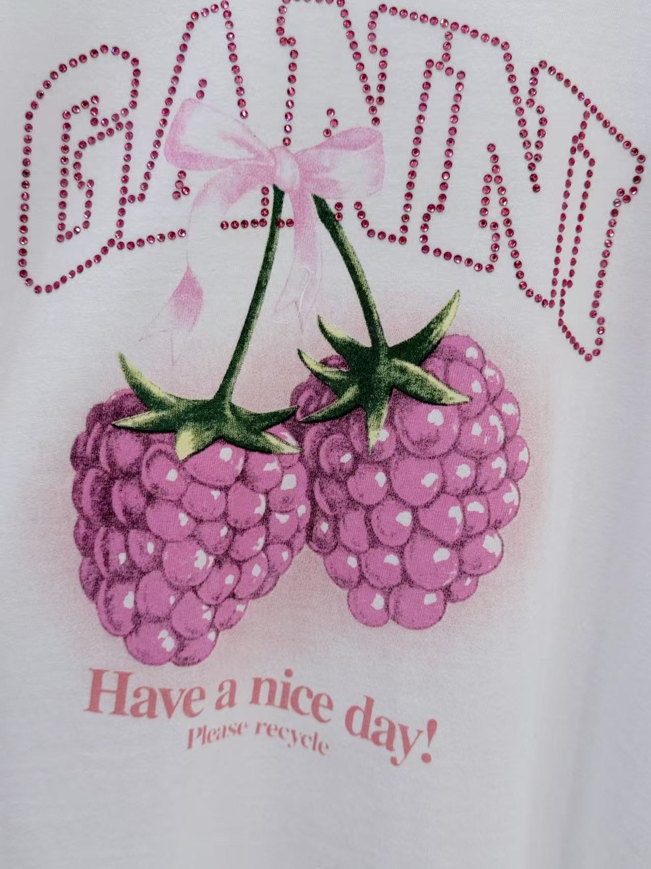 Oversize 廓形結合吸睛的樹莓圖騰,展現出一種隨性且極致高級的輕奢質感,是那種單穿就能拿捏住「不費力時髦感」的夏日必入款。