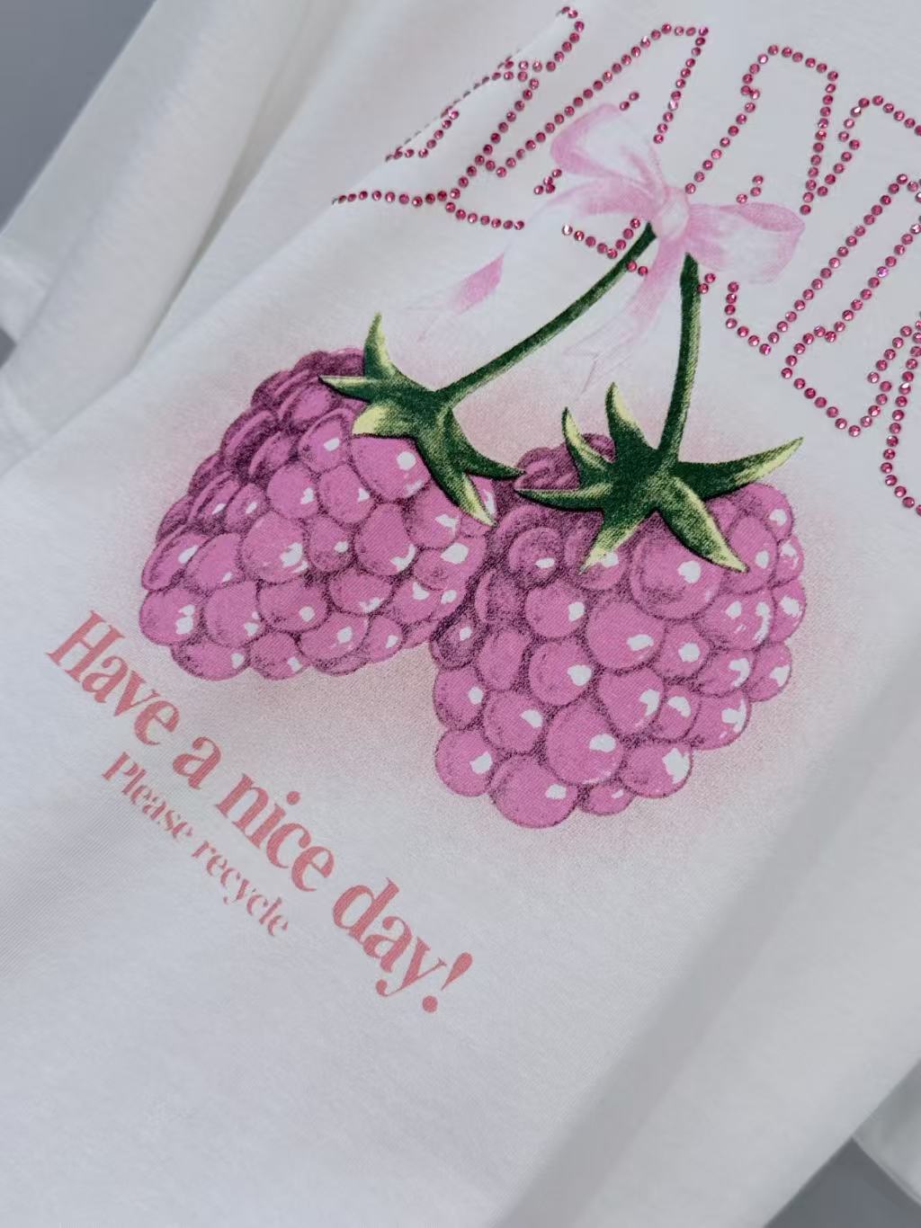 重工級「樹莓圖騰」環保印刷技術: 採用的印花技術精準還原了樹莓的色彩層次與飽和度,觸感平整細膩且具備極佳的耐洗度。