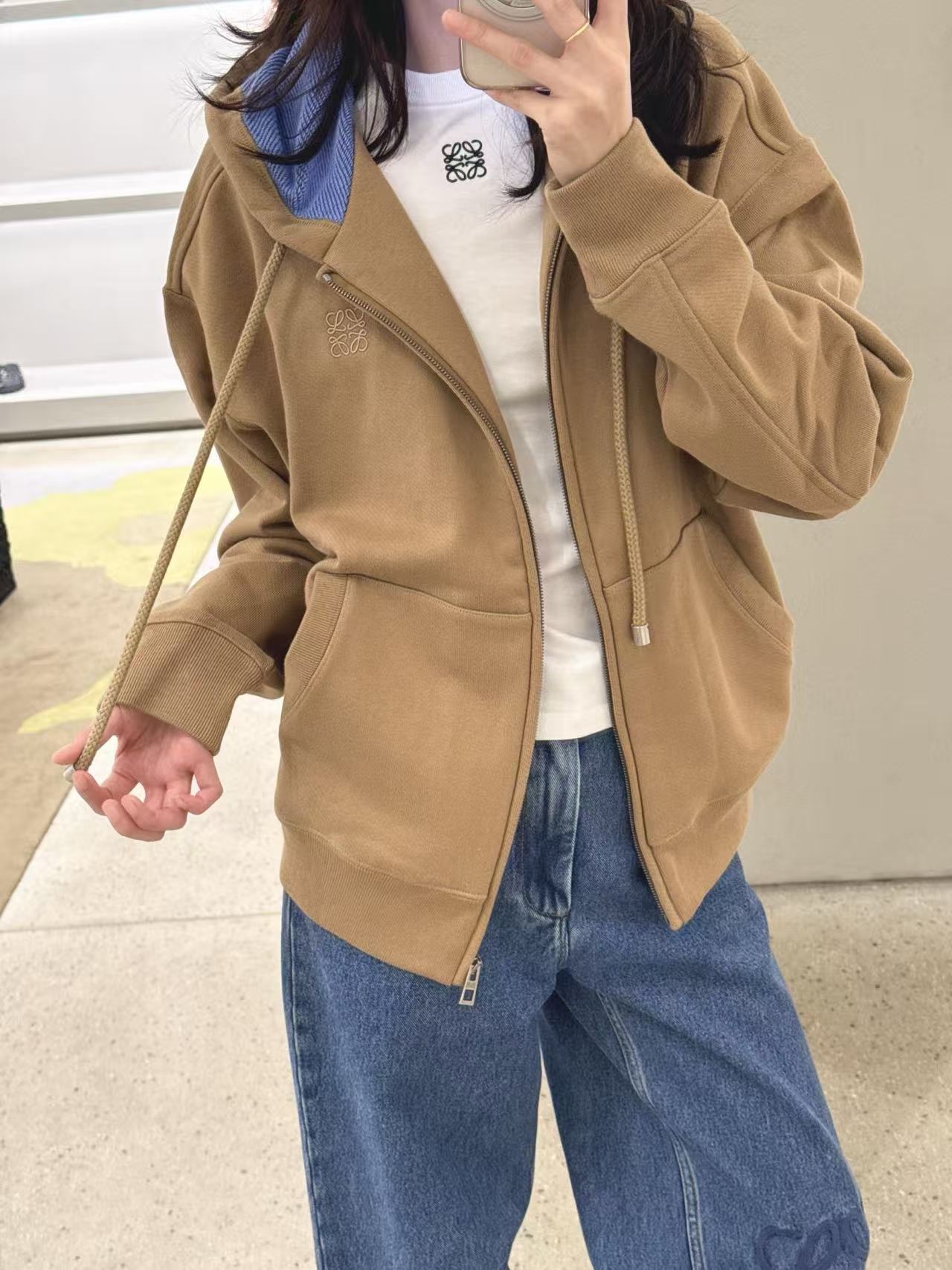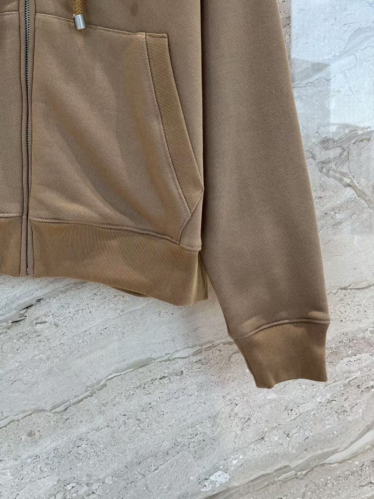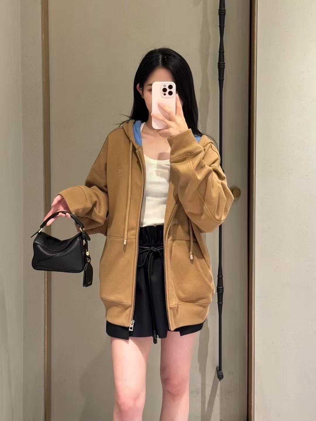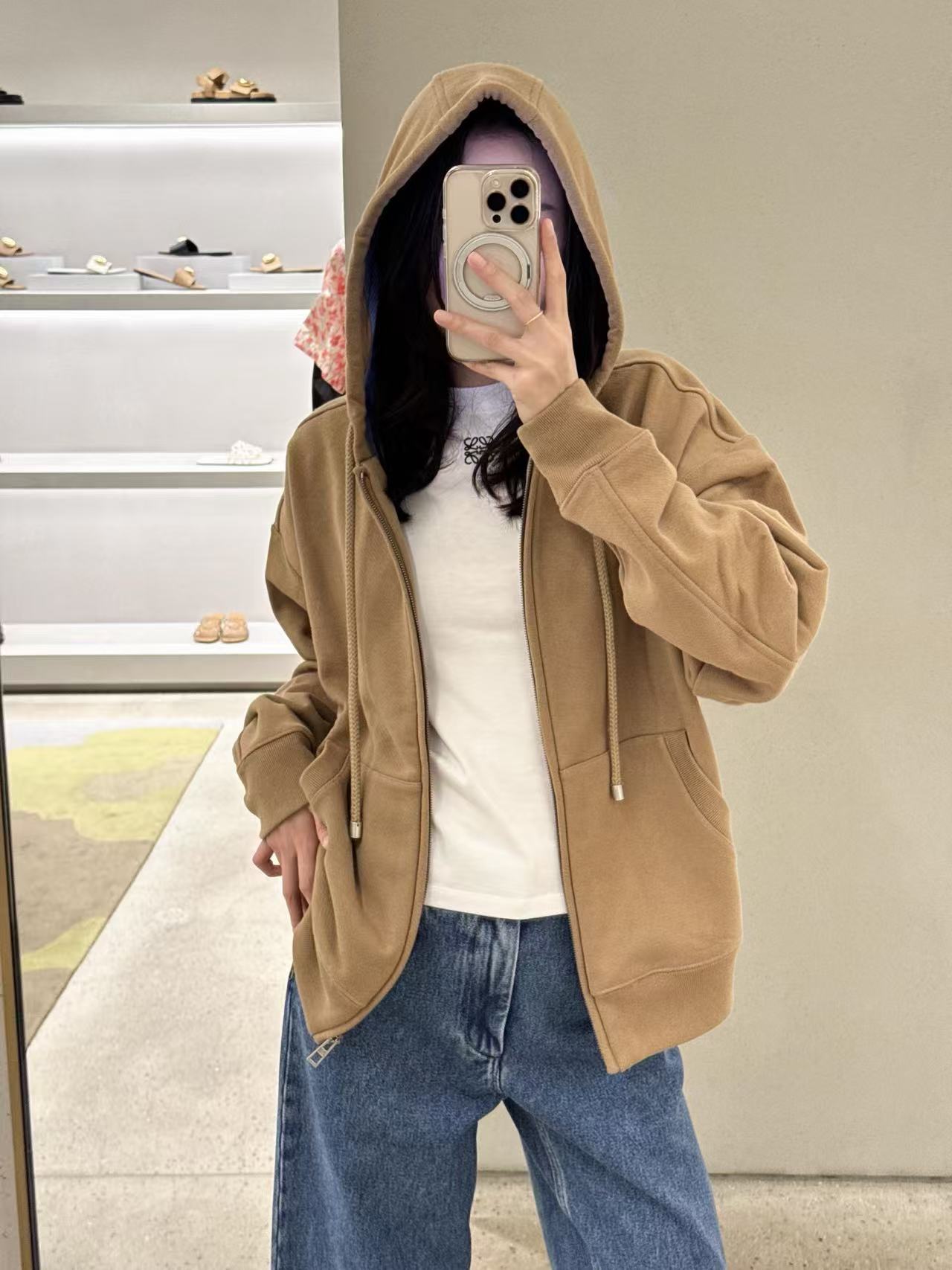 超有質感的深咖啡棕,顯白又溫柔~oversize版型隨便套就是又酷又隨性,帽繩跟銀色拉鍊的。