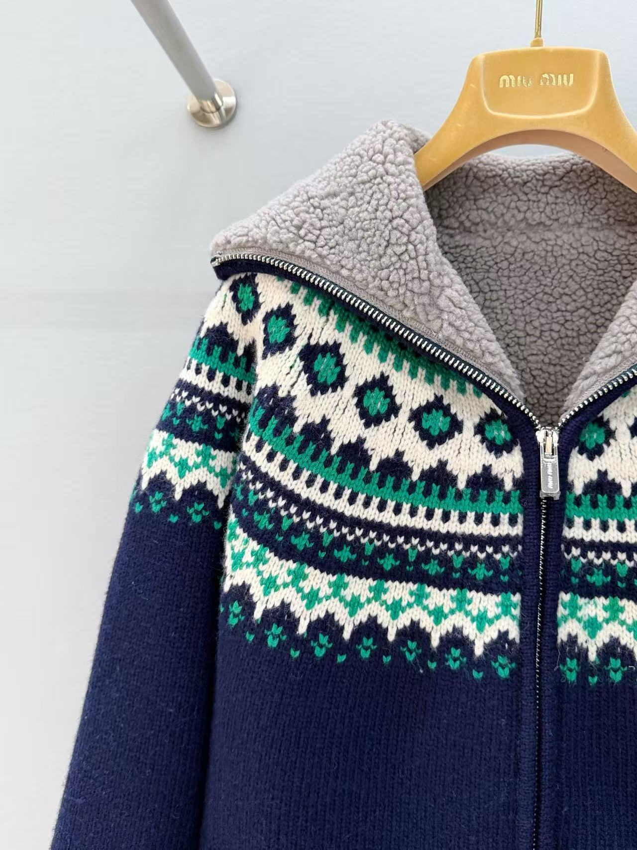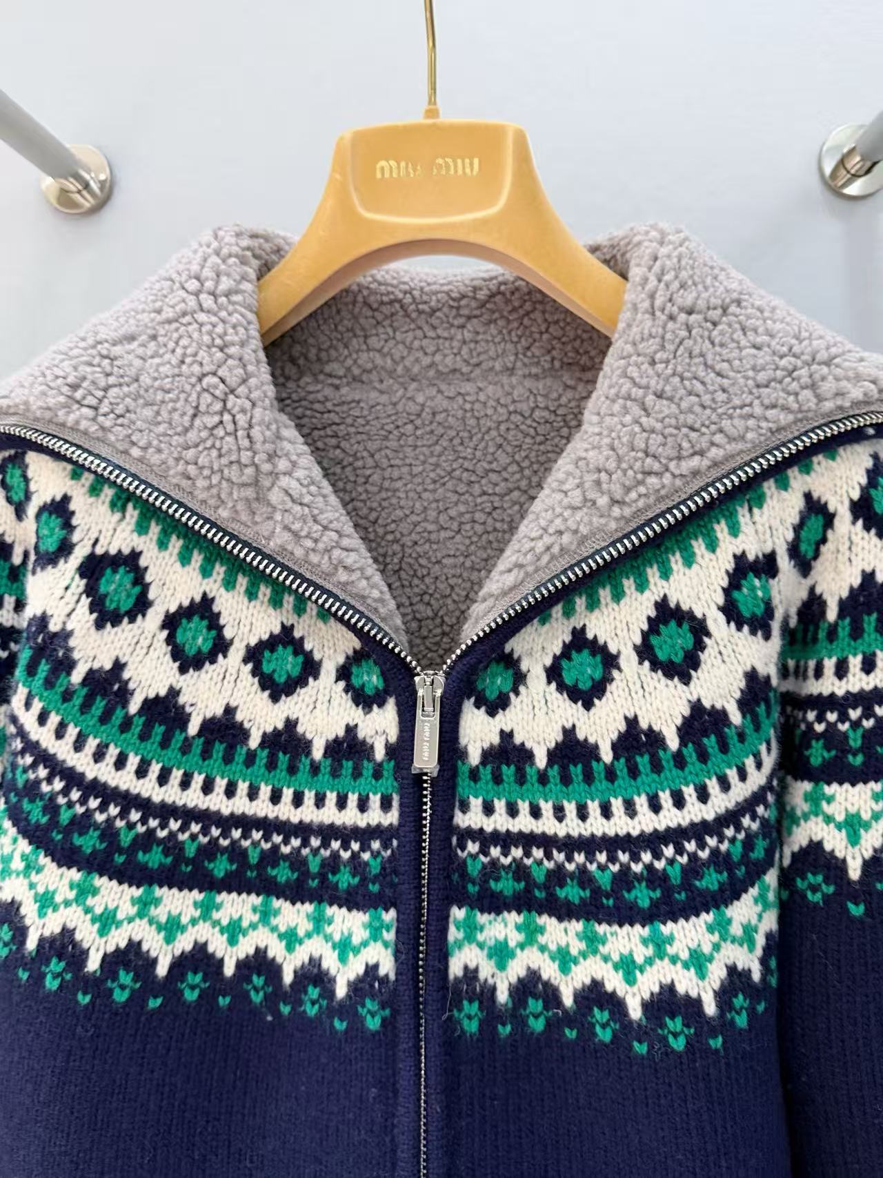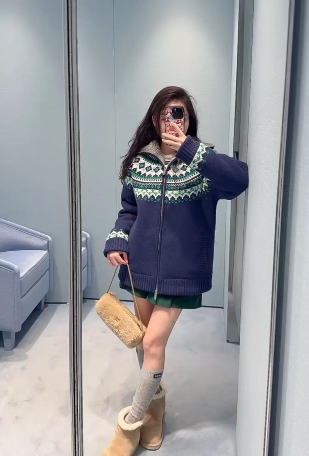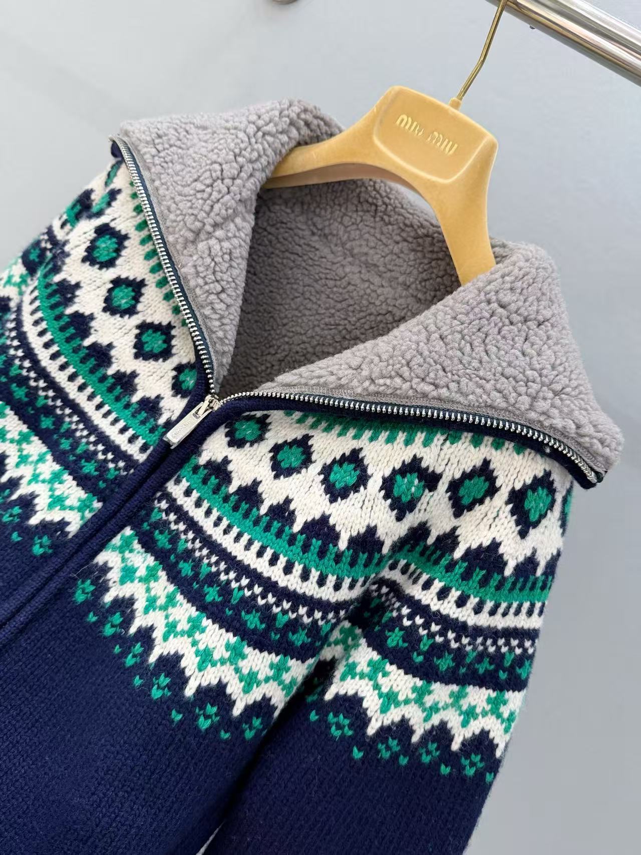 2025秋冬 Miu家 費爾島提花拉鏈外套