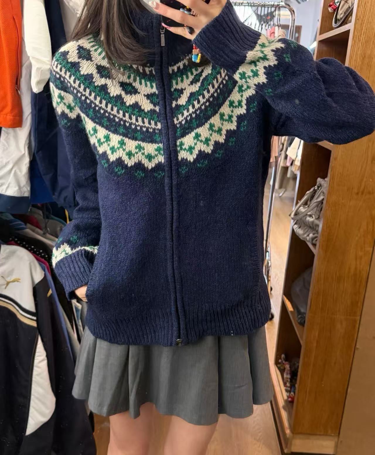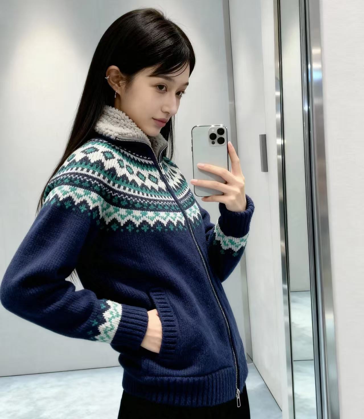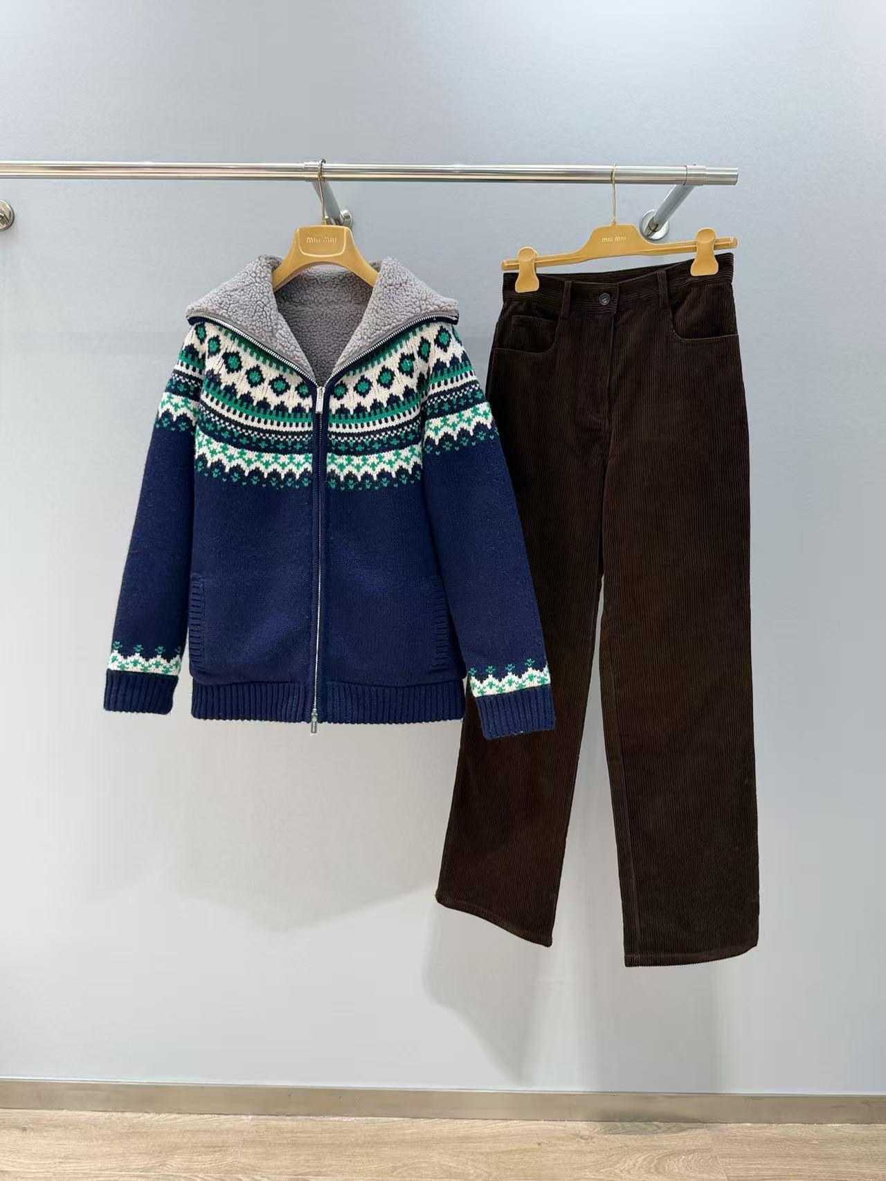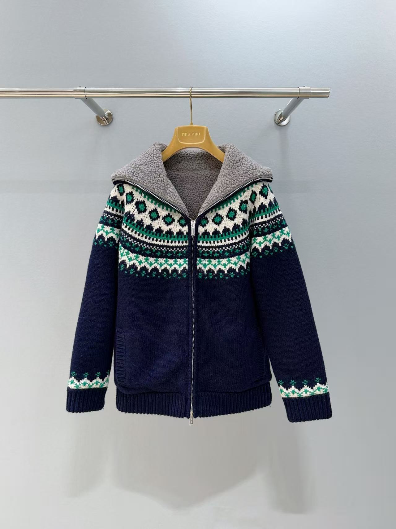 2025秋冬 Miu家 費爾島提花拉鏈外套