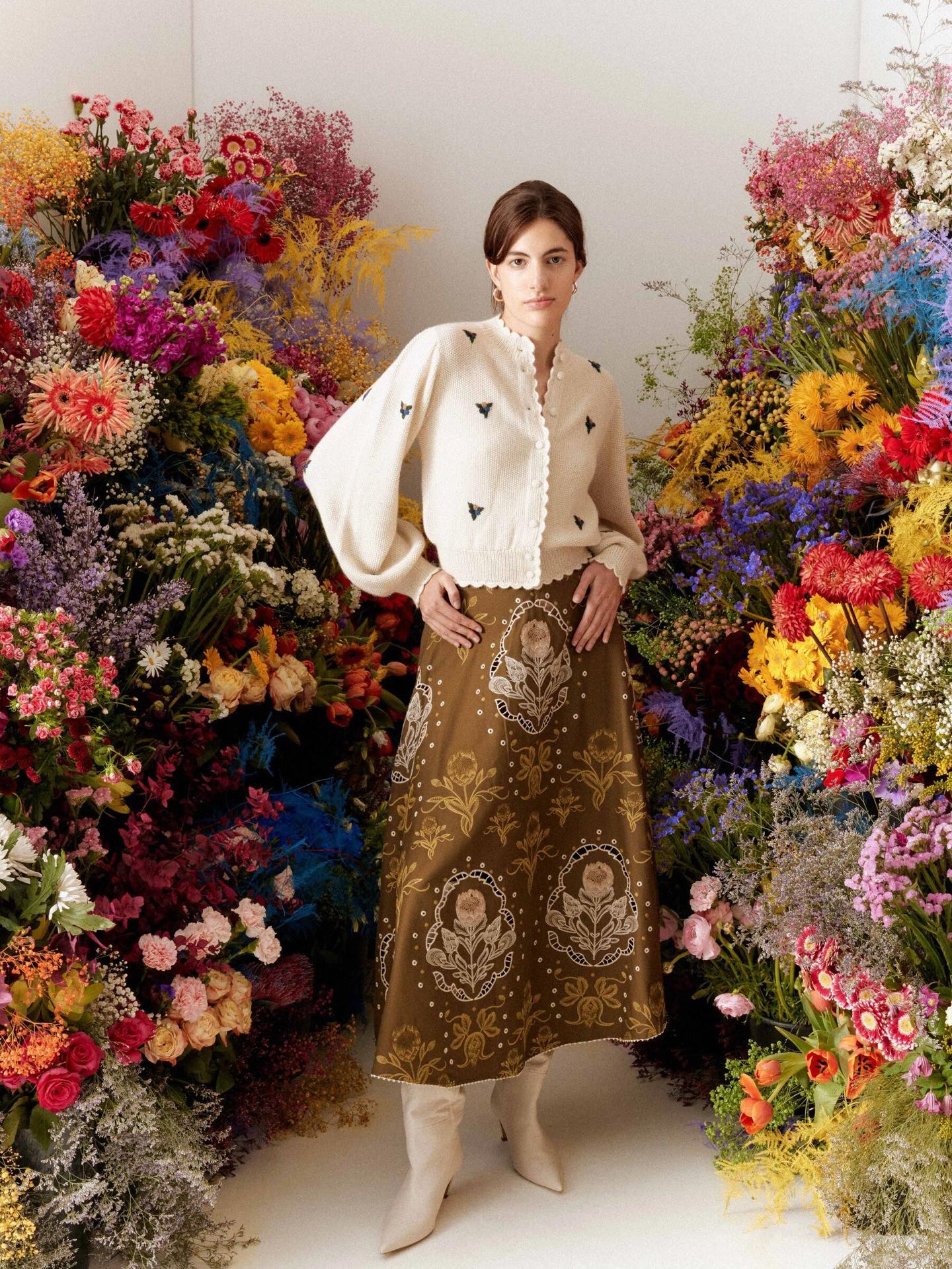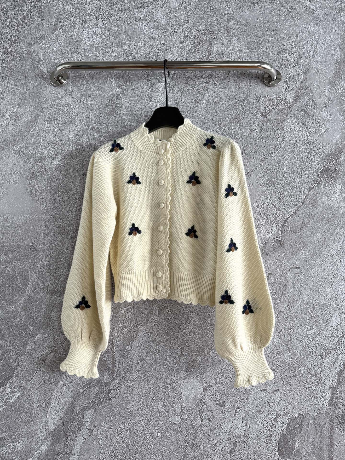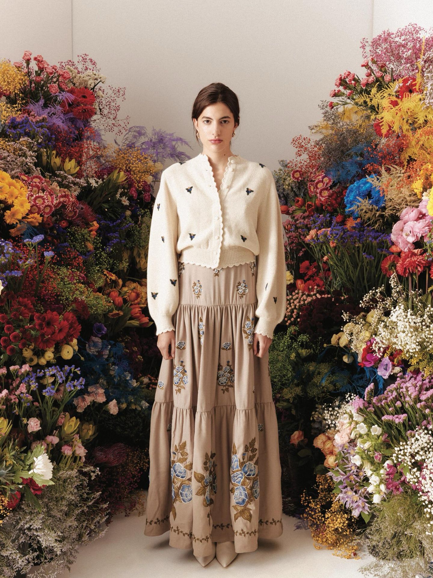 整件針織衫最大的亮點,就是點綴在上面的立體小花。每一朵都由工匠一針一線縫製而成,費時費工,細節裡滿是誠意。