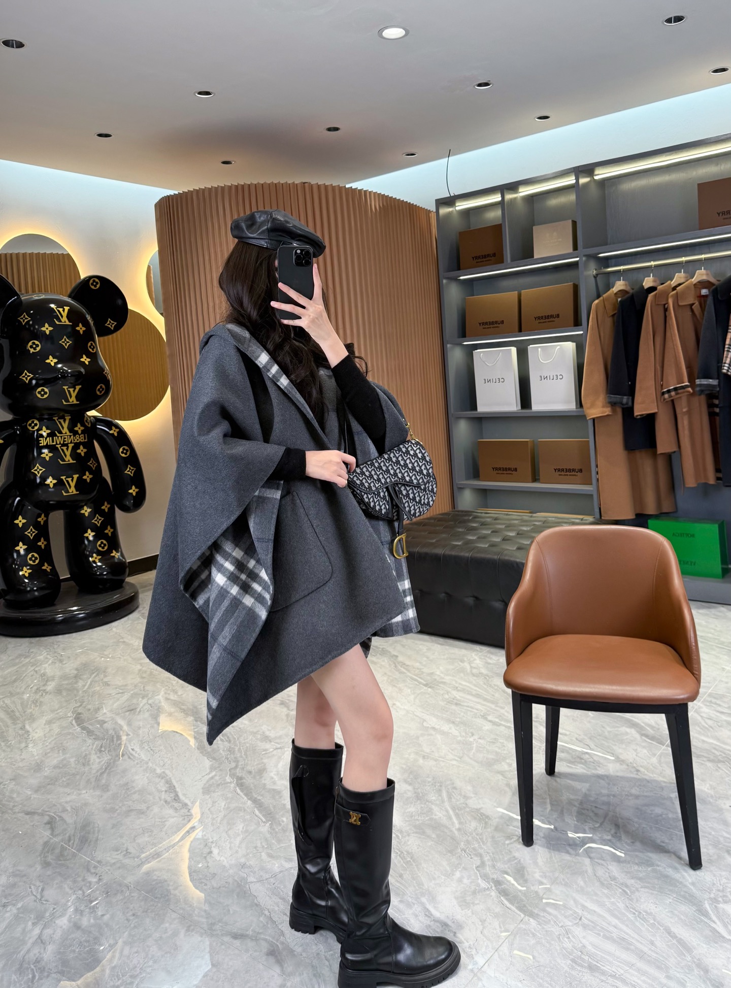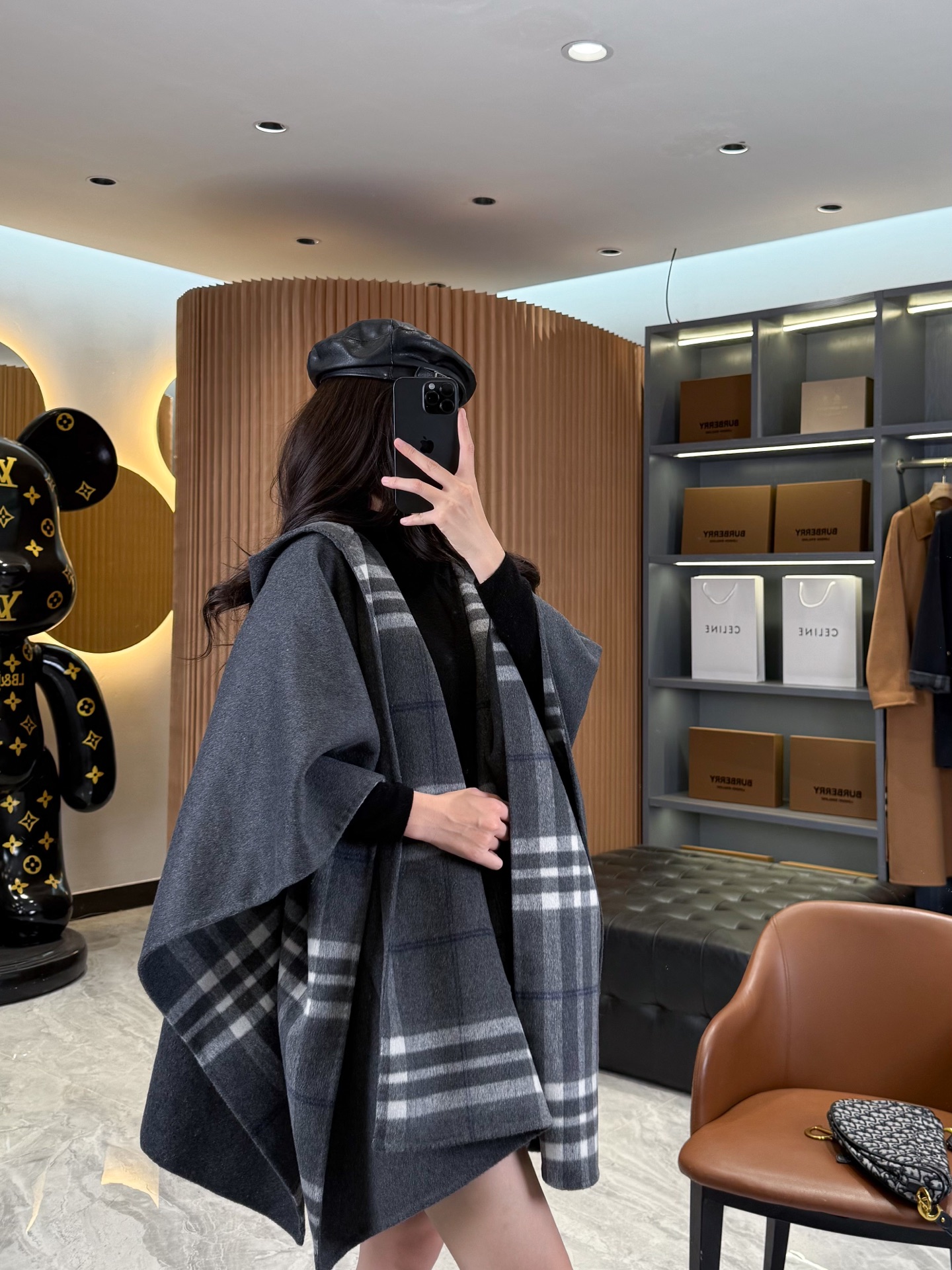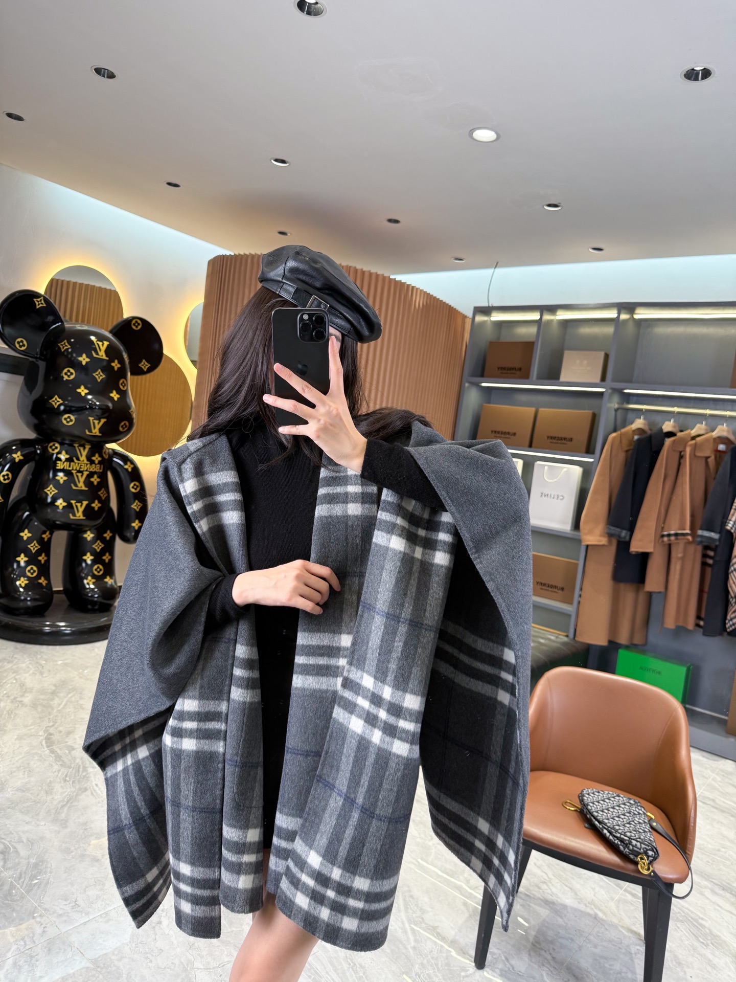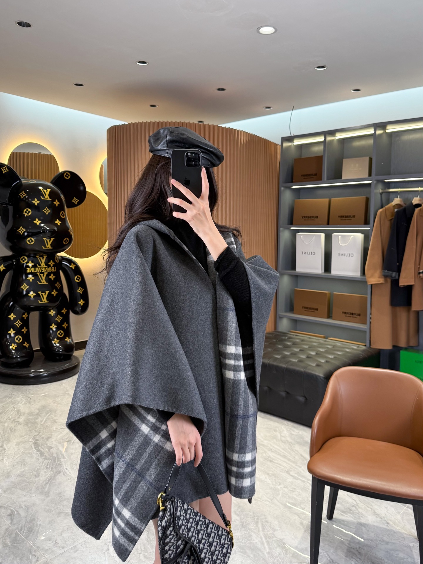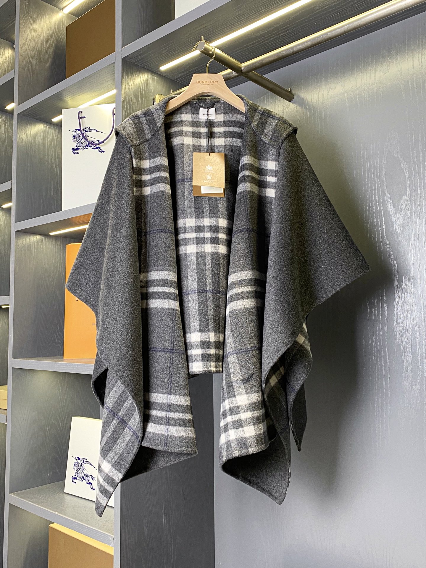 2025秋冬新品 BUR家 灰格紋羊毛斗篷