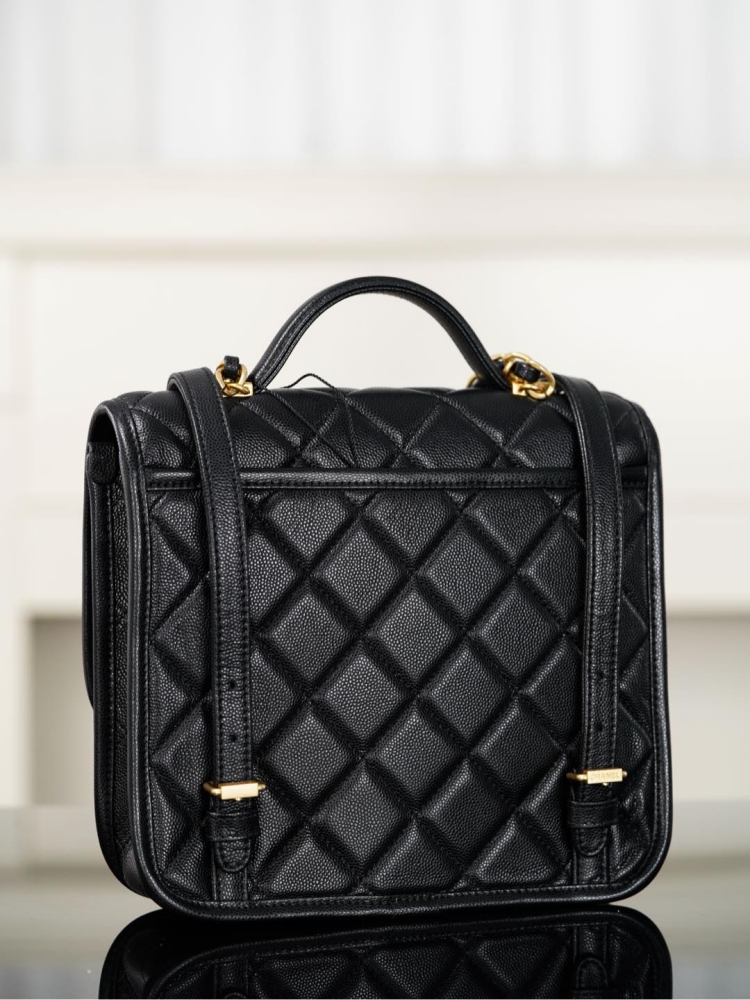 四葉草勳章吊墜是靈魂亮點,將菱格包、No.5 香水符號、雙C經典元素結合在一起,透過做舊處理和砂金質感,散發濃厚的復古氛圍。五金選用純銅砂金工藝,份量與細節都帶出高奢感。
