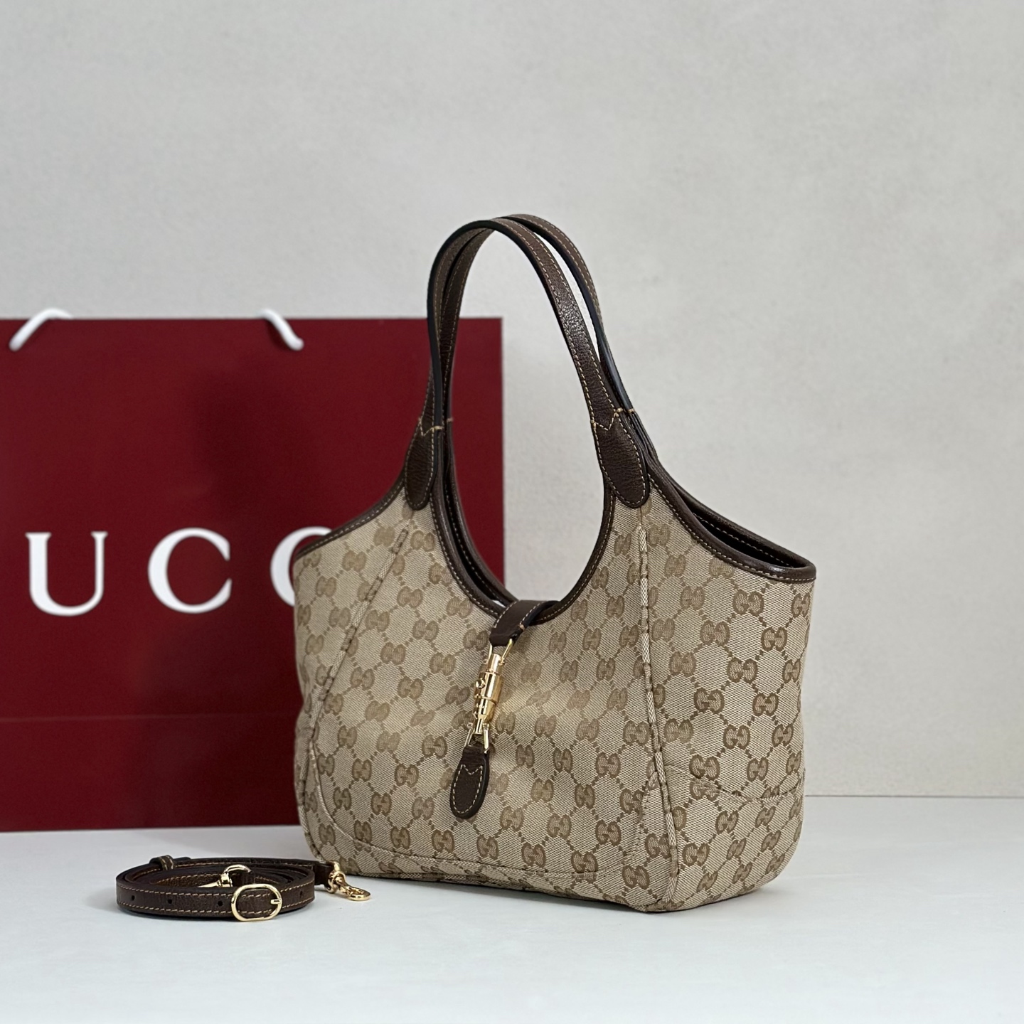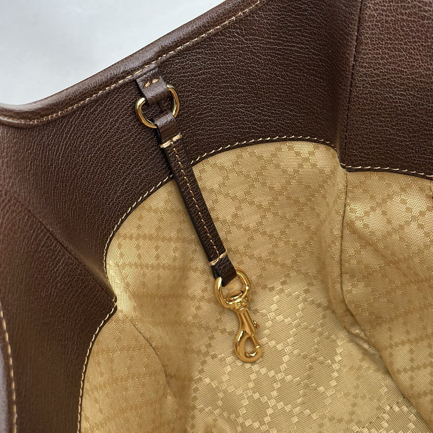 沙色GG帆布/棕色軟皮皮革滾邊