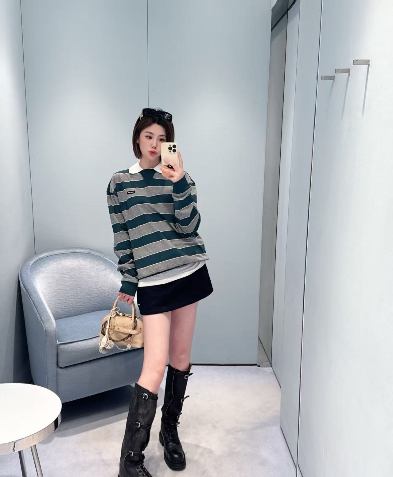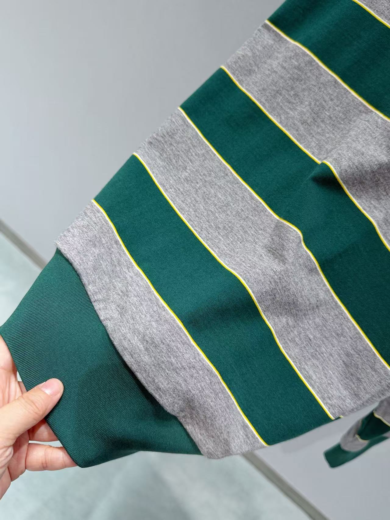 復古墨綠配上柔和煙灰條紋,經典中帶層次,再點綴細閃的淺黃線條,基礎款瞬間變得很有細節感,不會單調又超級顯貴。