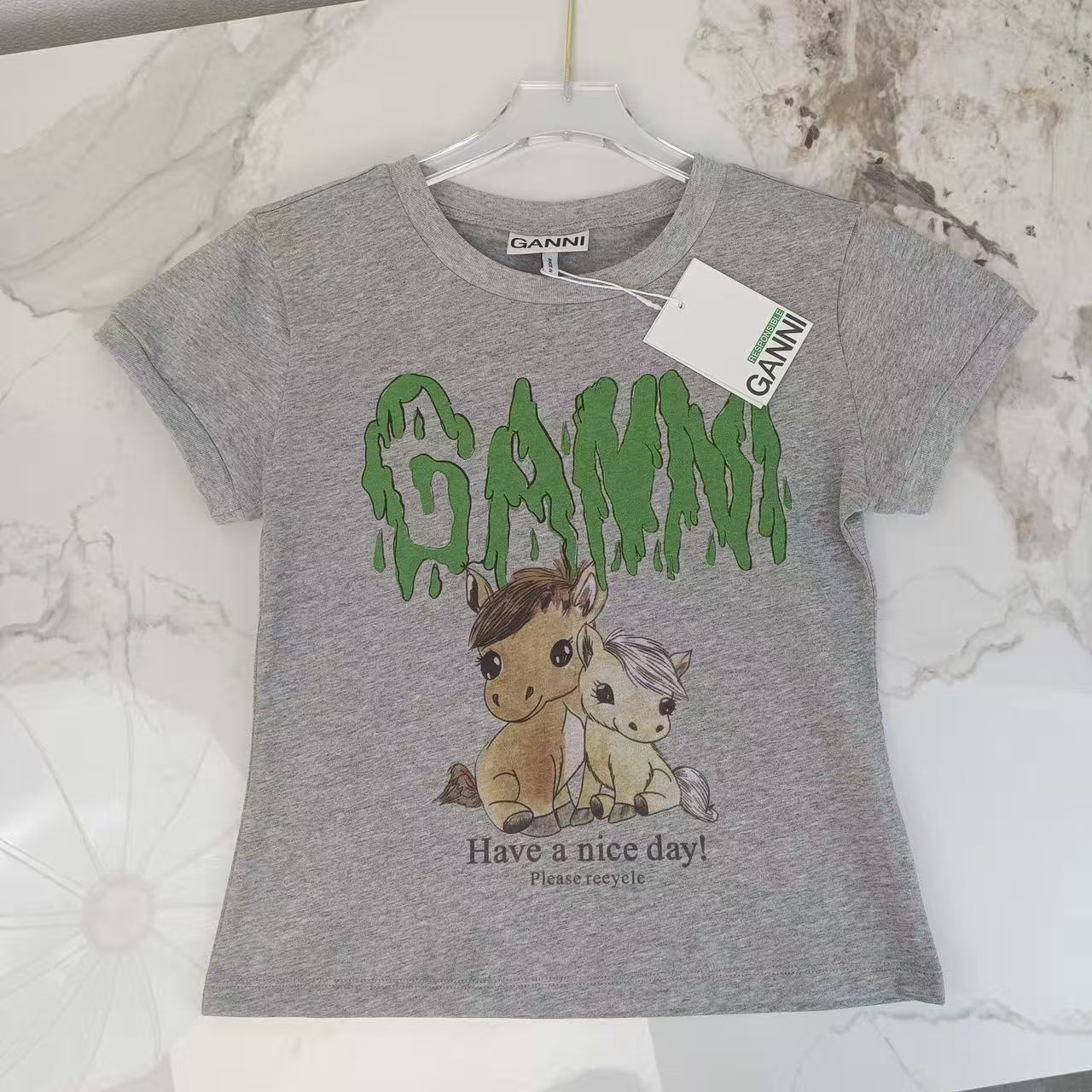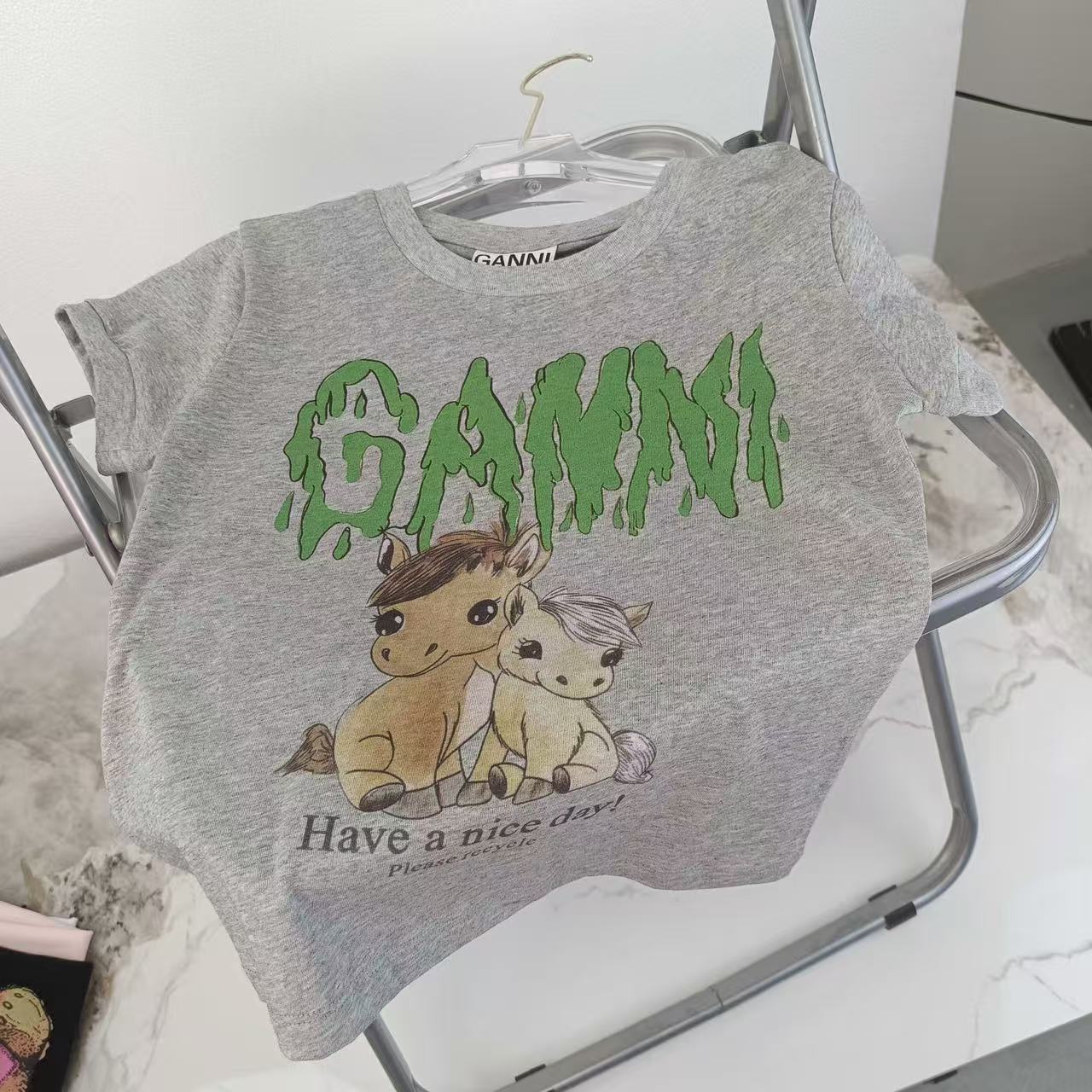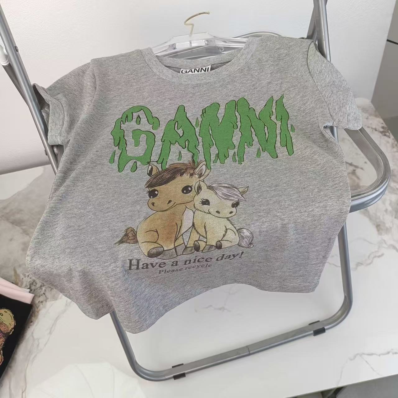2025早秋新品 Ganni家 獨角獸圖案修身短袖