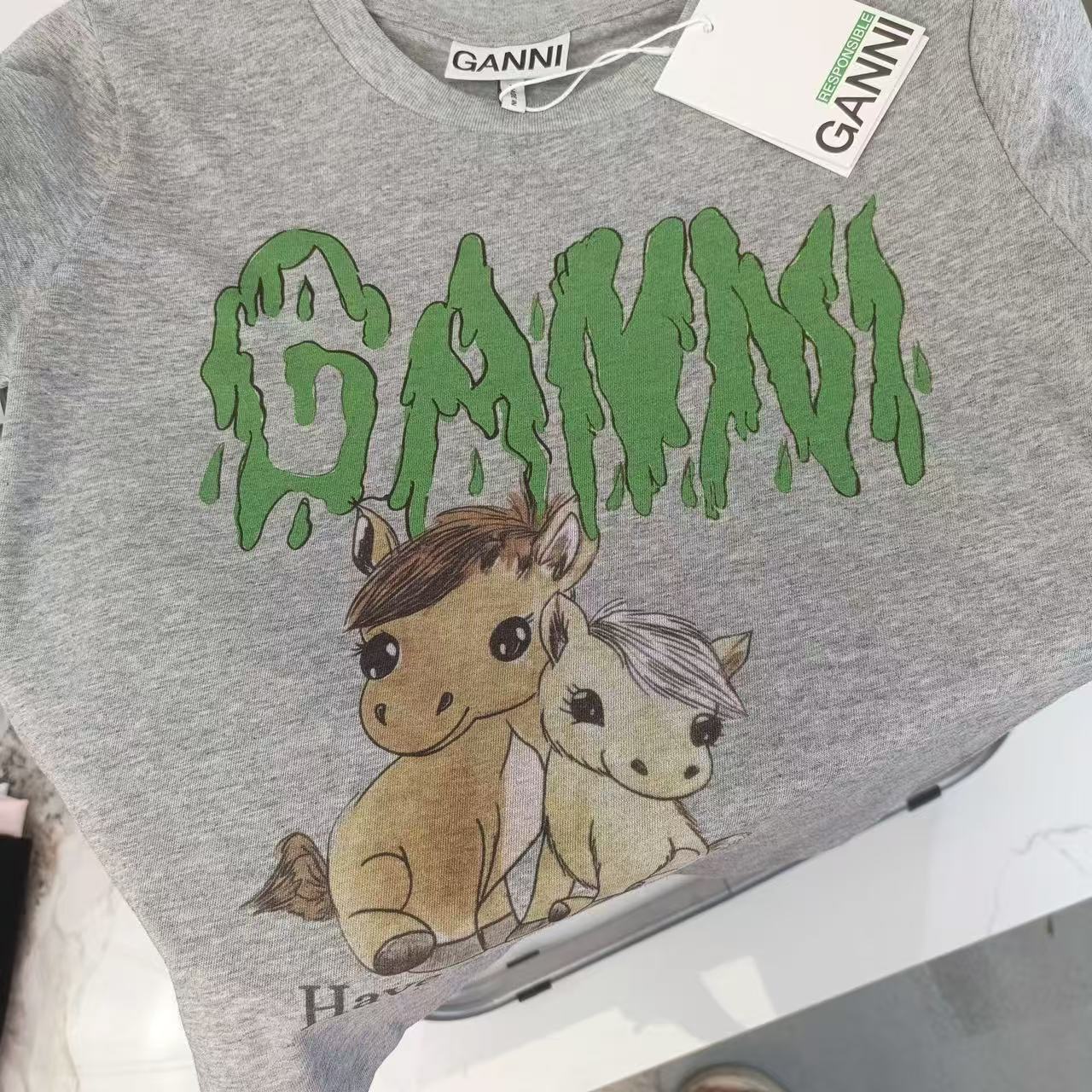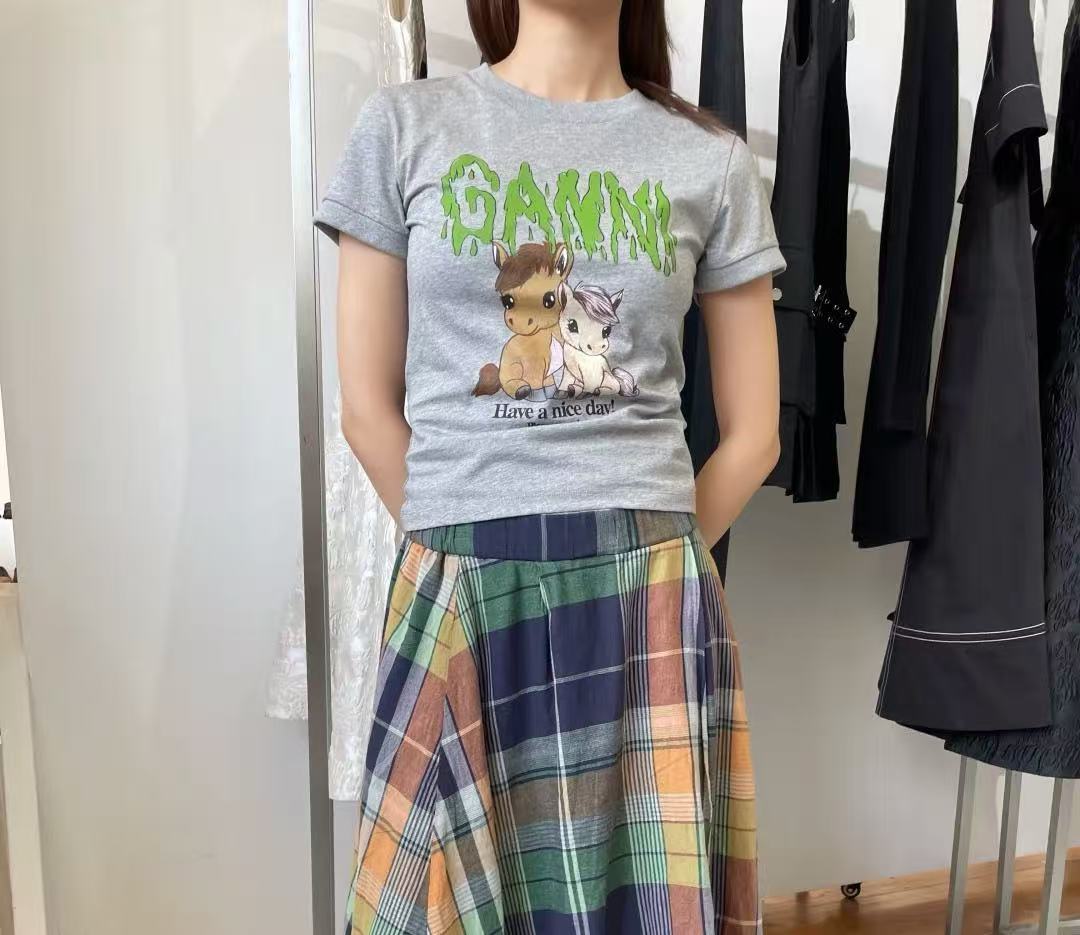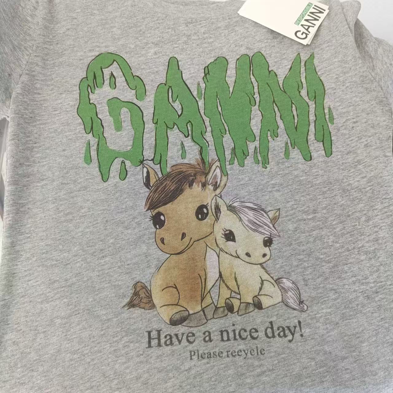 2025早秋新品 Ganni家 獨角獸圖案修身短袖
