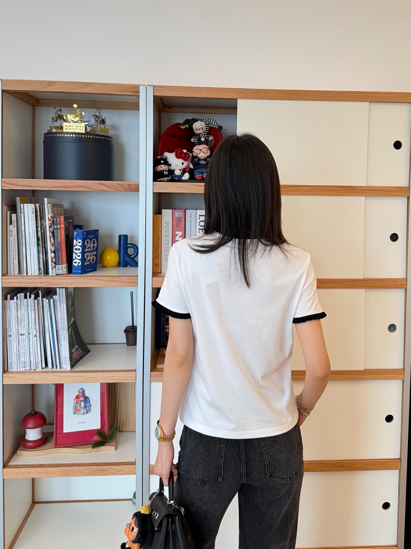 袖口特別加入撞色飛邊羅紋設計,讓整體多了一點細節層次,不會過於浮誇,卻能剛剛好地提升整體精緻度。