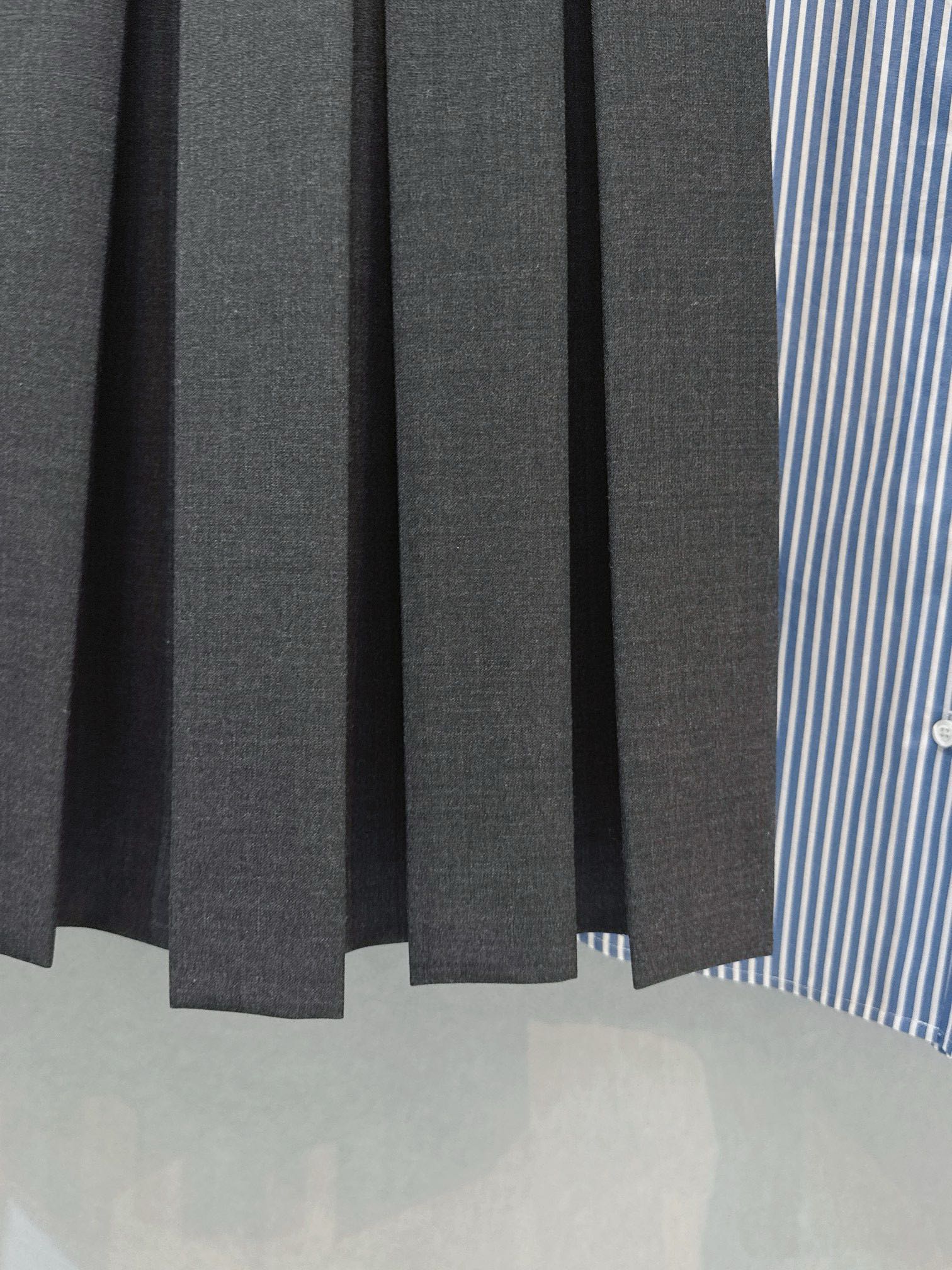 這條半裙採用的是羊毛材質,觸感非常柔軟舒適,而且保暖性也很好,很適合在早春或秋天穿著。這種高級的材質,讓整條裙子的質感都提升了不少。