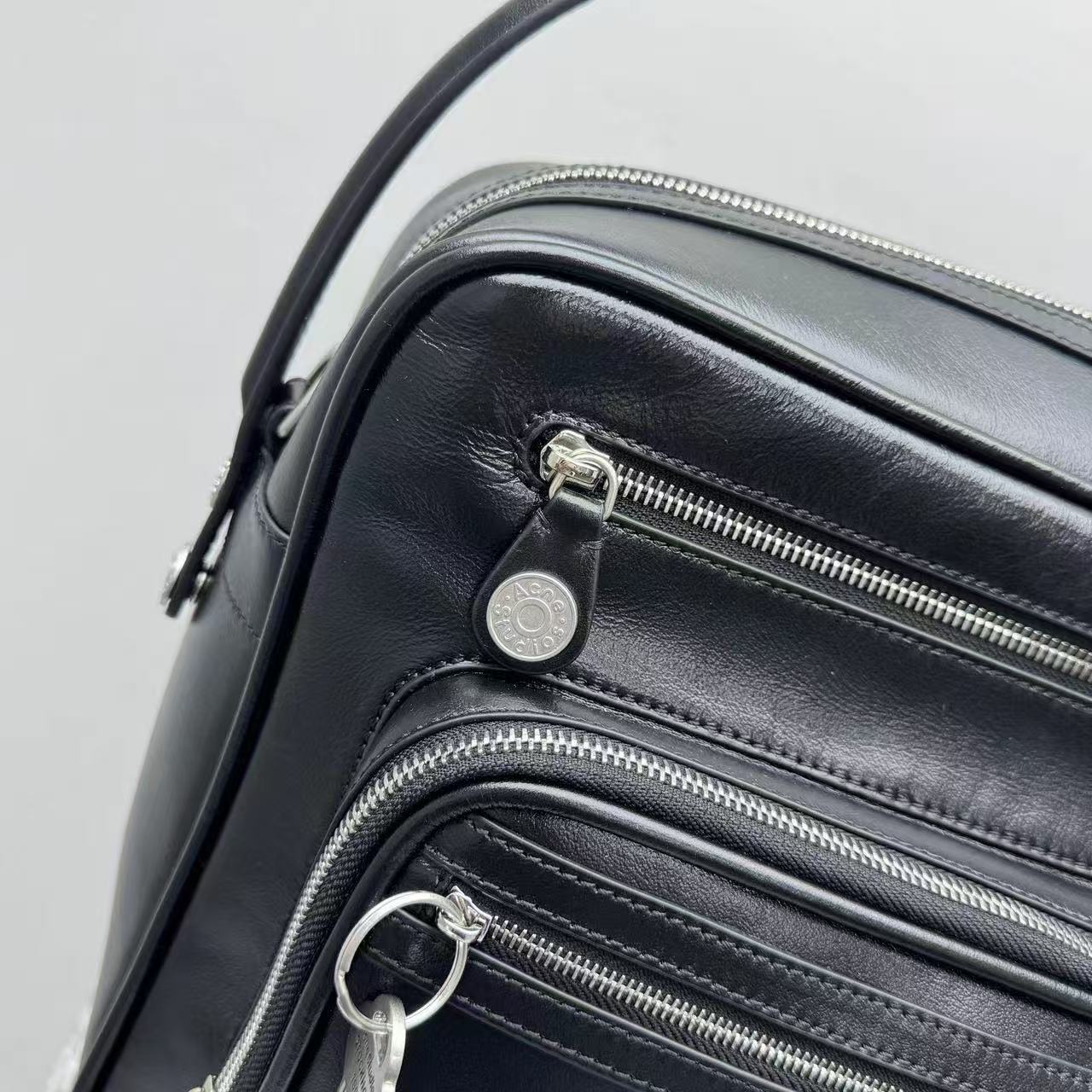 特供冷灰色平滑牛皮: 嚴選高品質全粒面皮胚,皮質厚實且具有細膩的油脂感。這種面料不僅耐磨經穿,且會隨著使用時間的增加,呈現出一種自然的半啞光光澤,越用越有味道。