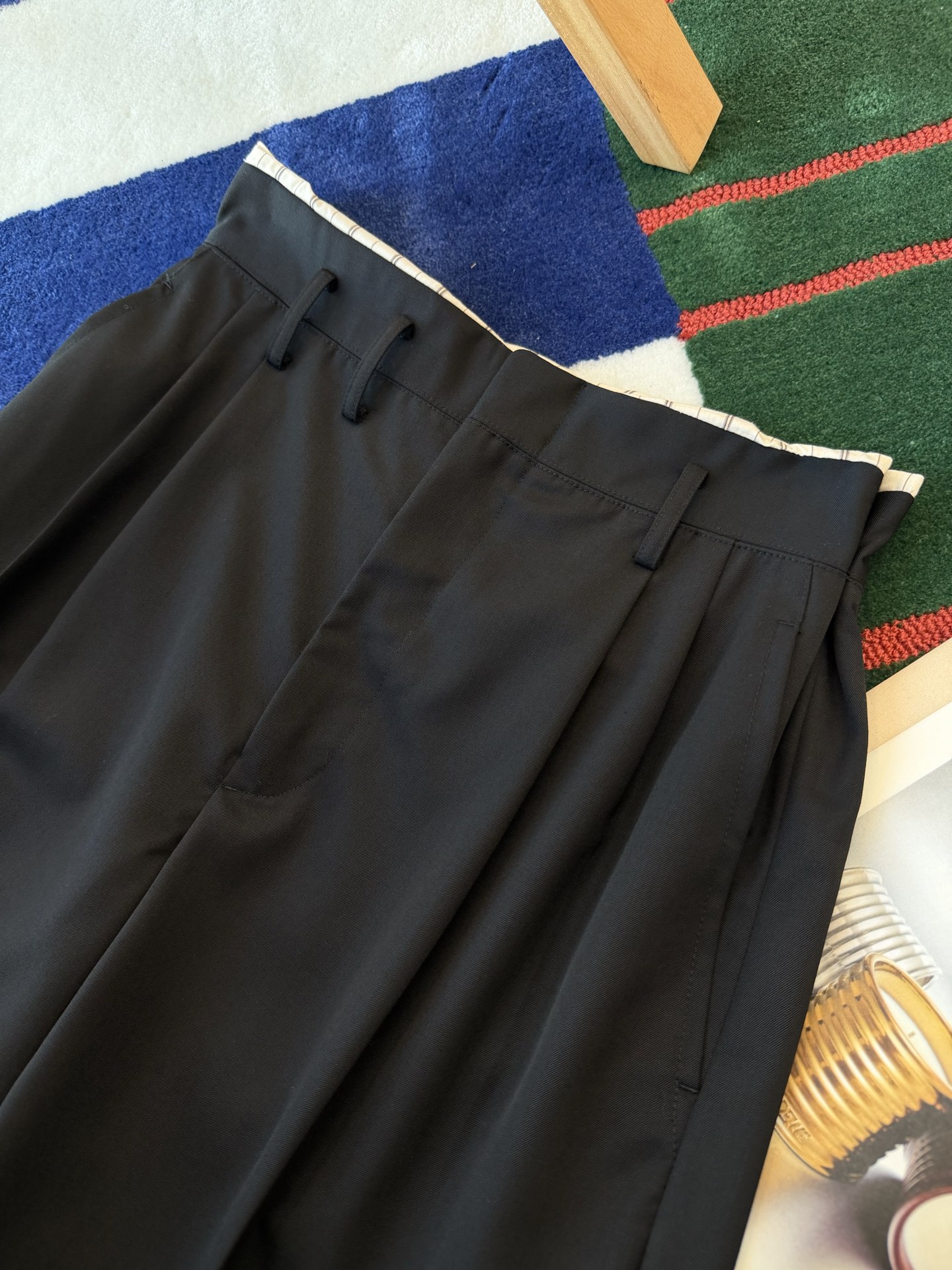 選用西裝材質,挺括且帶有自然垂墜感,穿起來俐落不鬆垮。