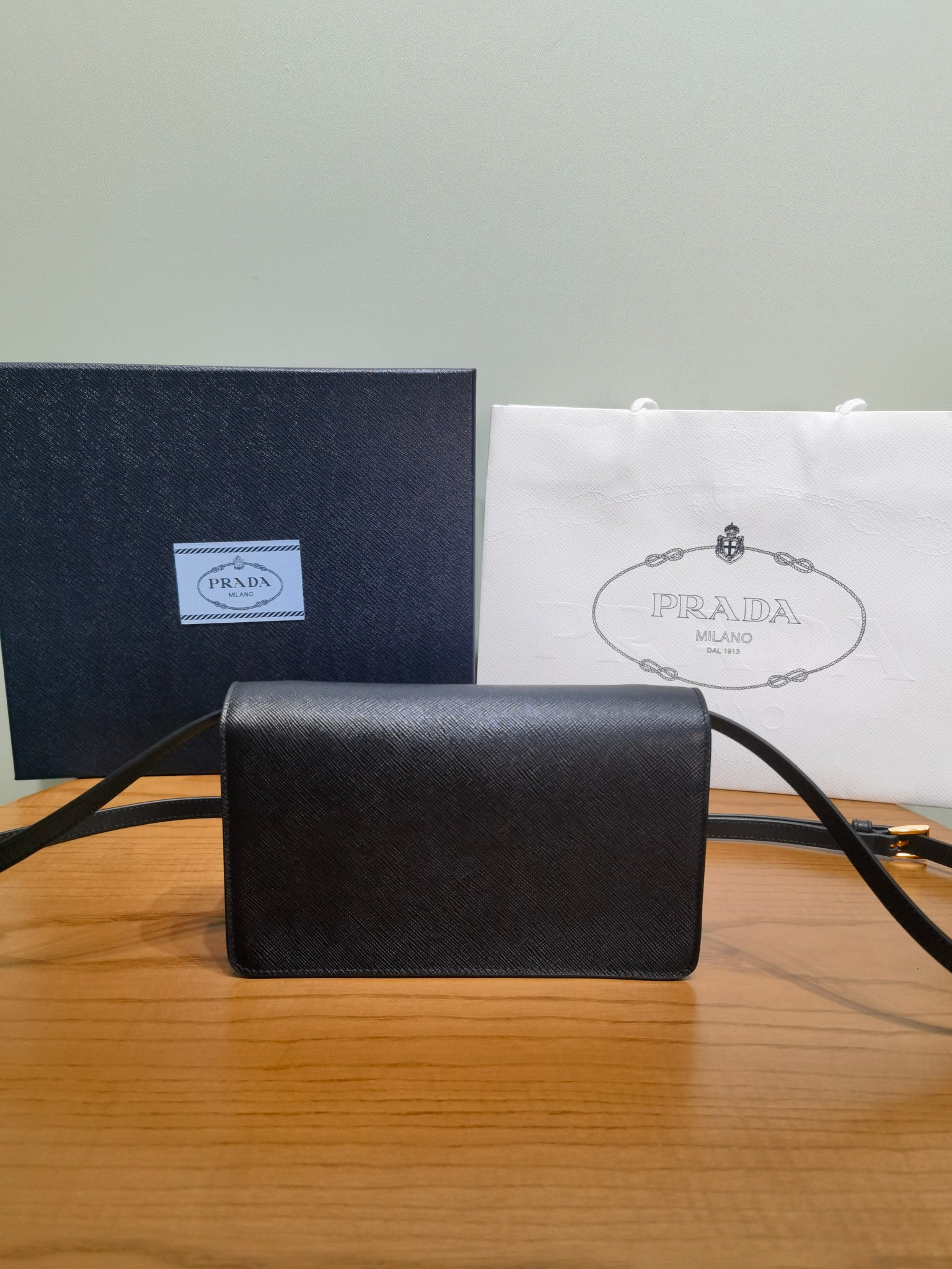方正輪廓搭配品牌經典的三角形金屬標誌,低調又不失精緻感,一眼就能認出是P家的經典之作。