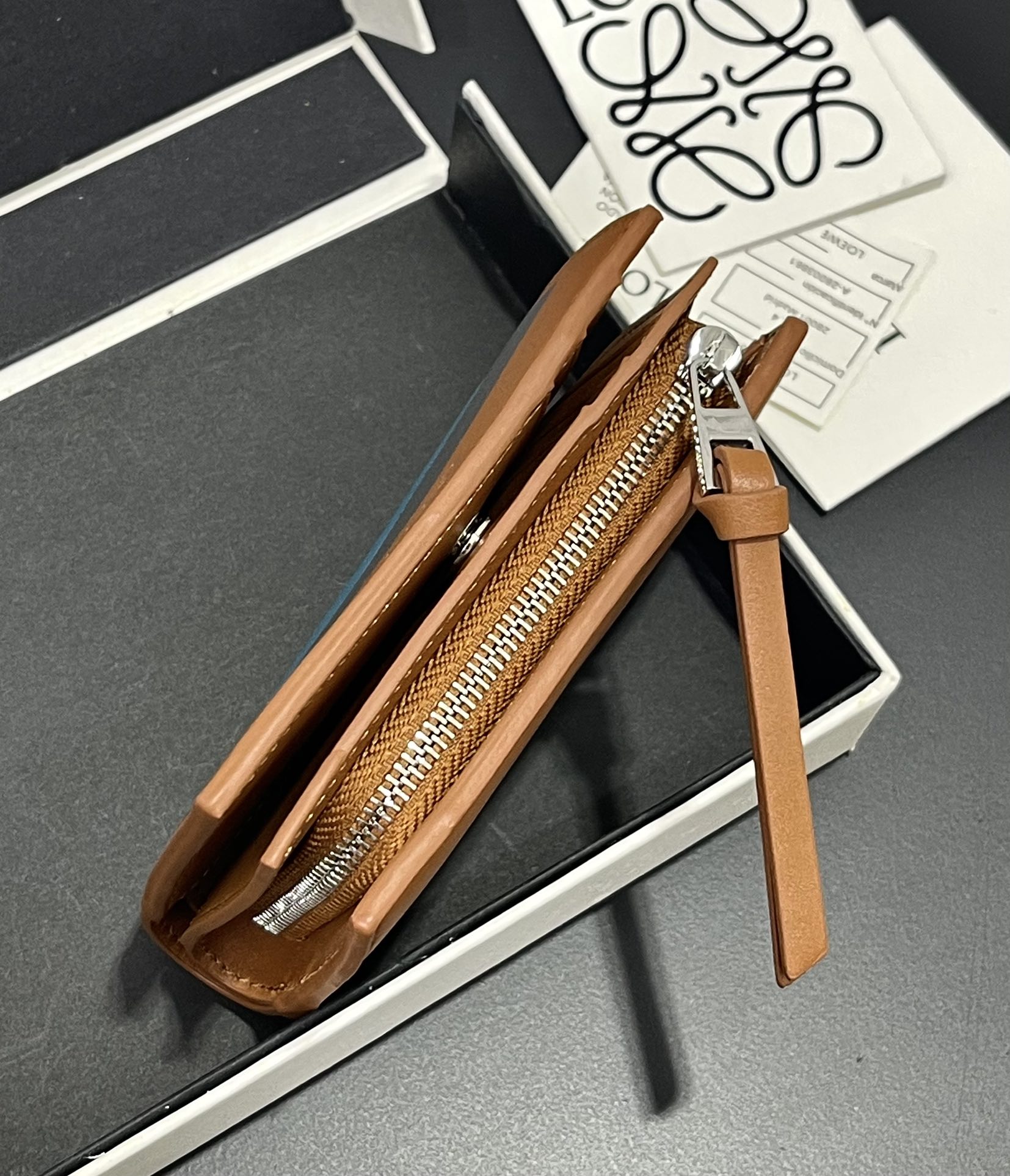 皮夾為對扣式開合設計,內層配置六個卡位與一個拉鏈夾層,大小剛好能放下常用卡片、零錢與摺疊鈔票,不會太厚又能裝得下所有必需品。