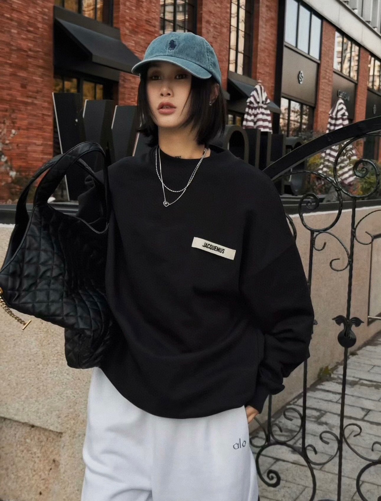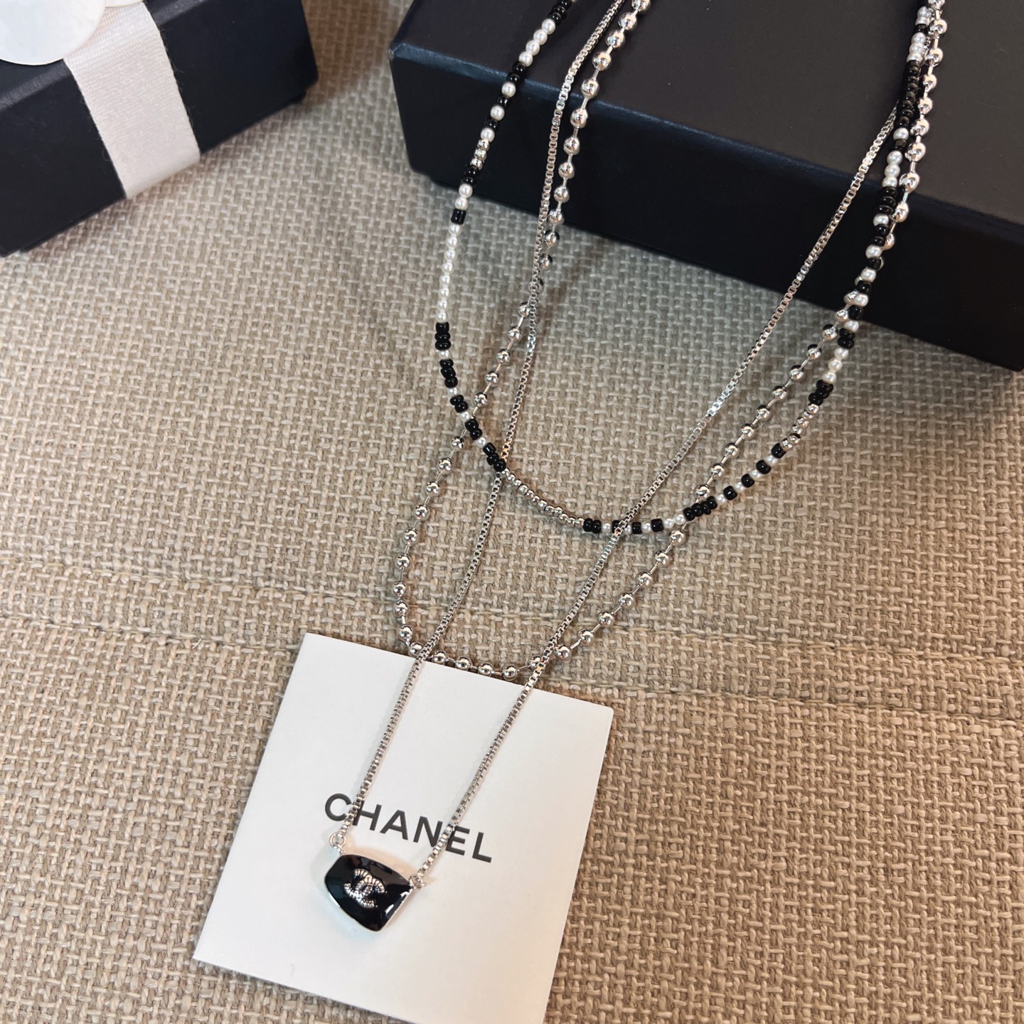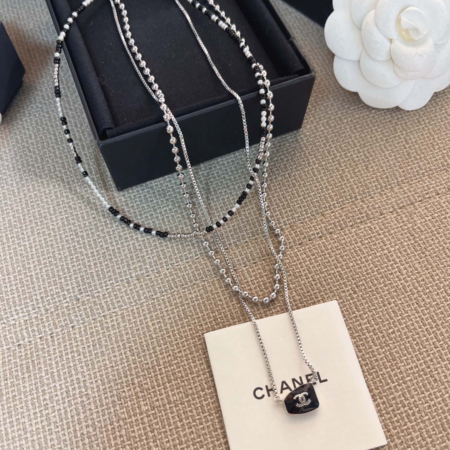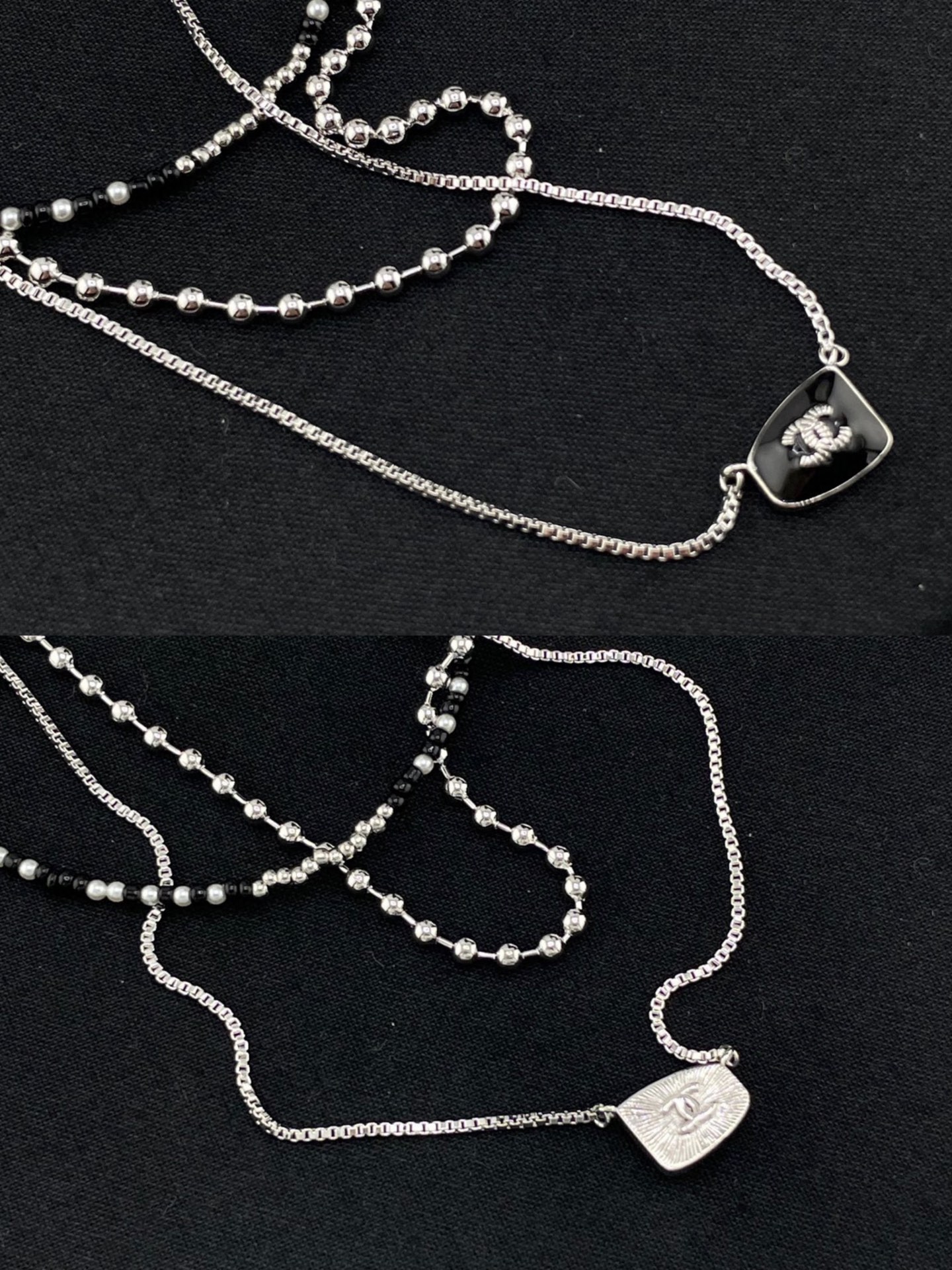整體走的是簡約中帶設計感的路線,黑白配色經典又耐看,加上三層堆疊的層次感,讓鎖骨位置看起來更立體,也多了一點精緻的氛圍。