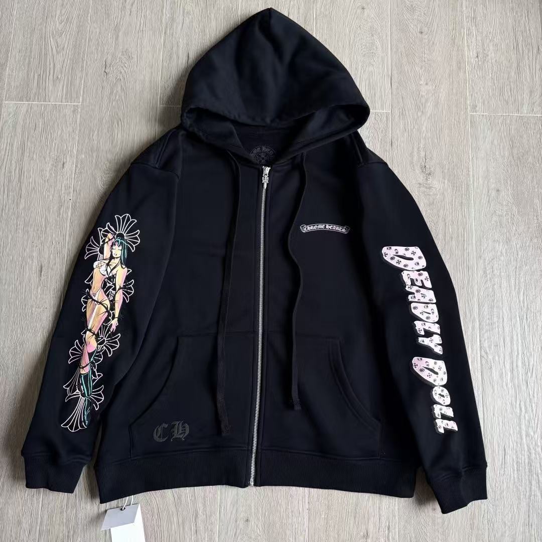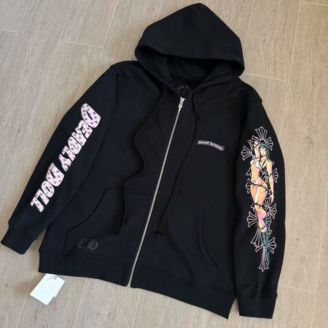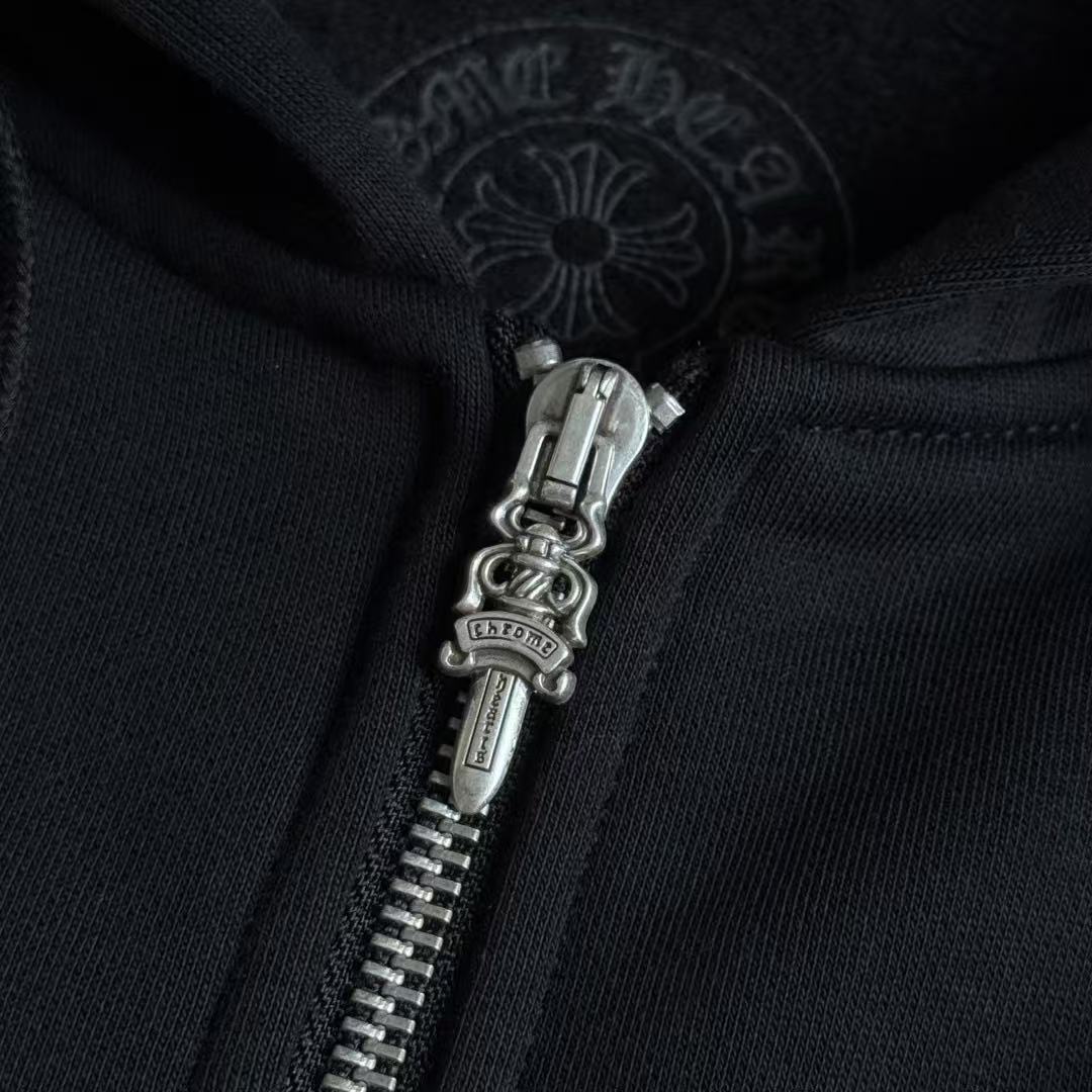 這絕對是2025秋冬最瘋「銀器硬核教主」神衣,遠看就是低調全黑重磅衛衣,近看胸前那片超大立體十字架+墓碑圖騰直接閃爆全場,油墨厚到像浮雕,隨便拉開拉鏈露出內裡就是整條街最野的那個,帥到讓人想直接去紋身~