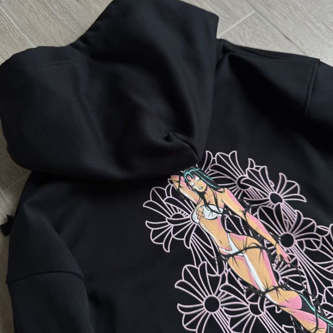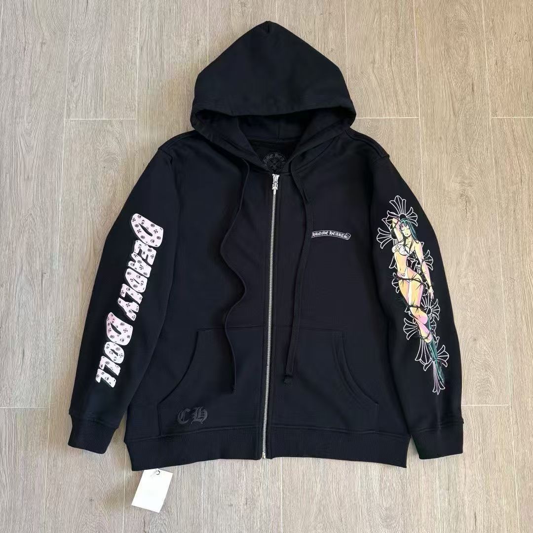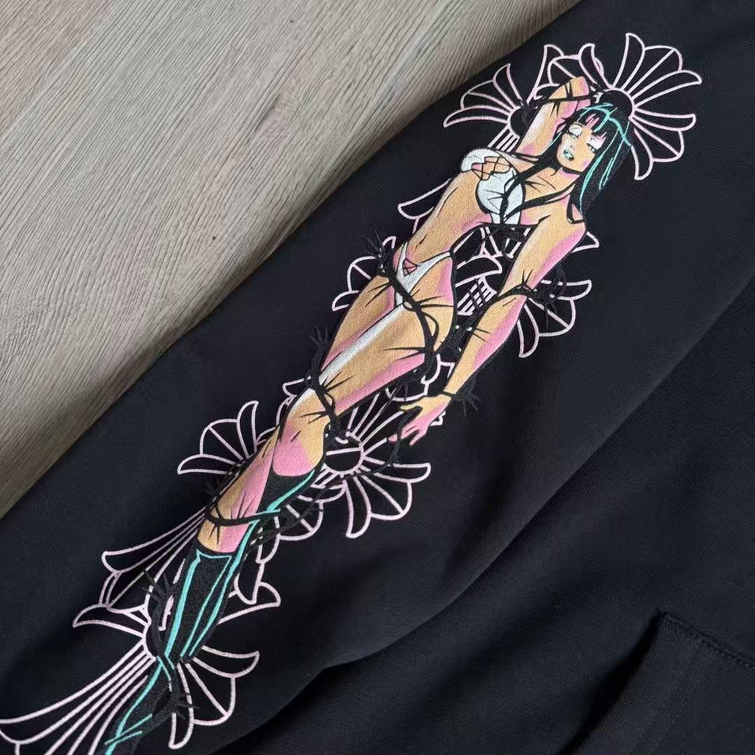這絕對是2025秋冬最瘋「銀器硬核教主」神衣,遠看就是低調全黑重磅衛衣,近看胸前那片超大立體十字架+墓碑圖騰直接閃爆全場,油墨厚到像浮雕,隨便拉開拉鏈露出內裡就是整條街最野的那個,帥到讓人想直接去紋身~