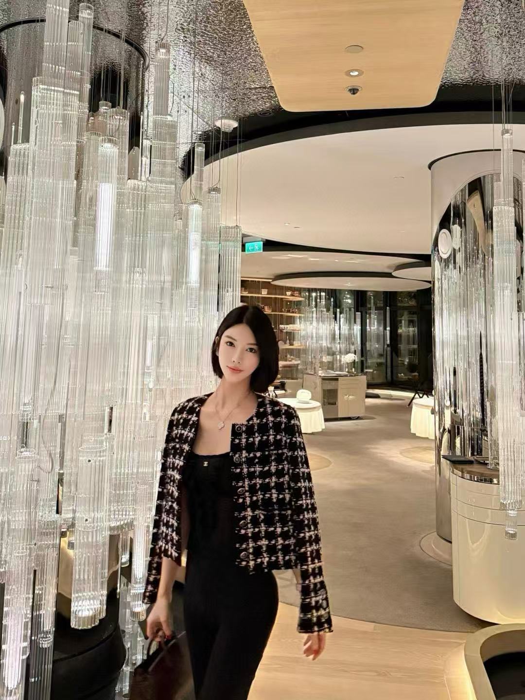 這件粗花呢外套一上身,立刻散發出優雅與嬌俏兼具的氛圍。黑拼粉的花呢配色,既經典又帶點俏麗氣息,完美詮釋了香家獨有的女性魅力。