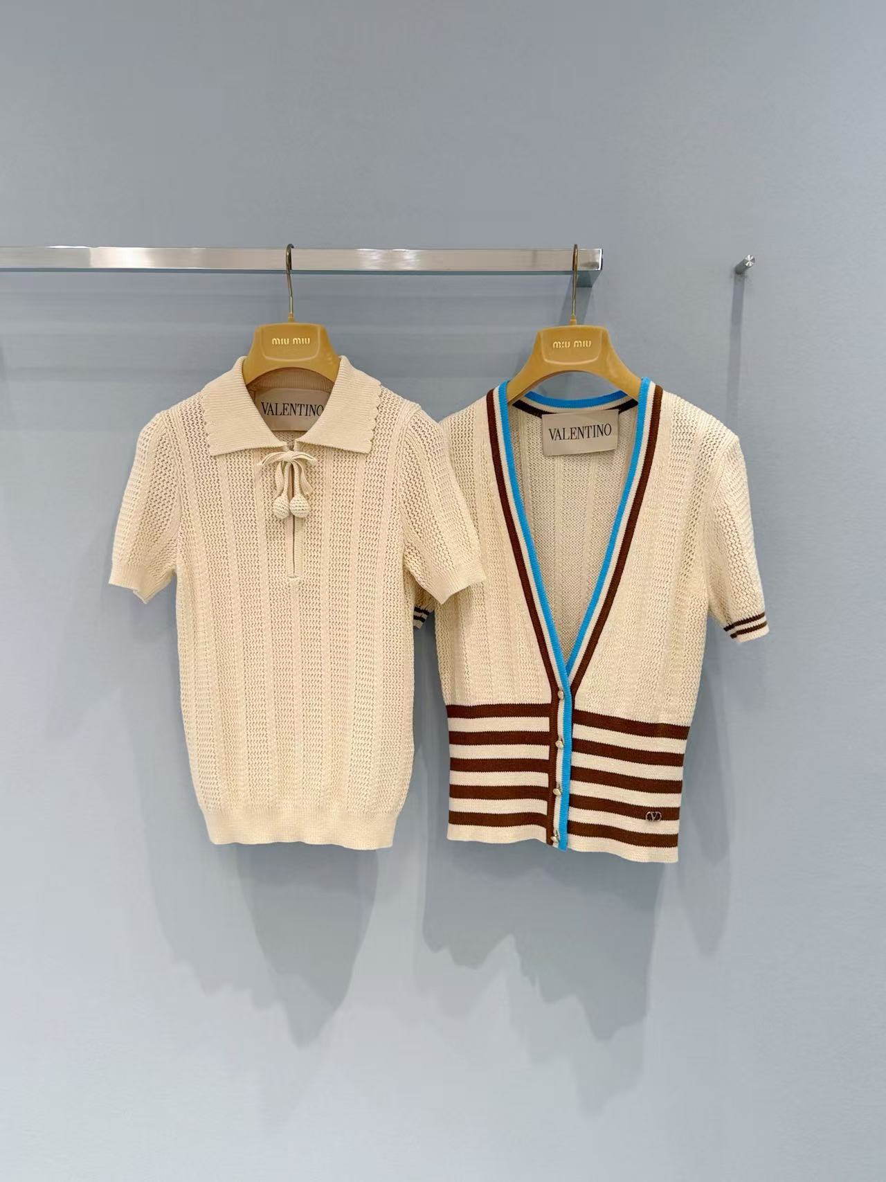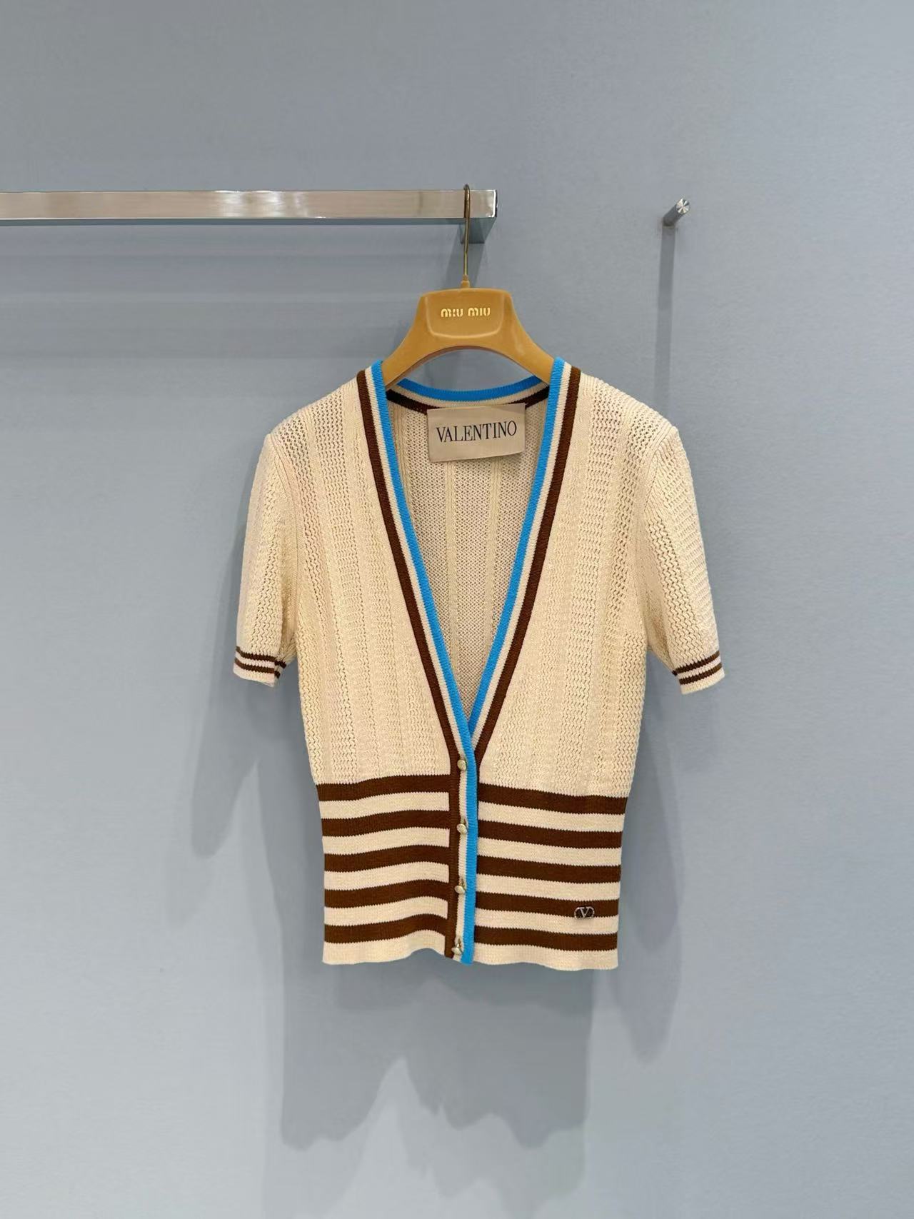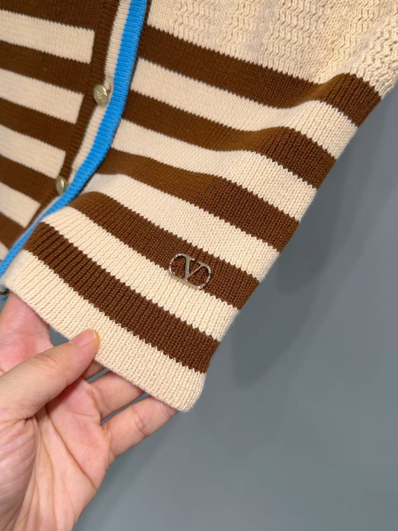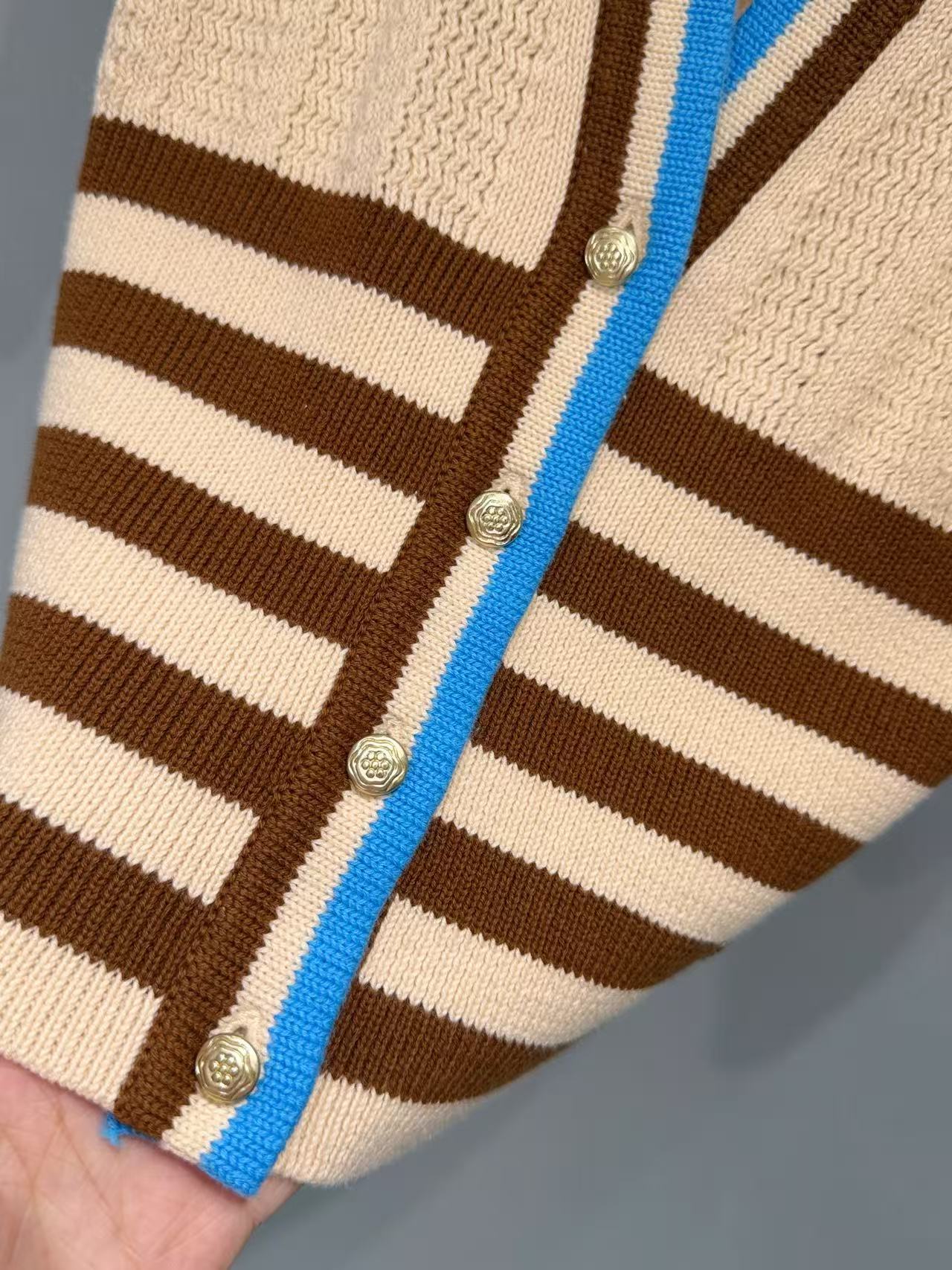 2026早春 V家 撞色條紋 V 領針織開衫