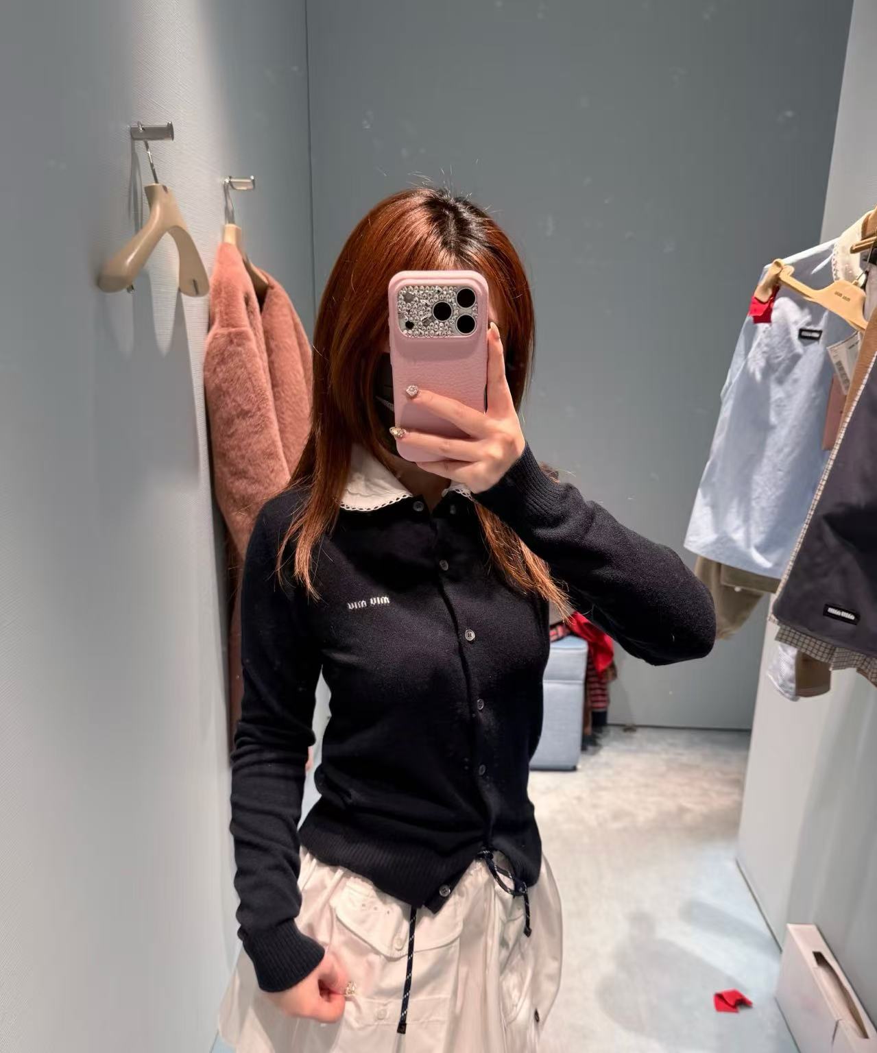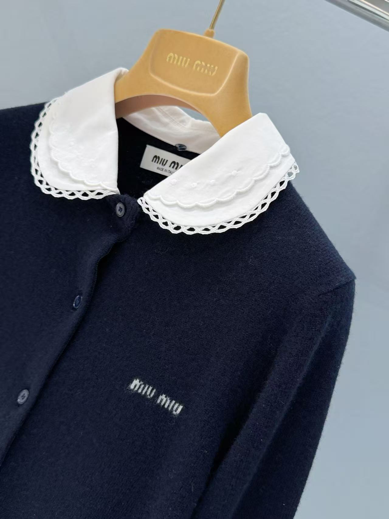 2026 早春 Miu家 可拆卸花邊領針織衫