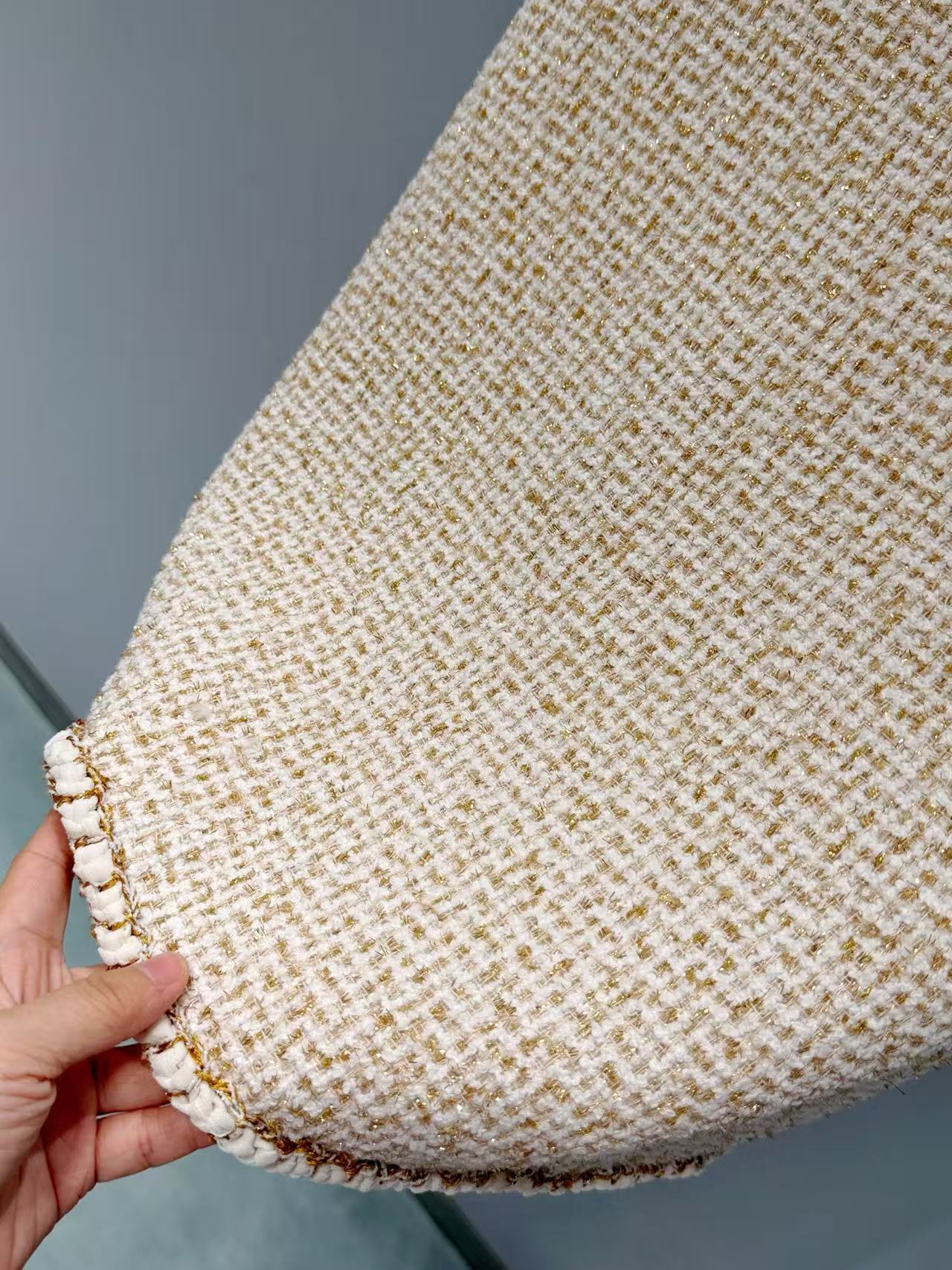 材質: 經典粗花呢材質,質地紮實且版型立體。