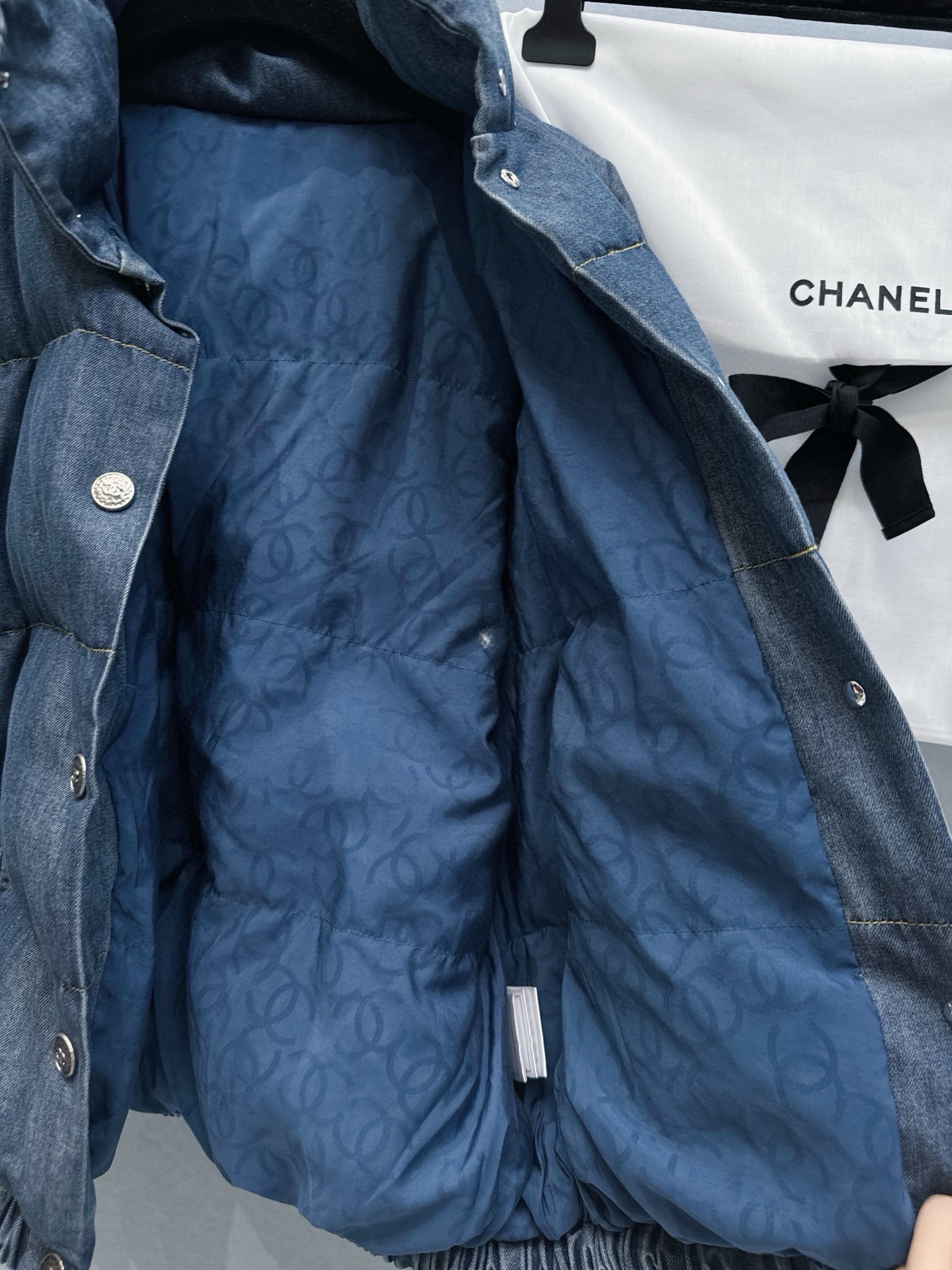 • 外層:高級牛仔材質,經過專業水洗處理,呈現柔和復古的色調與細膩質感。