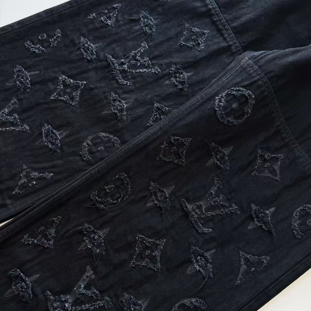 這款牛仔褲打破了傳統丹寧的單調感,將品牌經典的 Monogram 元素與街頭感十足的破壞工藝完美結合。