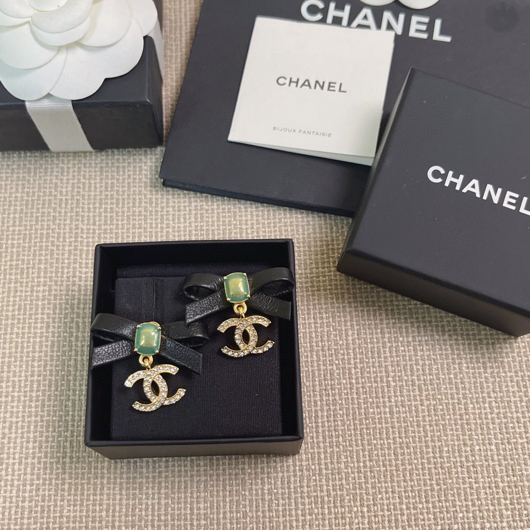 2025早春新品 C家皮蝴蝶結綠琺琅金C耳環
