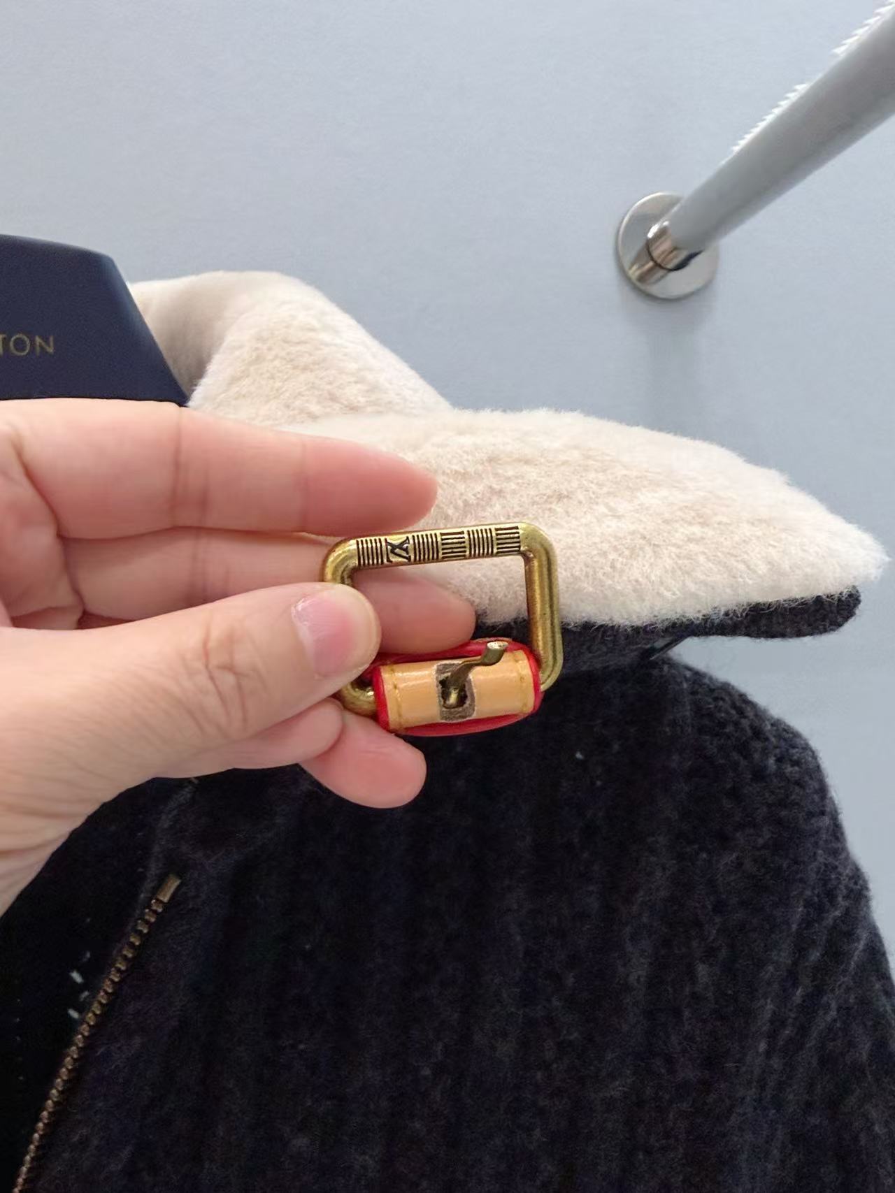 高領拼接白色羊羔絨,溫暖又添奢華質感,橙色皮革飾帶搭配金屬拉鍊,細節超有標誌性存在感!