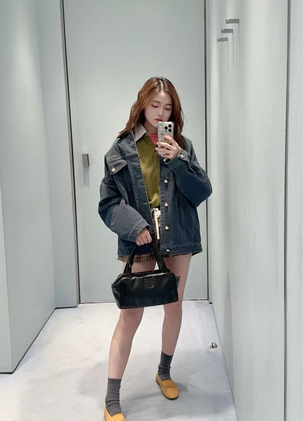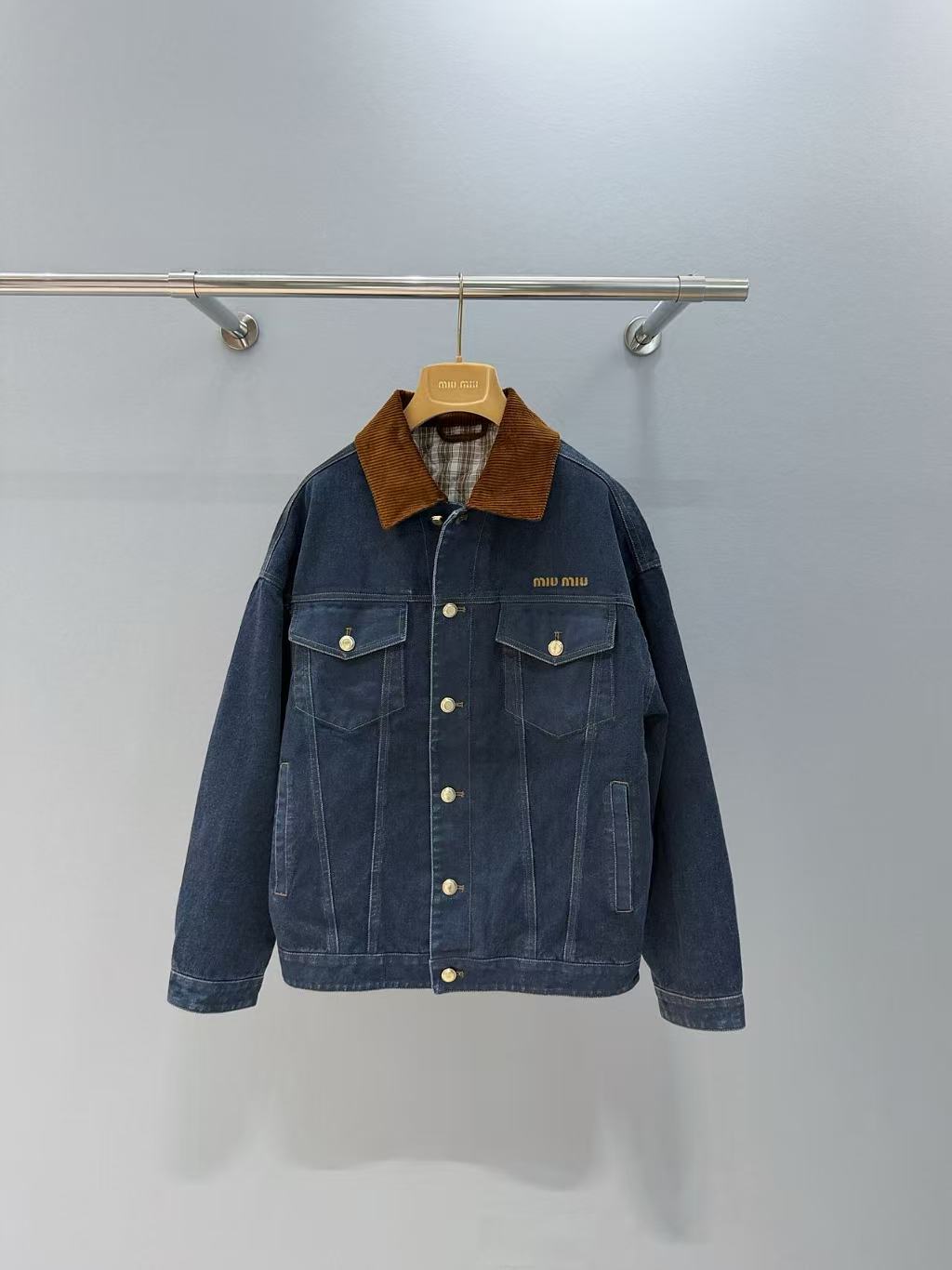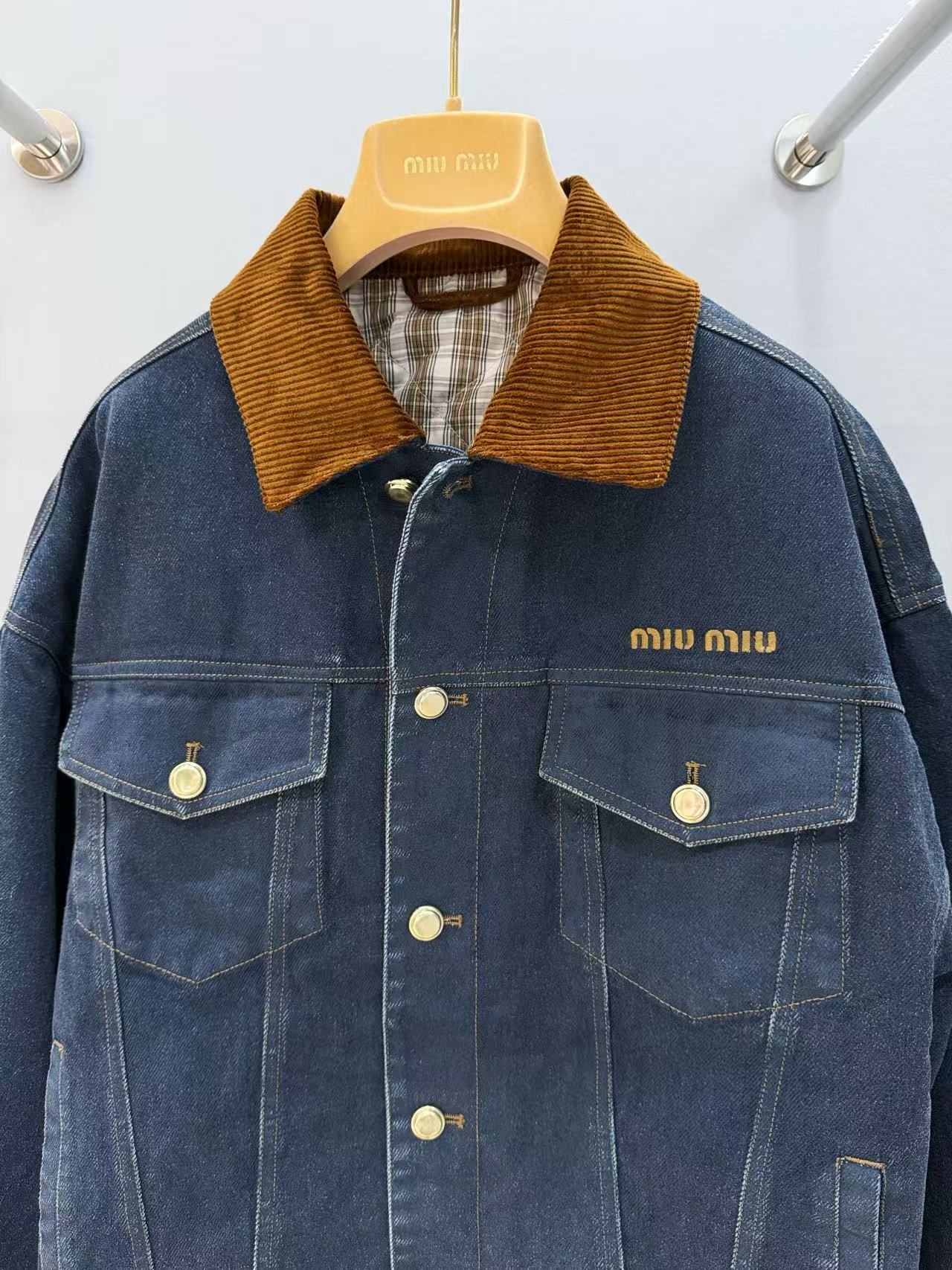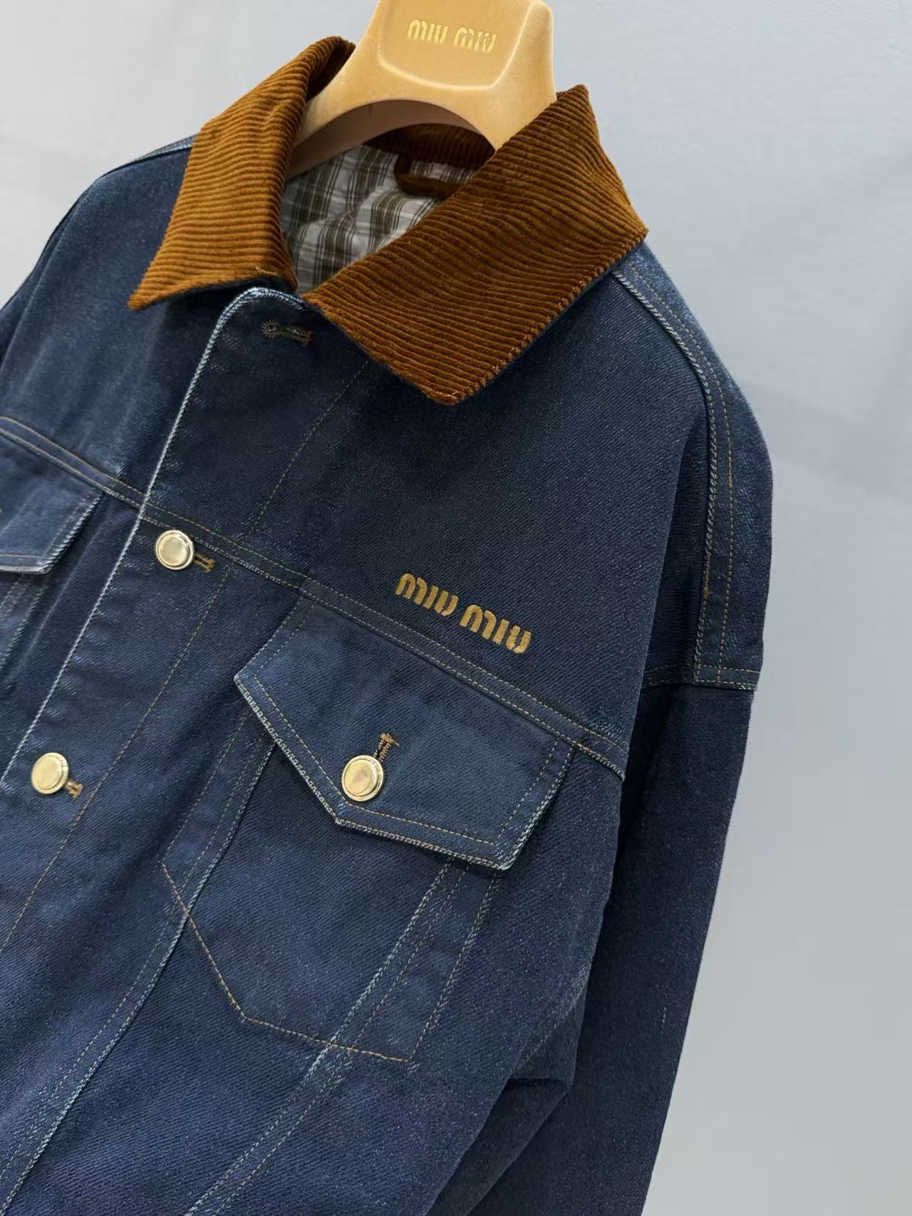 2025早秋 Miu家 復古拼領牛仔夾克外套