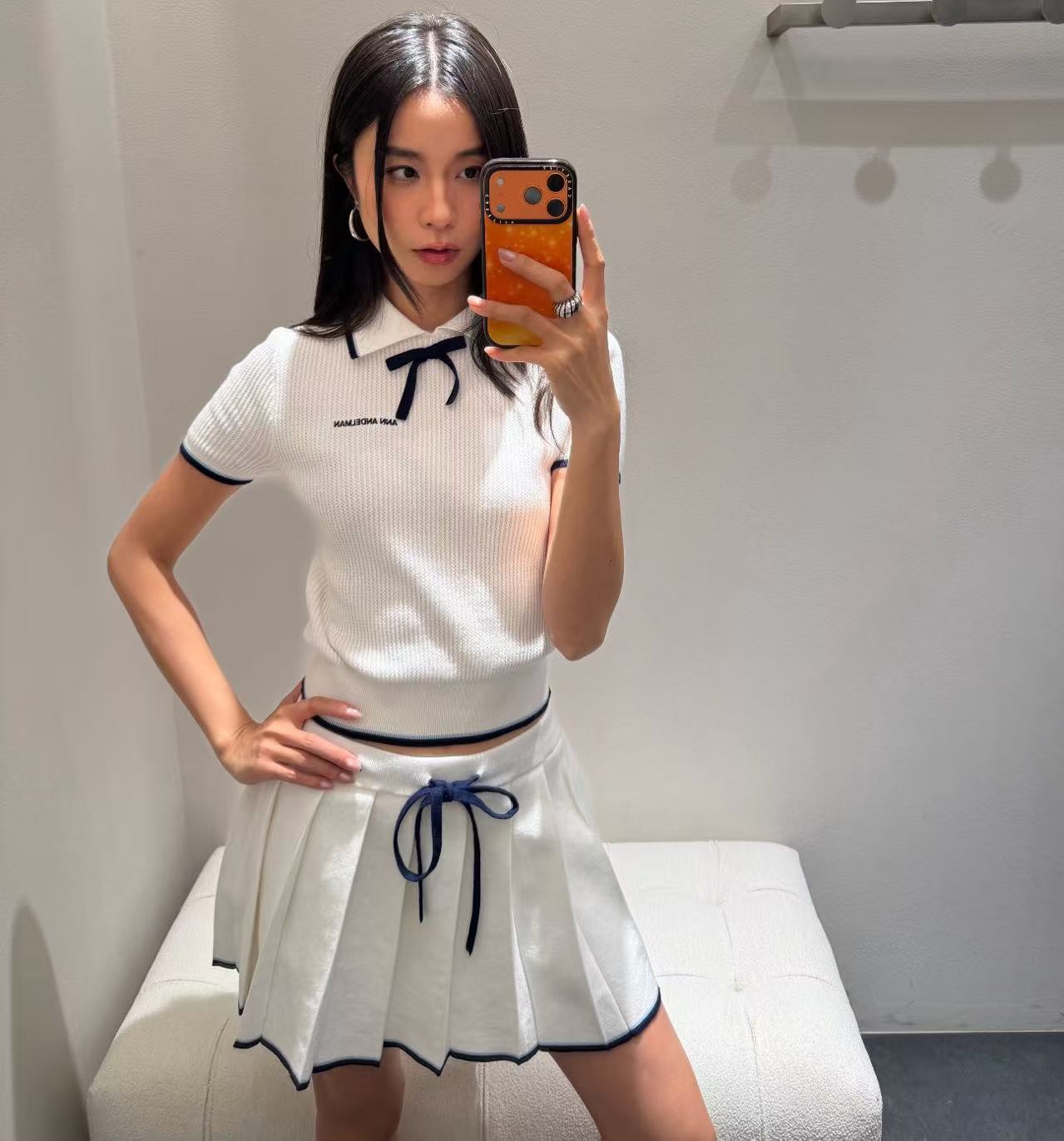 學院元素總能被轉化為更具質感的都會語彙。這次分享的 2026 春季新款針織百褶裙,完美平衡了甜美與高端時裝的知性氣質。