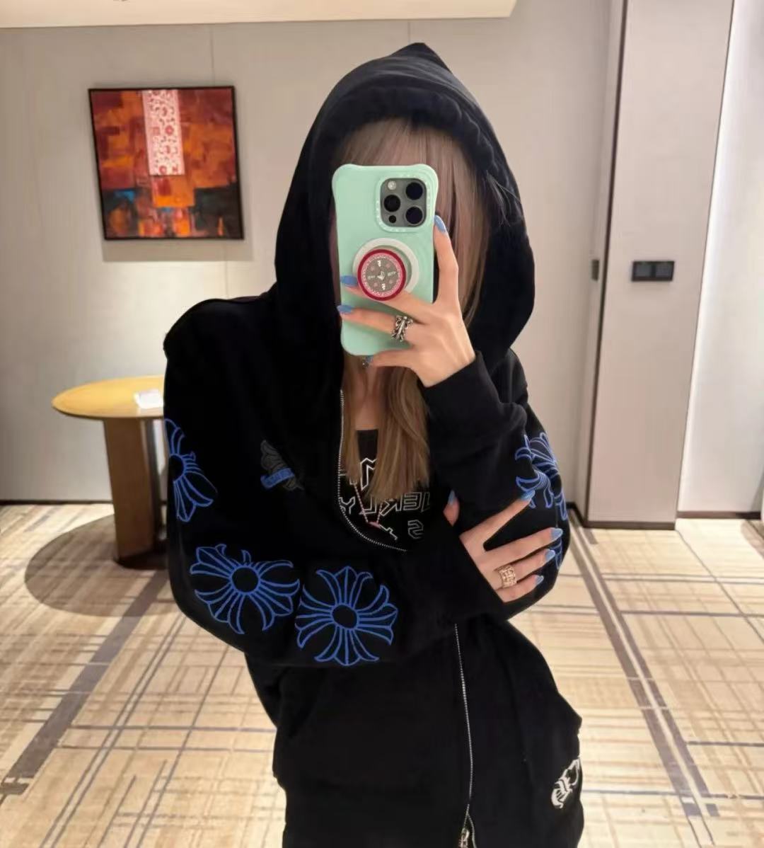 2026早春 CH克羅心 藍色破裂馬蹄立體印花衛衣