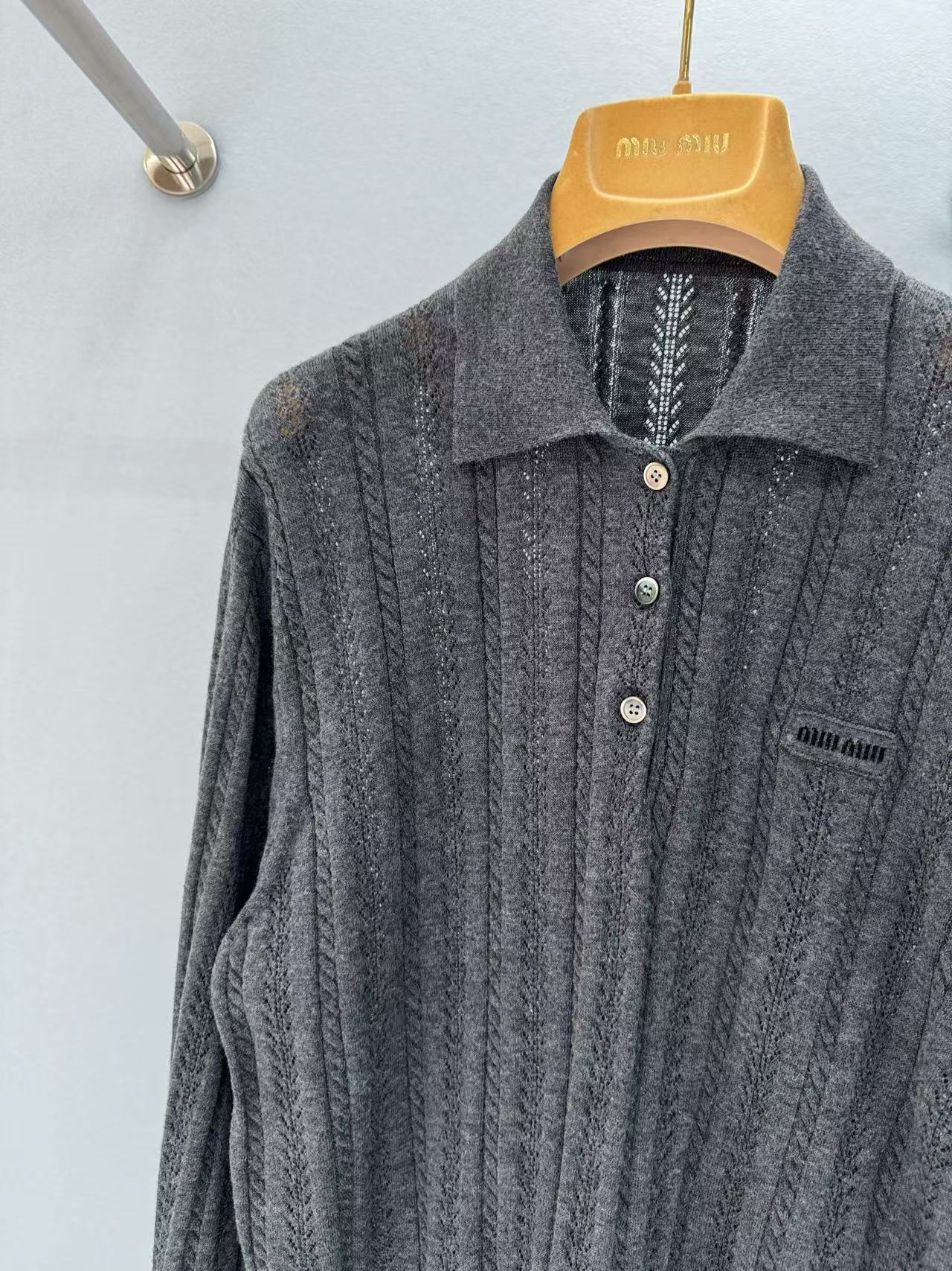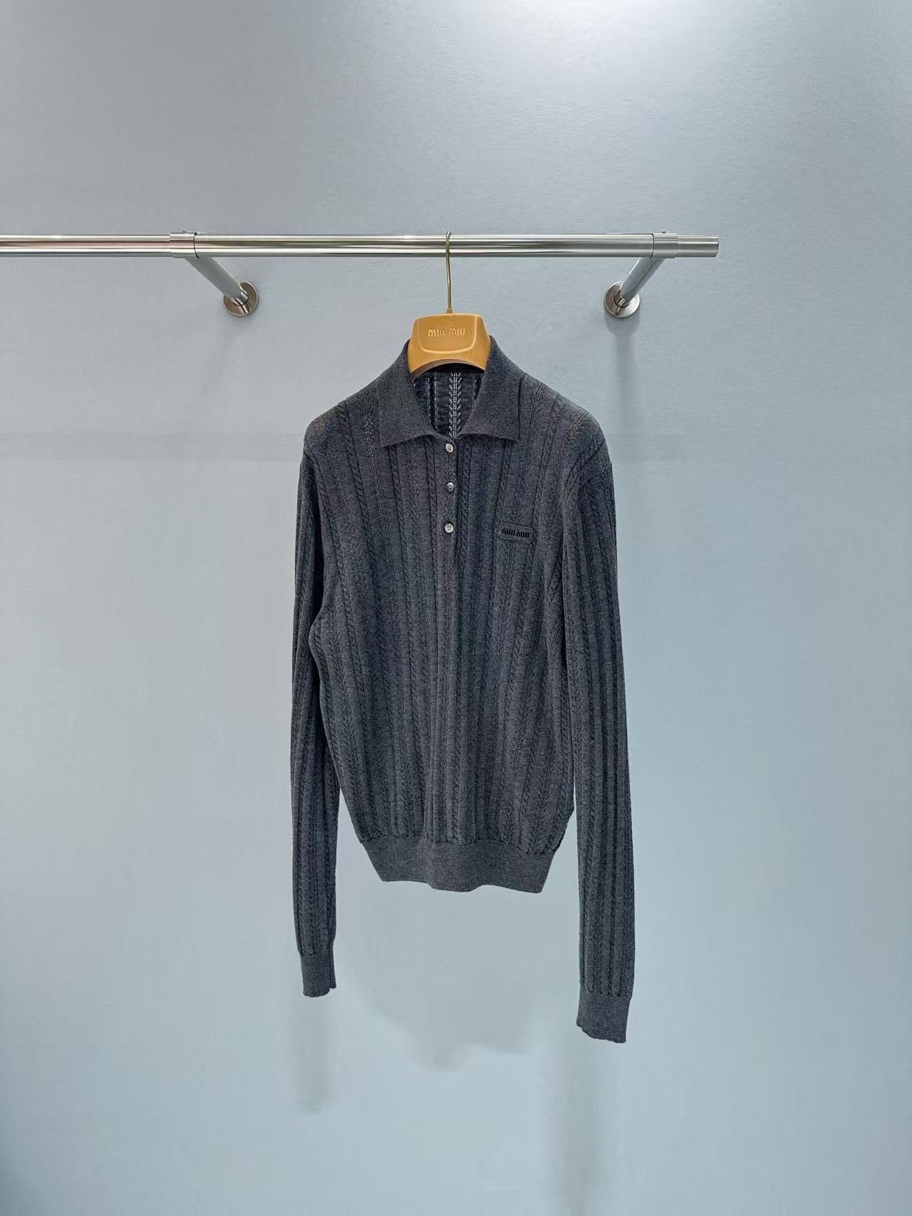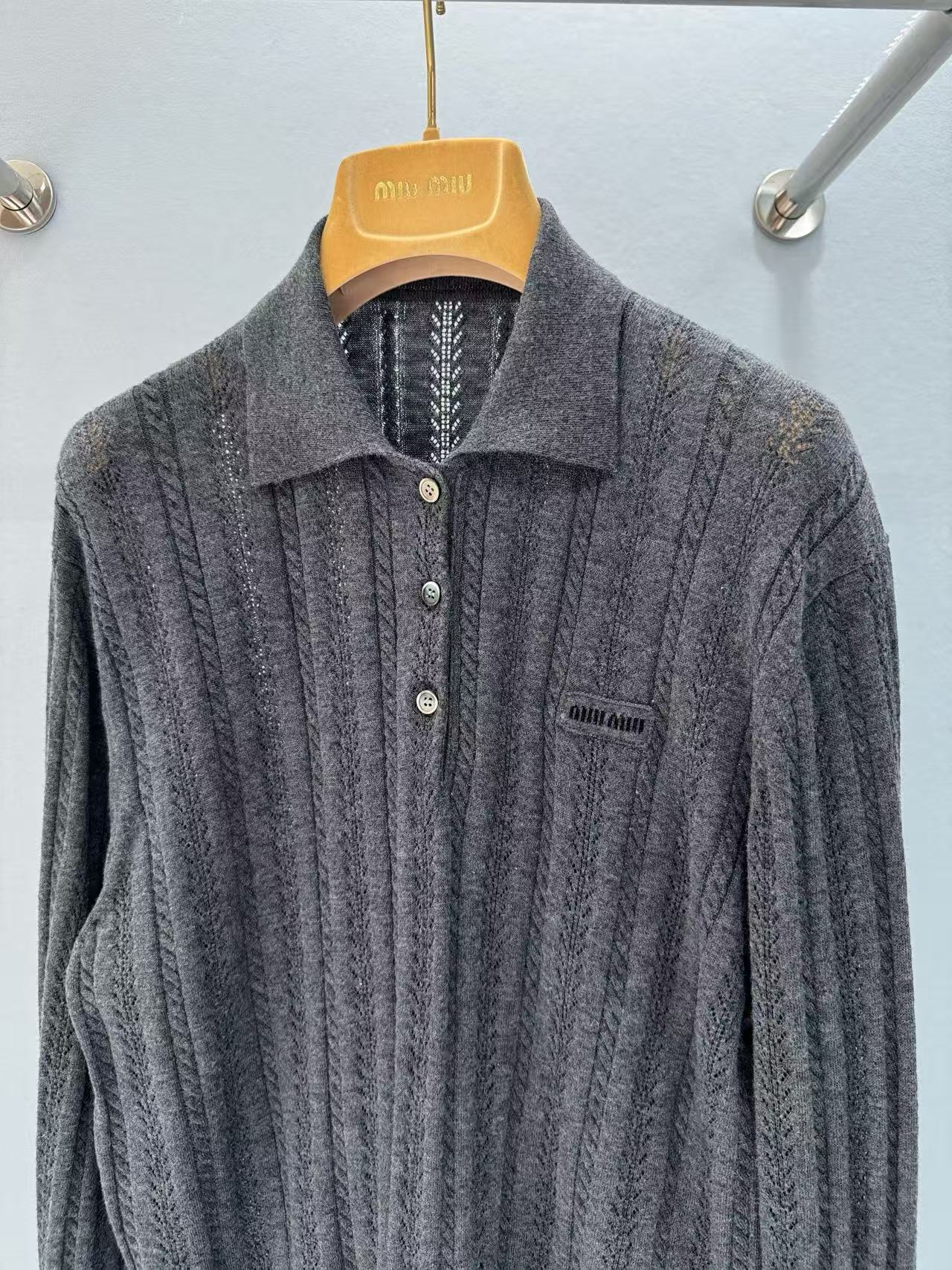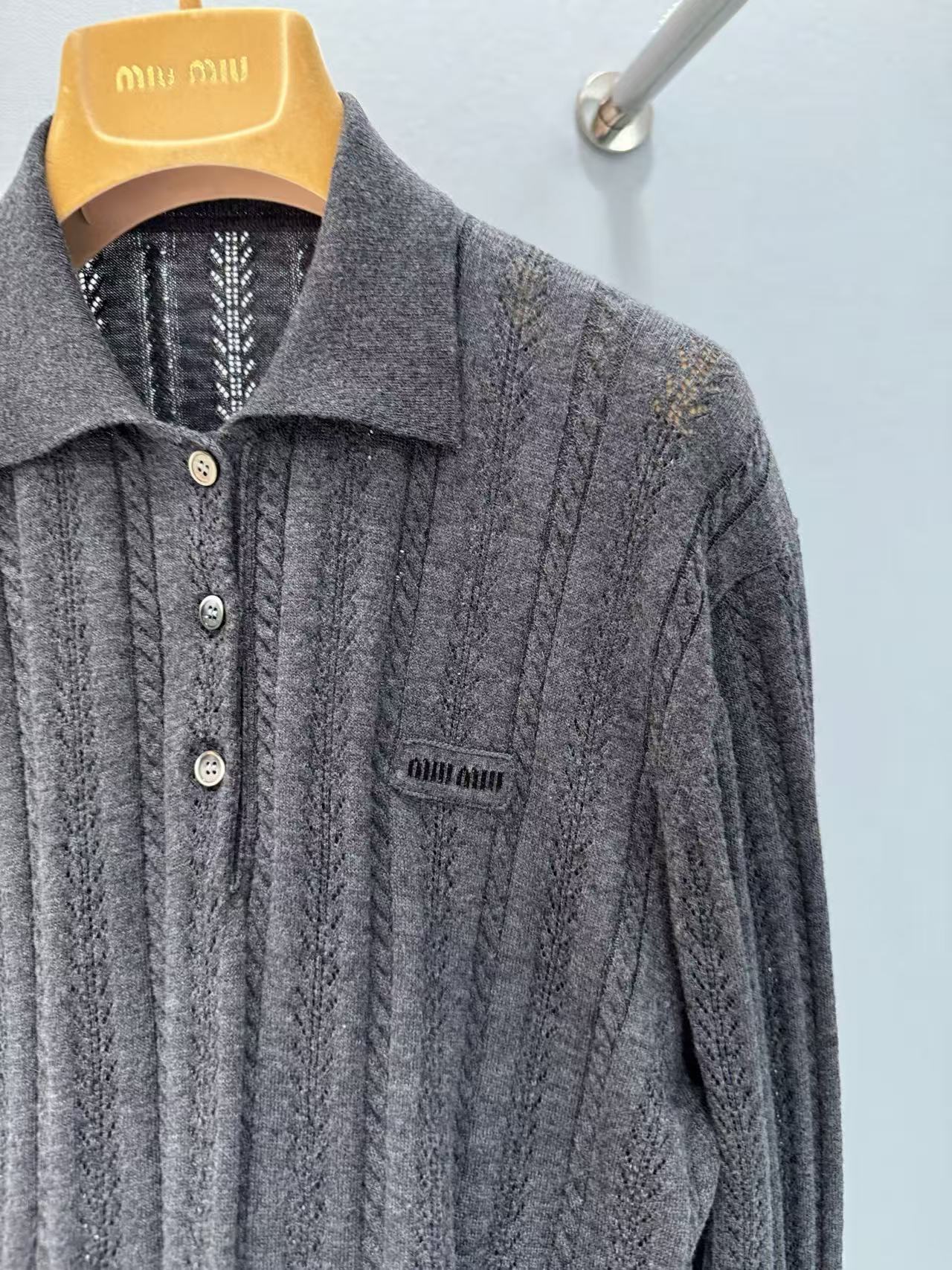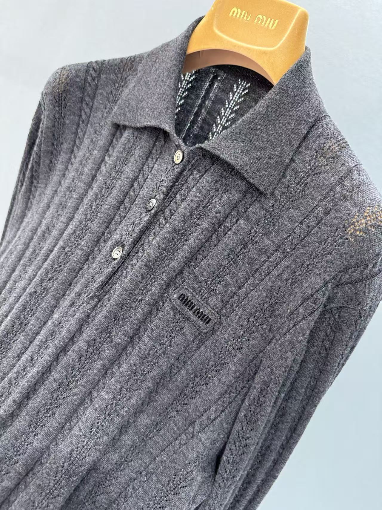 2025早秋 Miu家 麻花豎條紋翻領羊絨POLO衫|柔軟百搭,秋冬衣櫃的時髦必備!