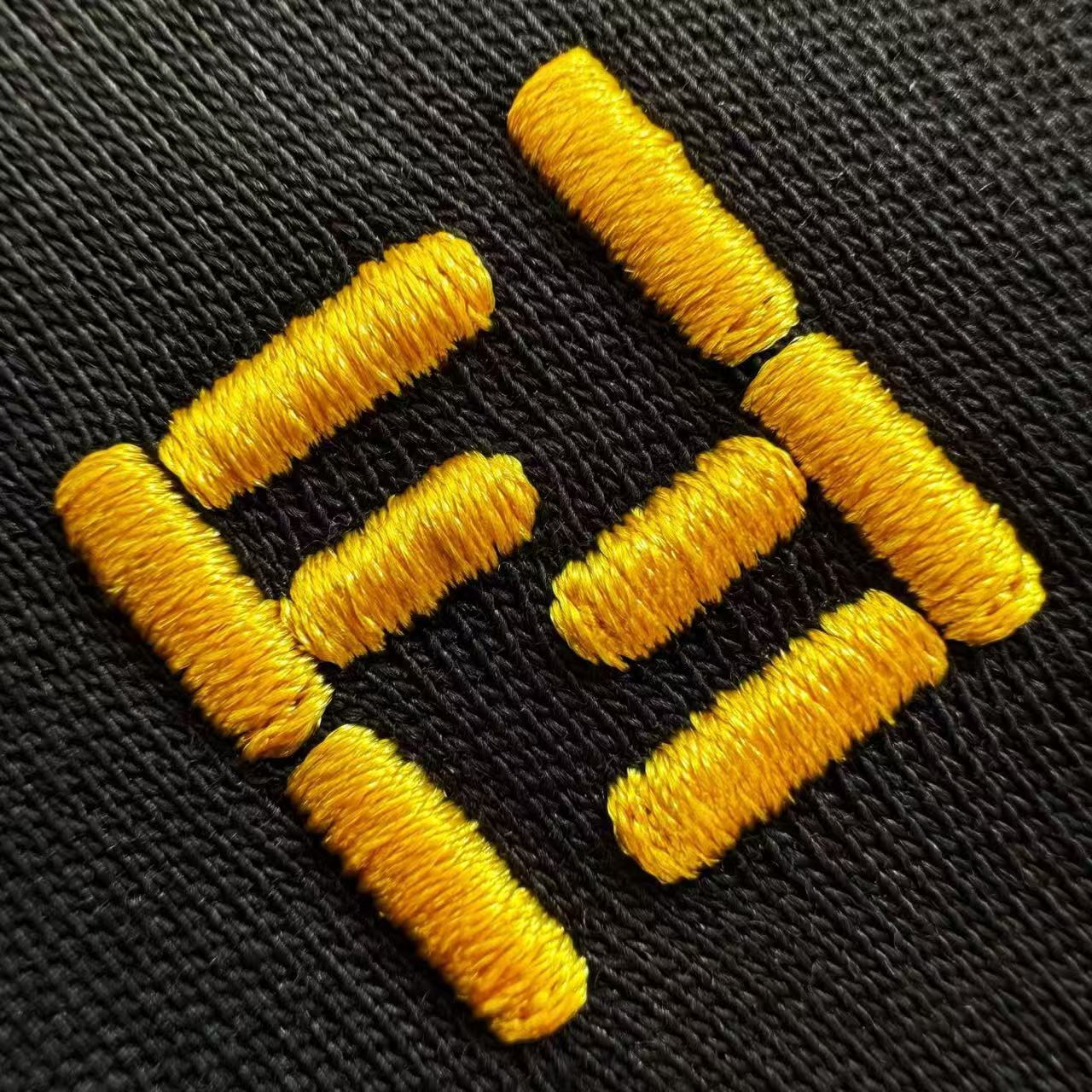 立體浮雕感視覺: 透過針步層次達成顯著的微凸效果,讓品牌標識具備極佳的辨識度與藝術張力。