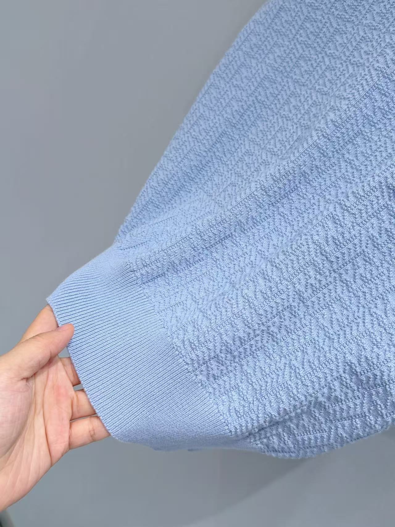 特供高品質絲毛混紡針織材質: 嚴選頂級桑蠶絲與幼羊毛混紡,手感軟糯溫潤且具備極佳的呼吸感。這種面料擁有天然的微光澤與韌性。
