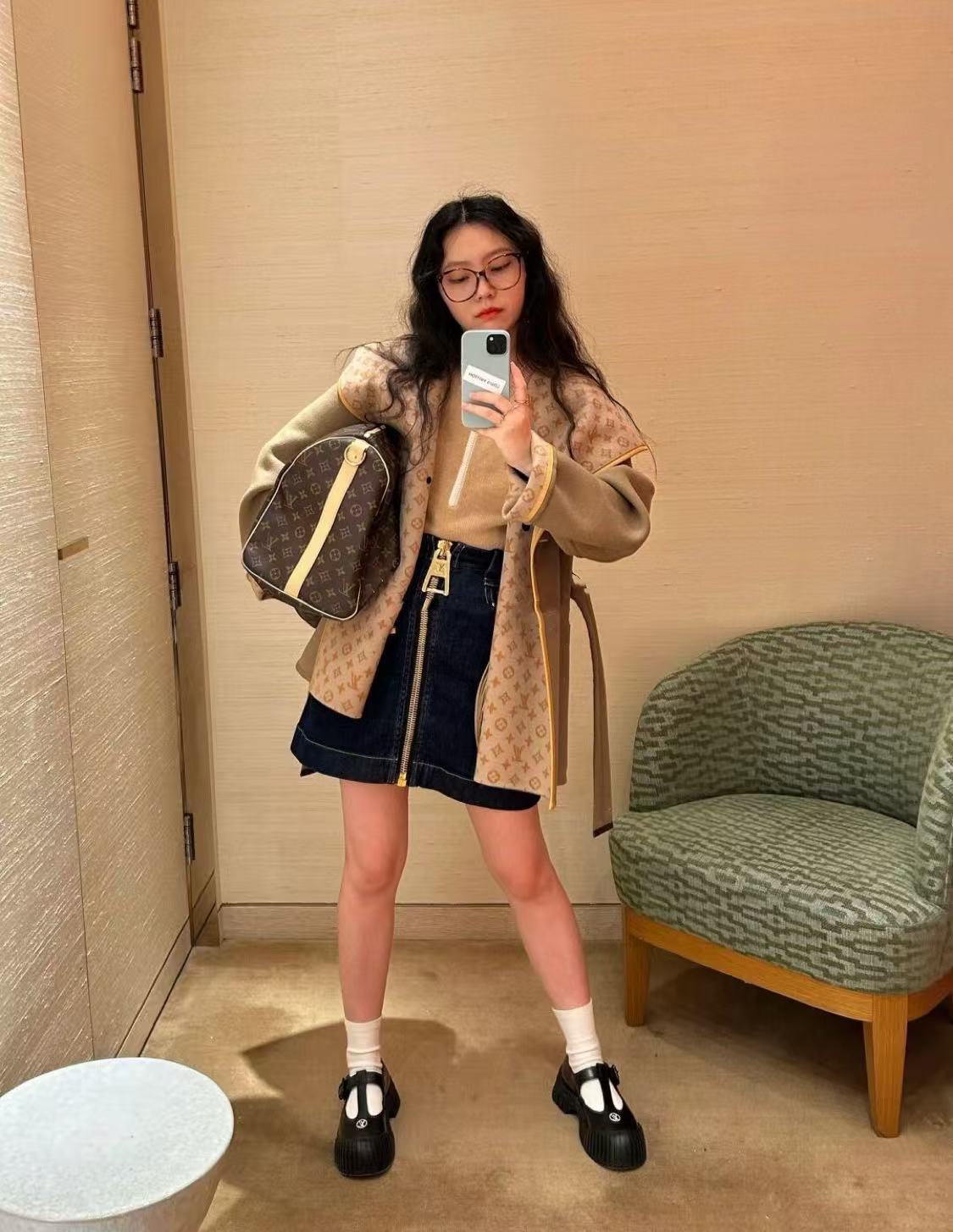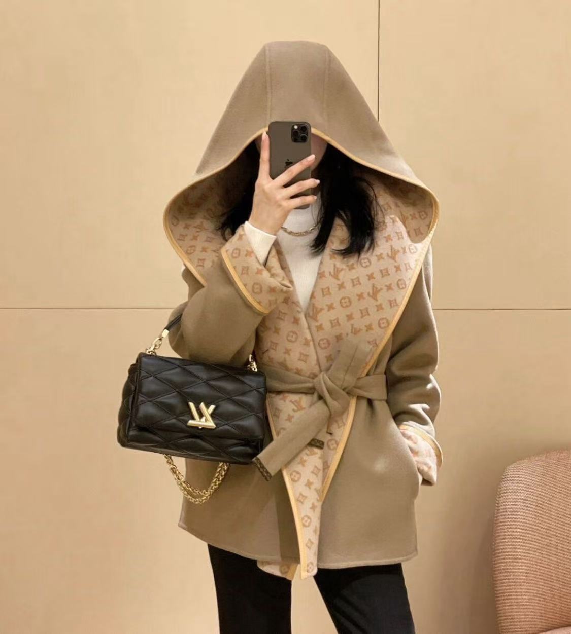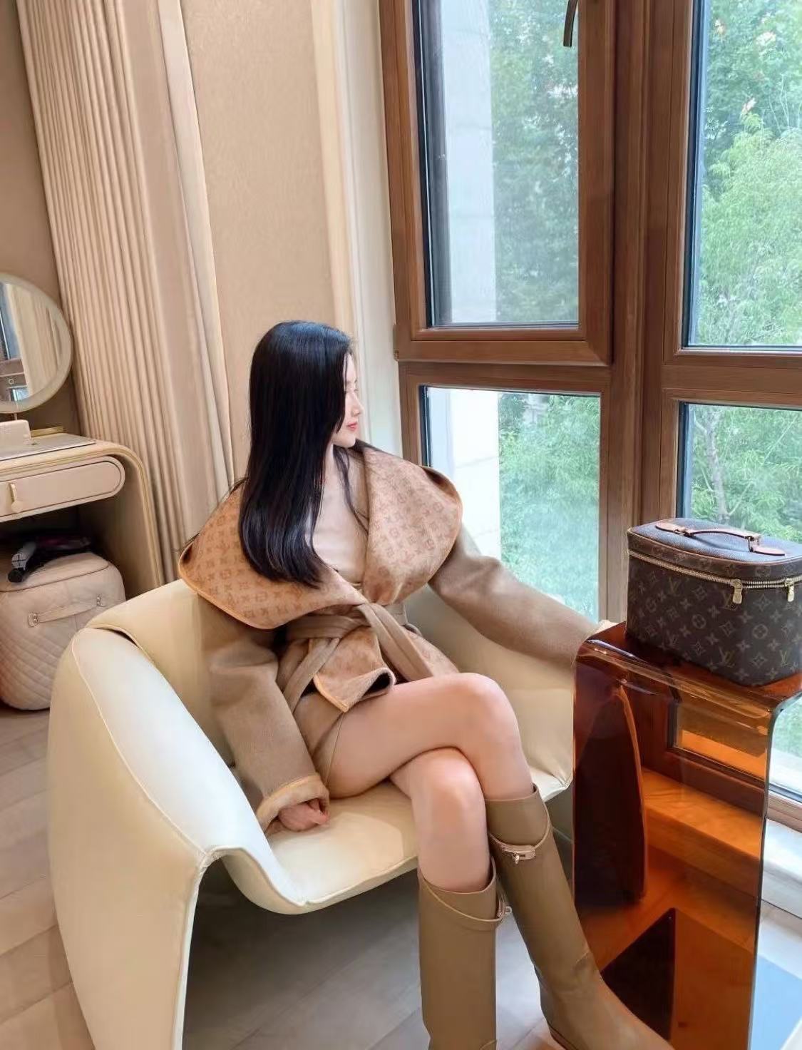 經典駝色老花提花,低調卻藏不住的高級感,遠看是素色駝大衣,近看才發現滿滿Monogram細節,真的越看越美。