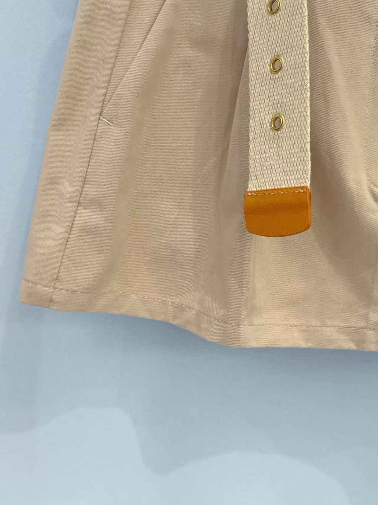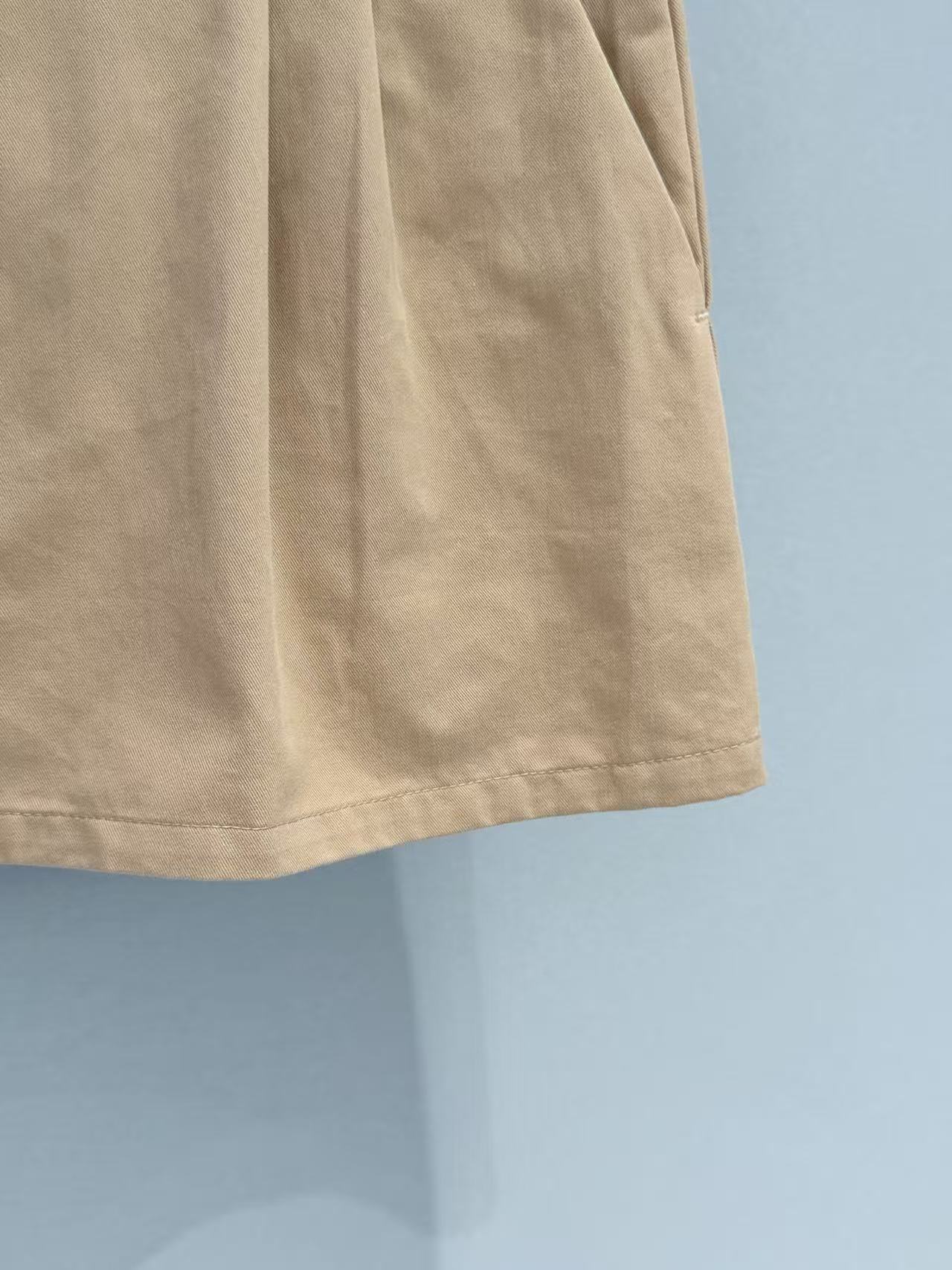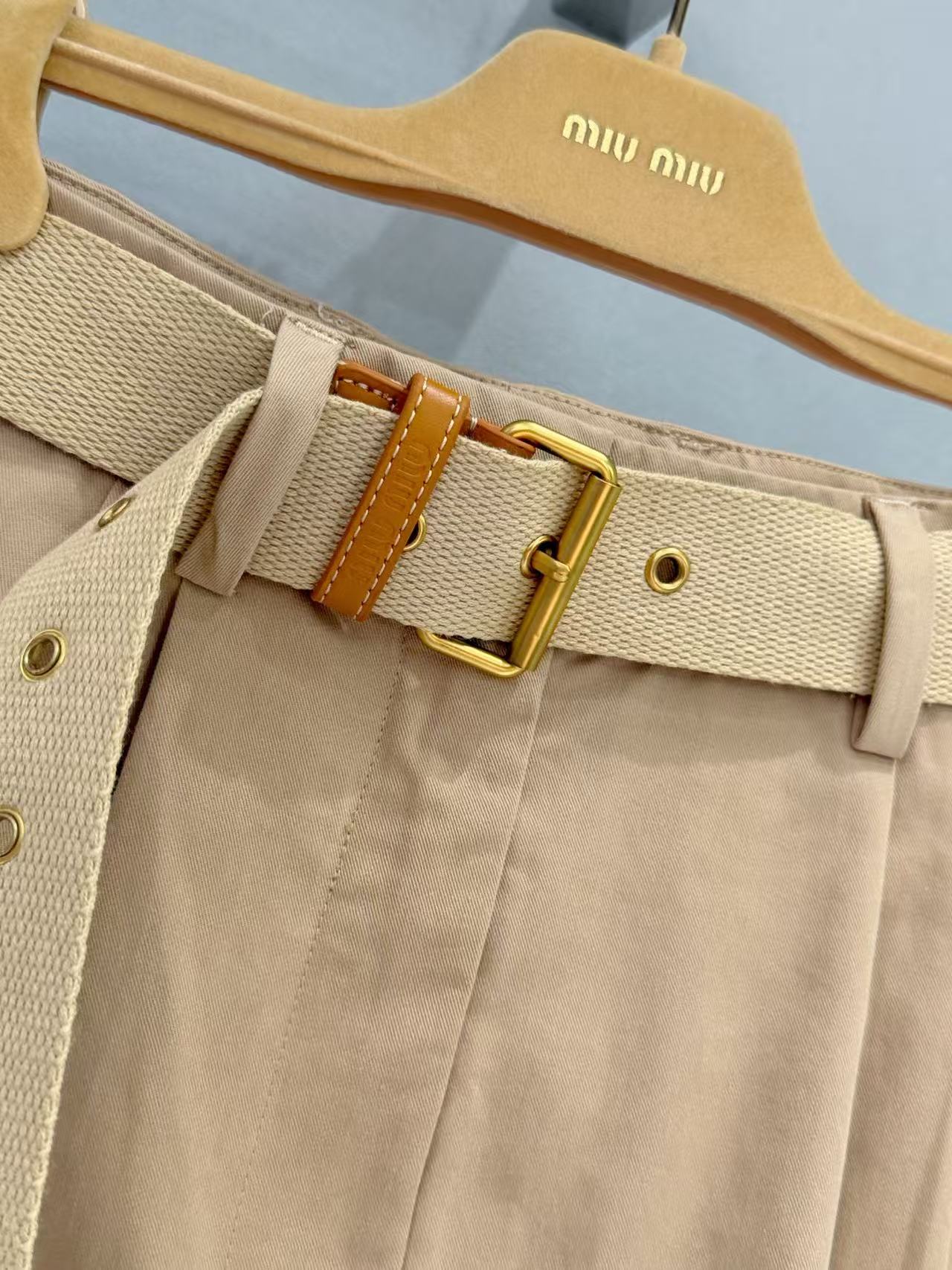 立體壓褶剪裁結合皮革細節腰帶,能精準勾勒腰身並完美隱藏大腿多餘線條,展現出一種甜酷平衡、且充滿鬆弛感的高級質感,無論是搭配 T 恤還是針織衫,都能輕鬆拿捏那份獨有的時髦格調。