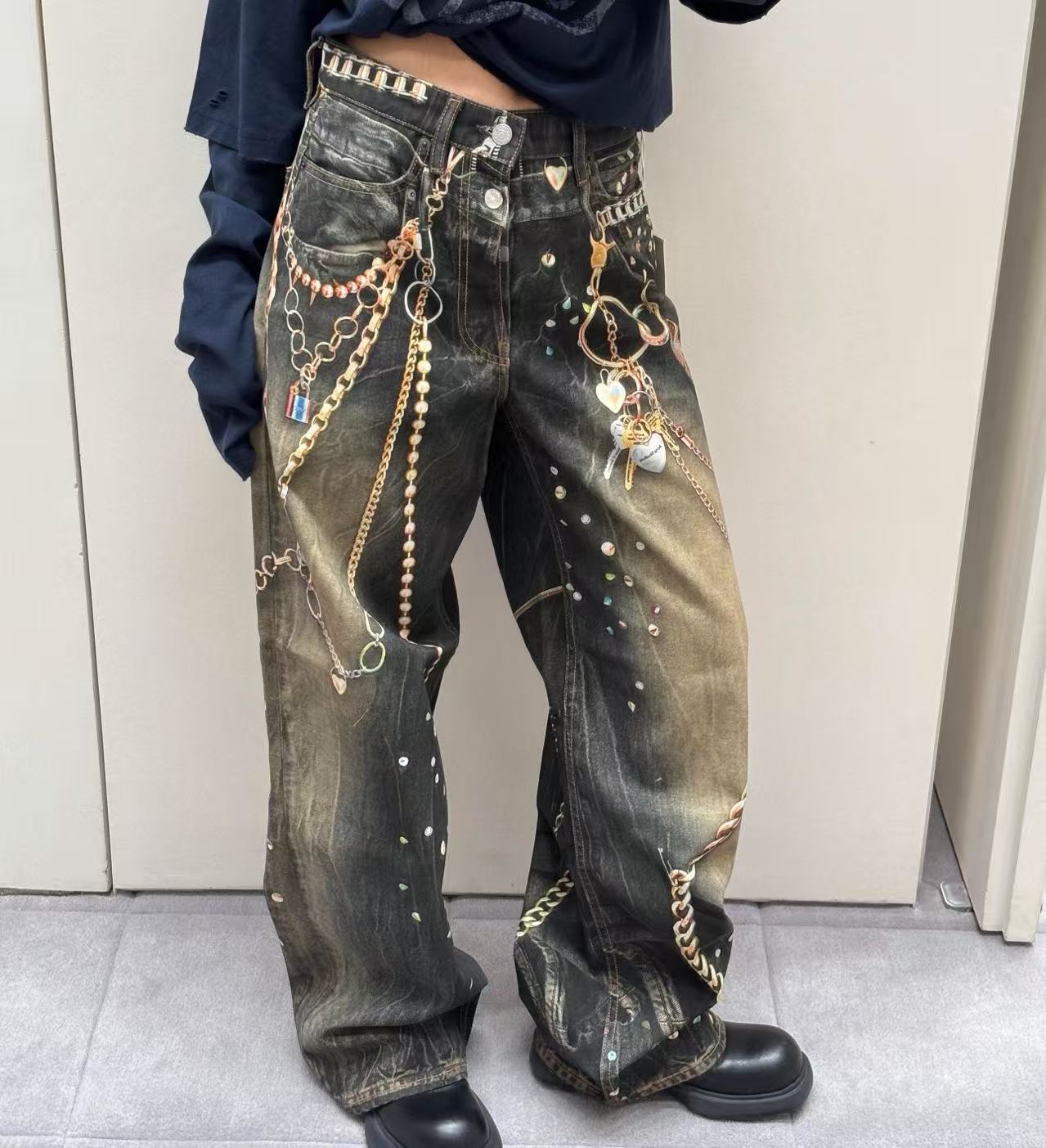 2026早春新品 AC家 3D熱轉印做舊鏈條牛仔褲