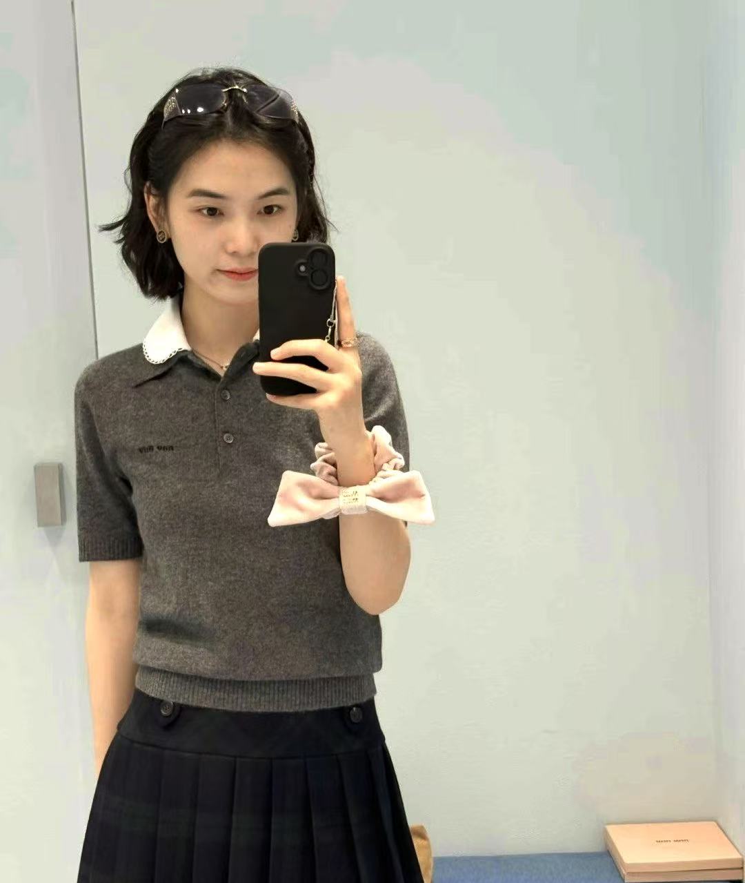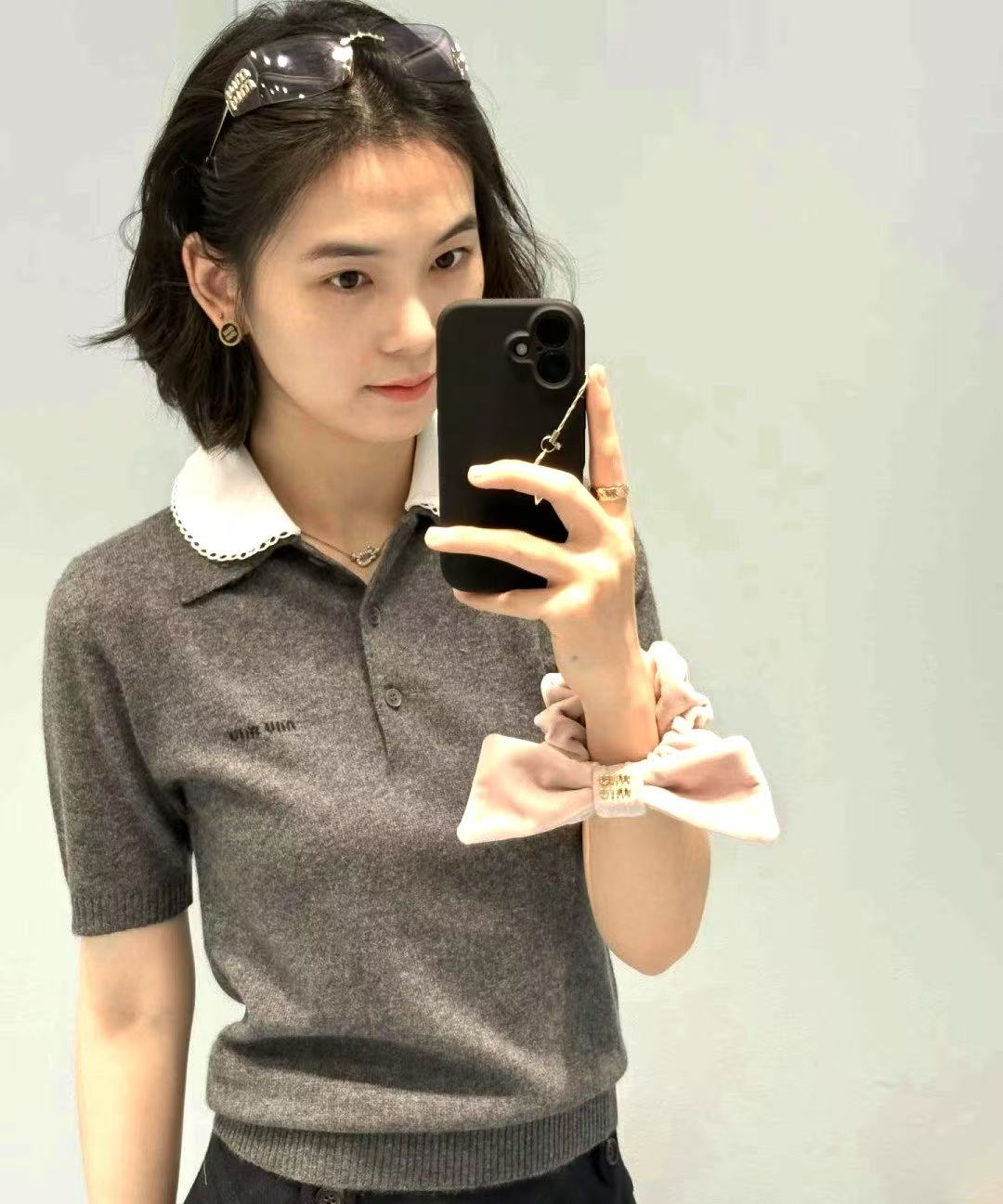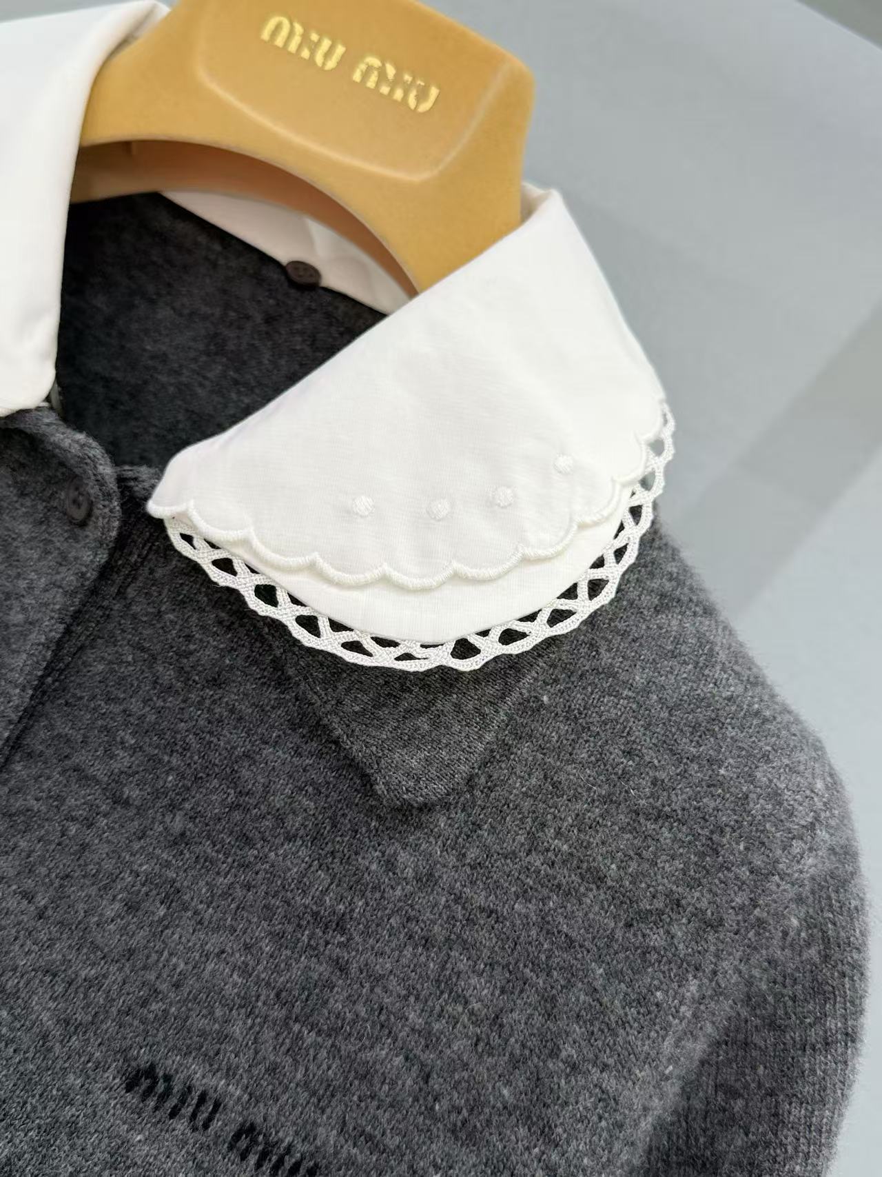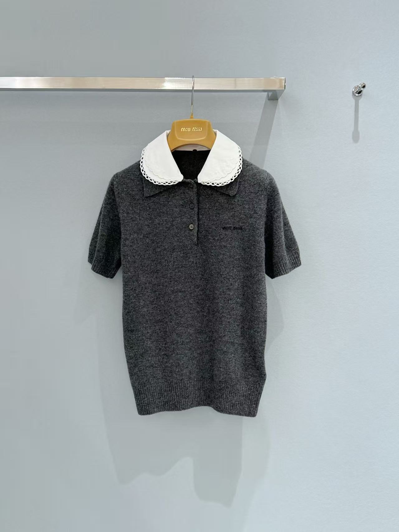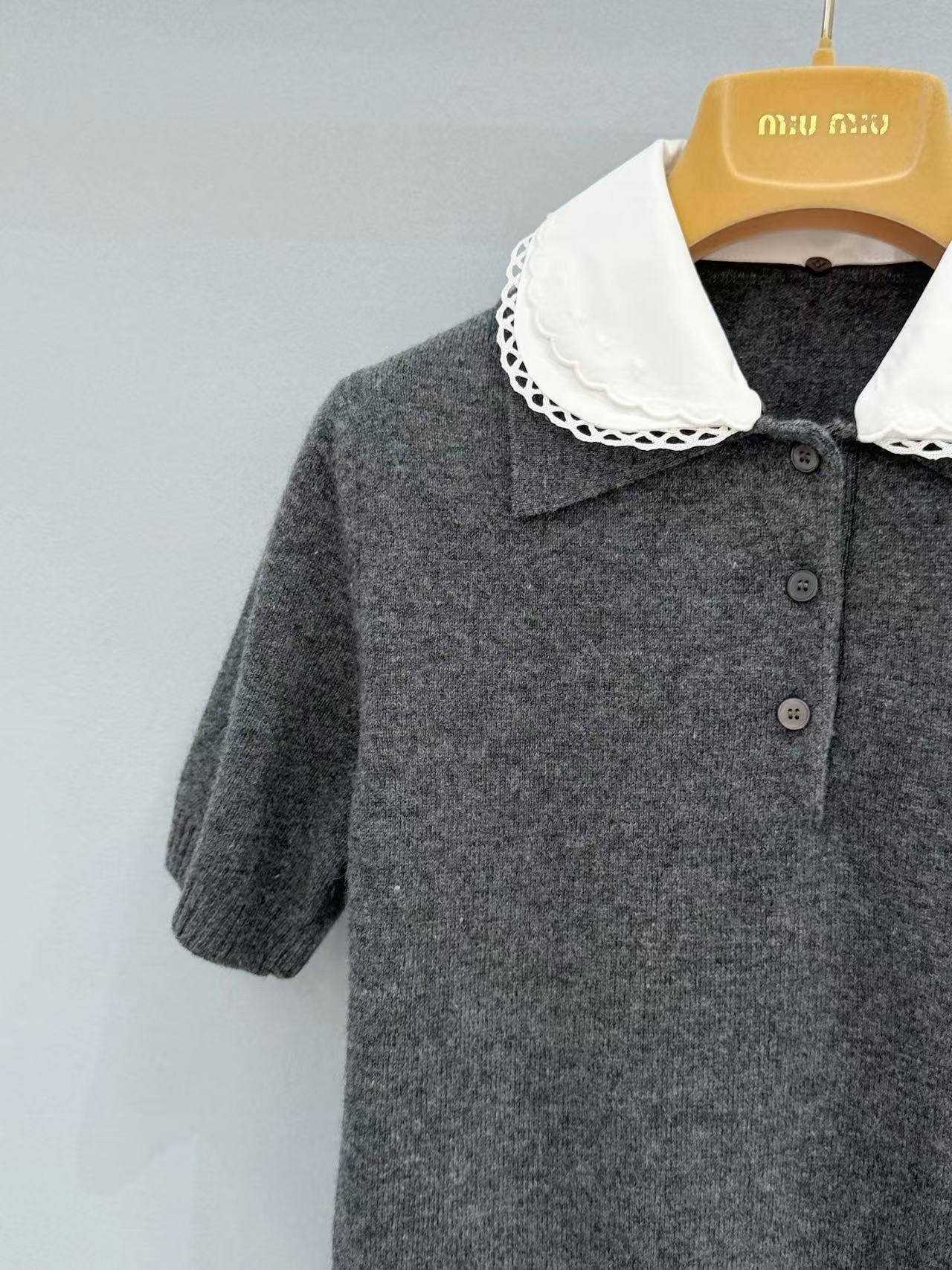 2026 早春 Miu家 可拆卸花邊領針織短袖