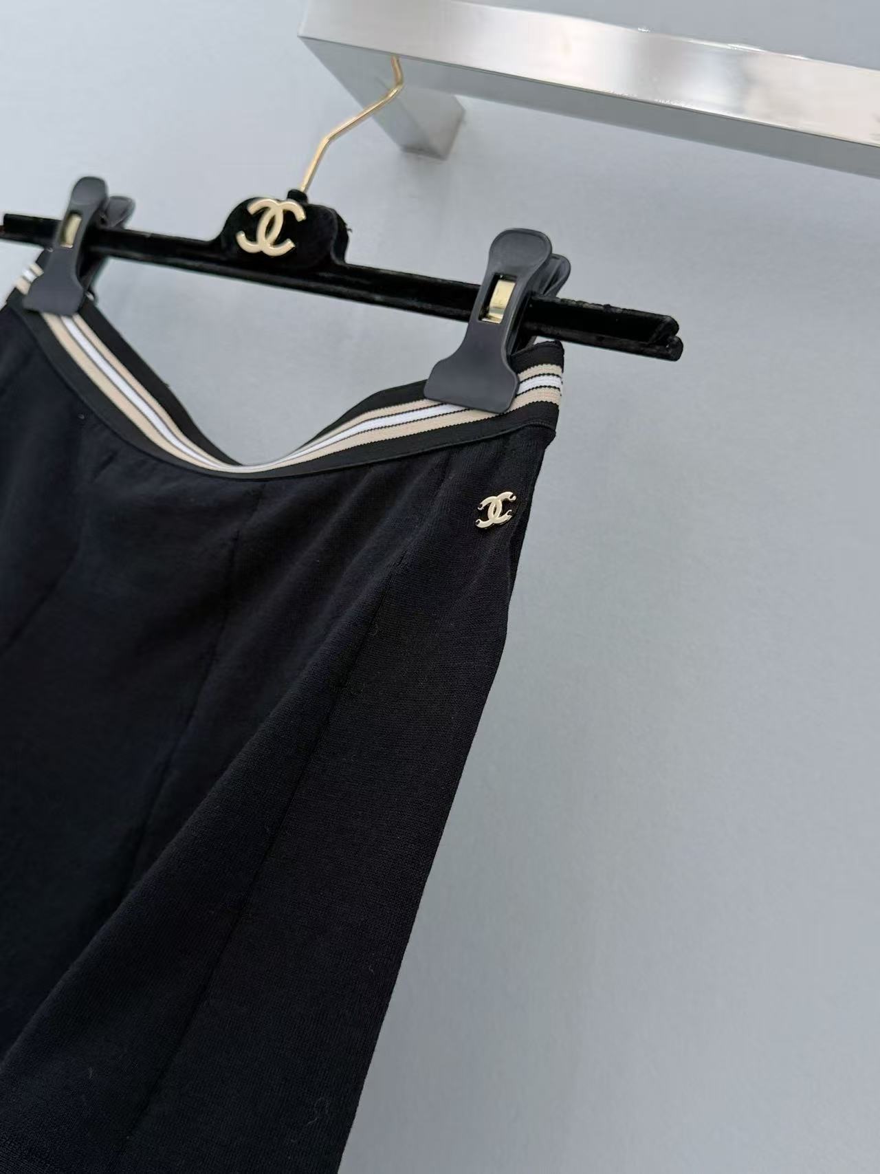雙 C 金屬 Logo 與條紋裝飾: 腰頭裝飾的雙 C 標誌採用了品牌專屬的重金屬電鍍工藝,色澤內斂、手感紮實。條紋編織細密平整,與底色銜接自然。