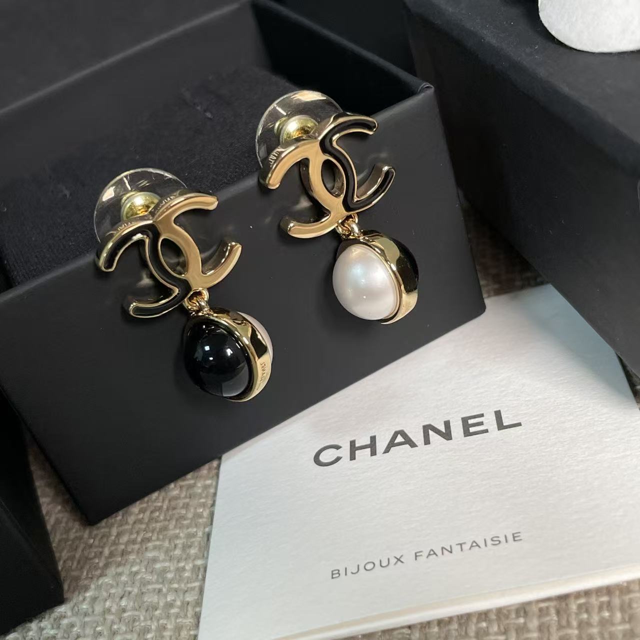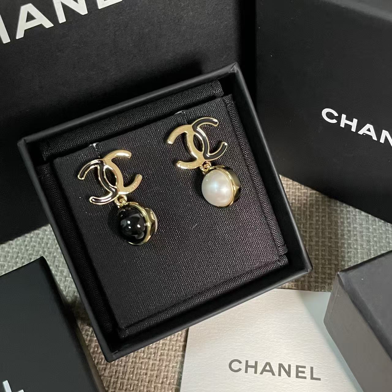 2026春夏新品 C家 拼C吊飾黑白球耳環