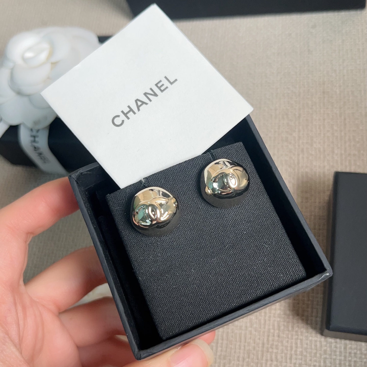 背面採用掏空設計,視覺更輕盈,實際配戴起來也完全不厚重、不壓耳。正面僅以經典 雙 C Logo 低調點綴,簡約卻很有份量感,是那種怎麼看都不會膩的設計。
