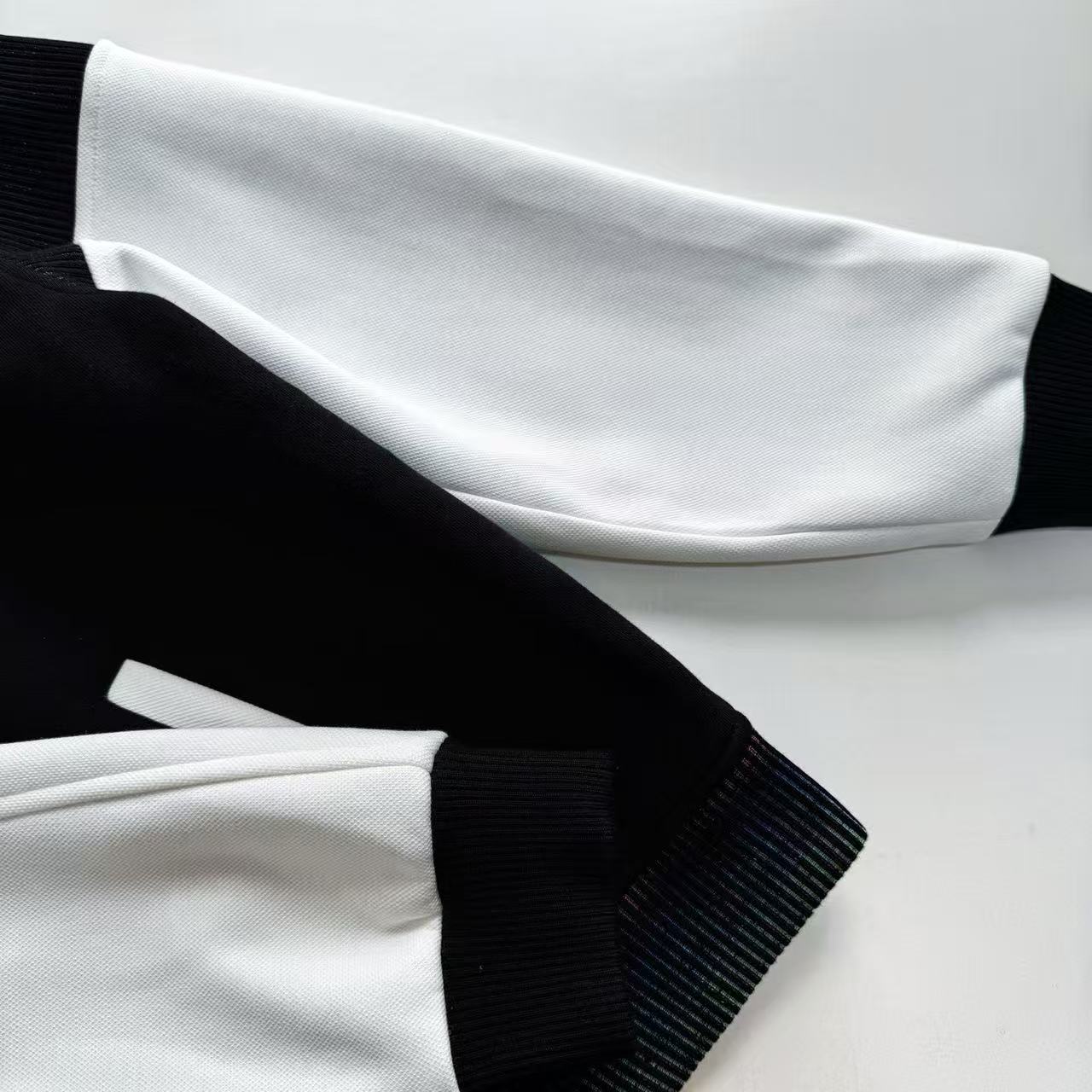 材料選用 100% 進口紗線,580g 賽爾棉潮牌衛衣料搭配 480g 精梳棉雙股珠地,觸感柔軟厚實,透氣又挺括,穿上身舒適不悶熱。領口、袖口與下擺的斑斕羅紋設計,色彩跳躍卻不雜亂,為整體增添一抹玩味。版型做工一絲不苟,從車線到剪裁都散發專櫃級質感,日常通勤到街頭出遊都能完美駕馭。