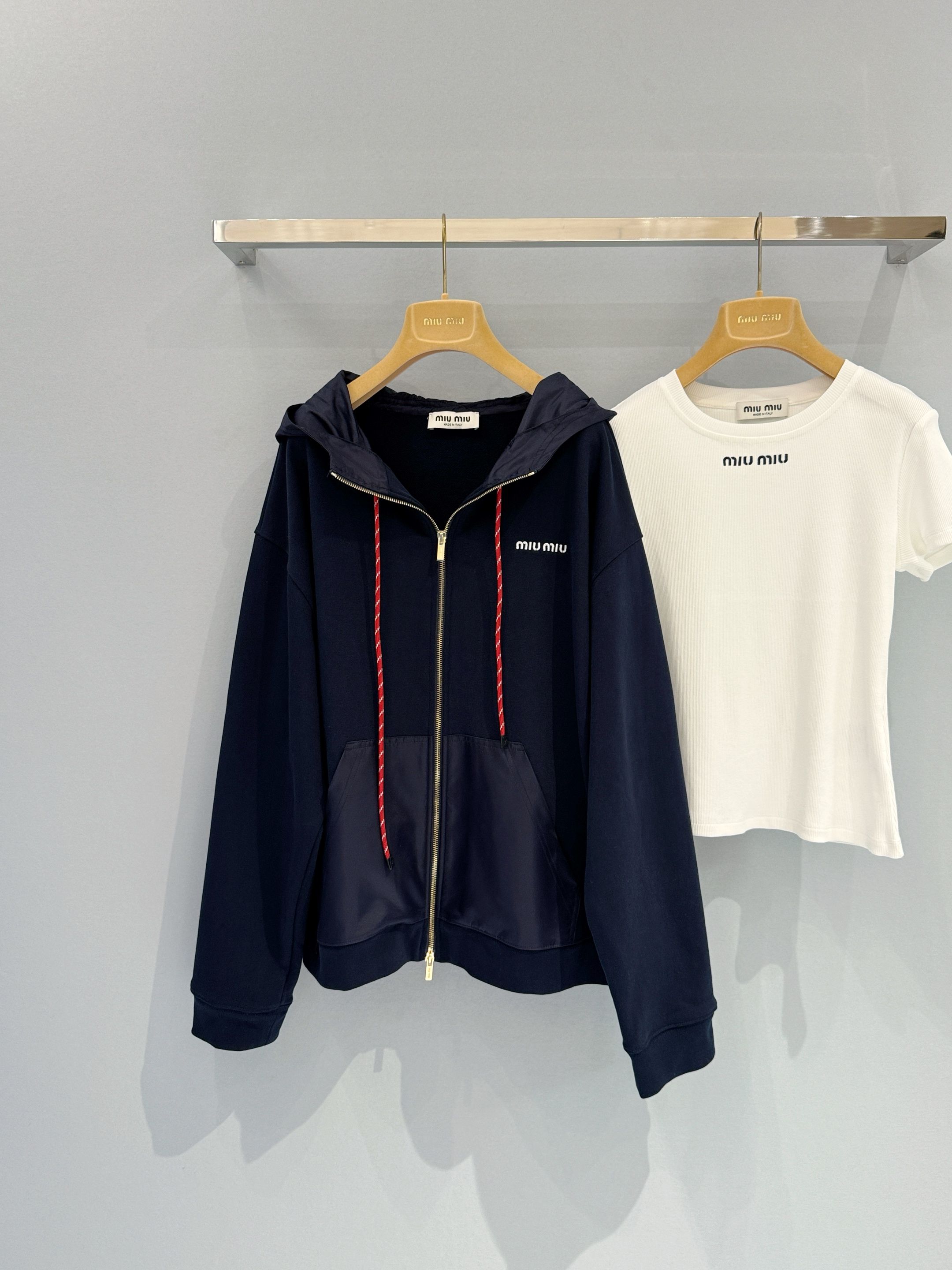 2025春夏 MIU家 徽標刺繡連帽抽繩夾克外套