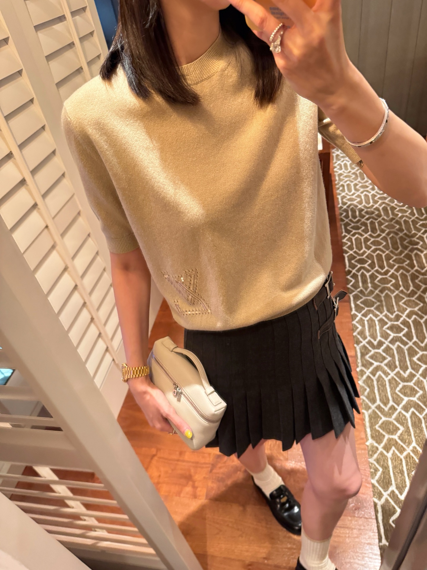 下擺以手工亮片點綴,細節精緻卻不浮誇,走動時會微微反光,剛剛好替日常穿搭加上一點高級亮點。