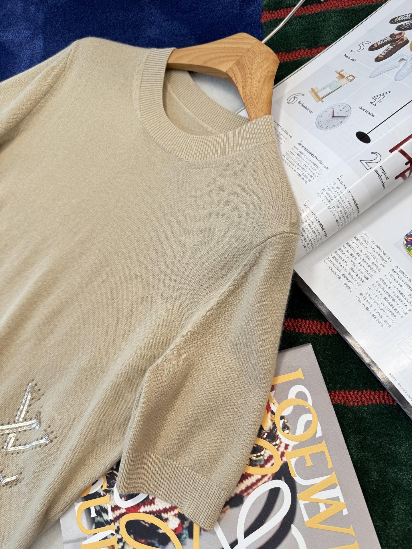 2025秋冬新品 L家 手工亮片logo針織短袖